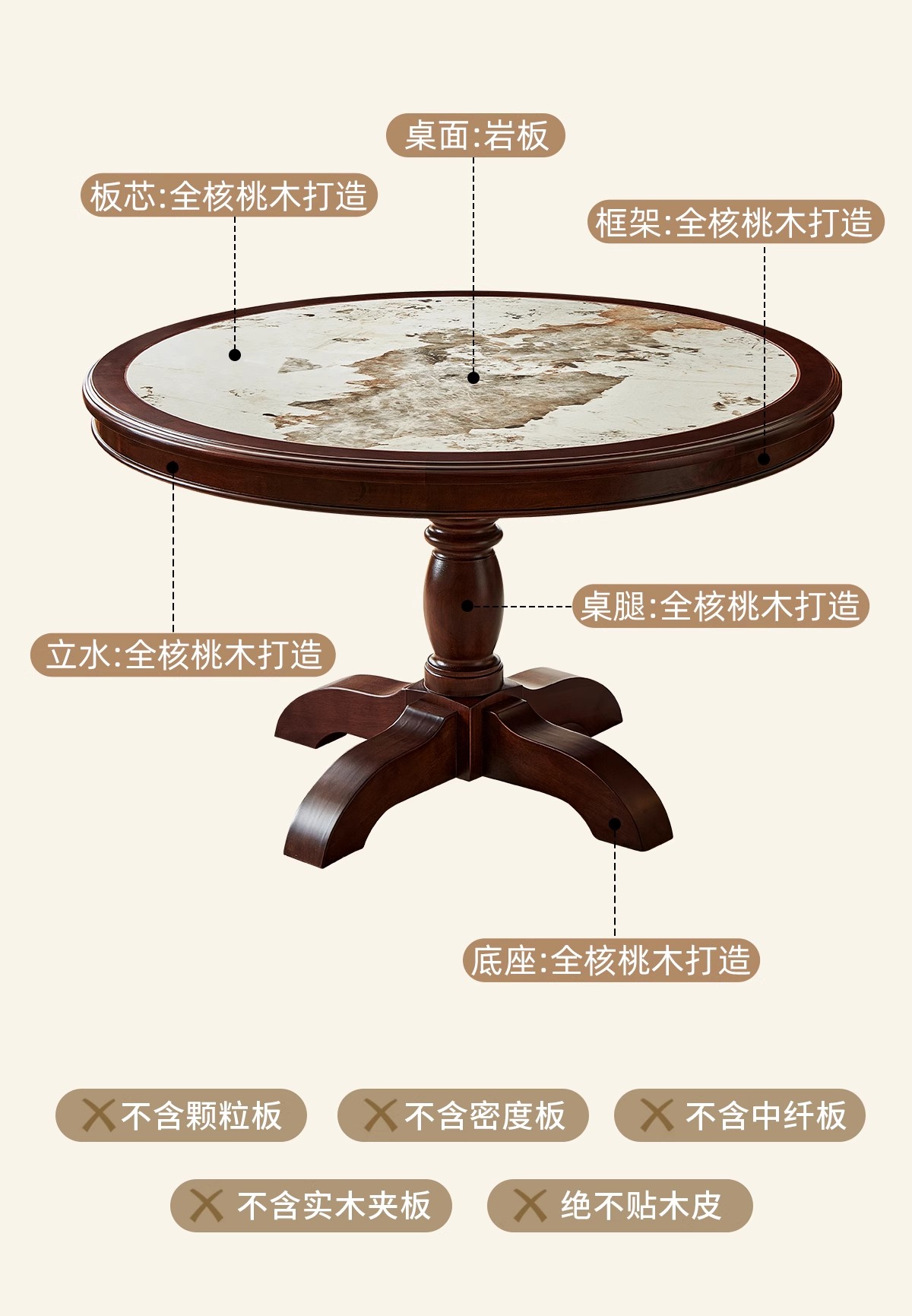 | 1.3米圆桌|全实木+岩板 单餐桌 | 3880 |
