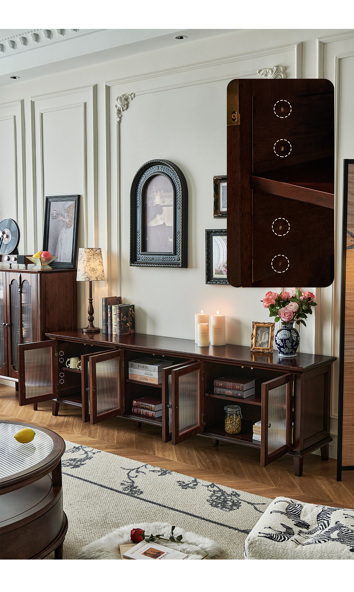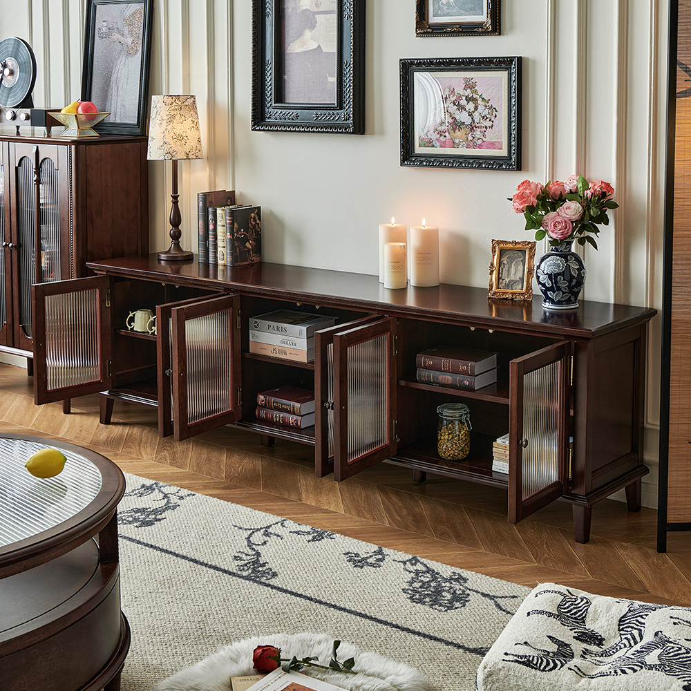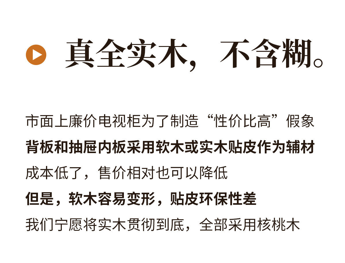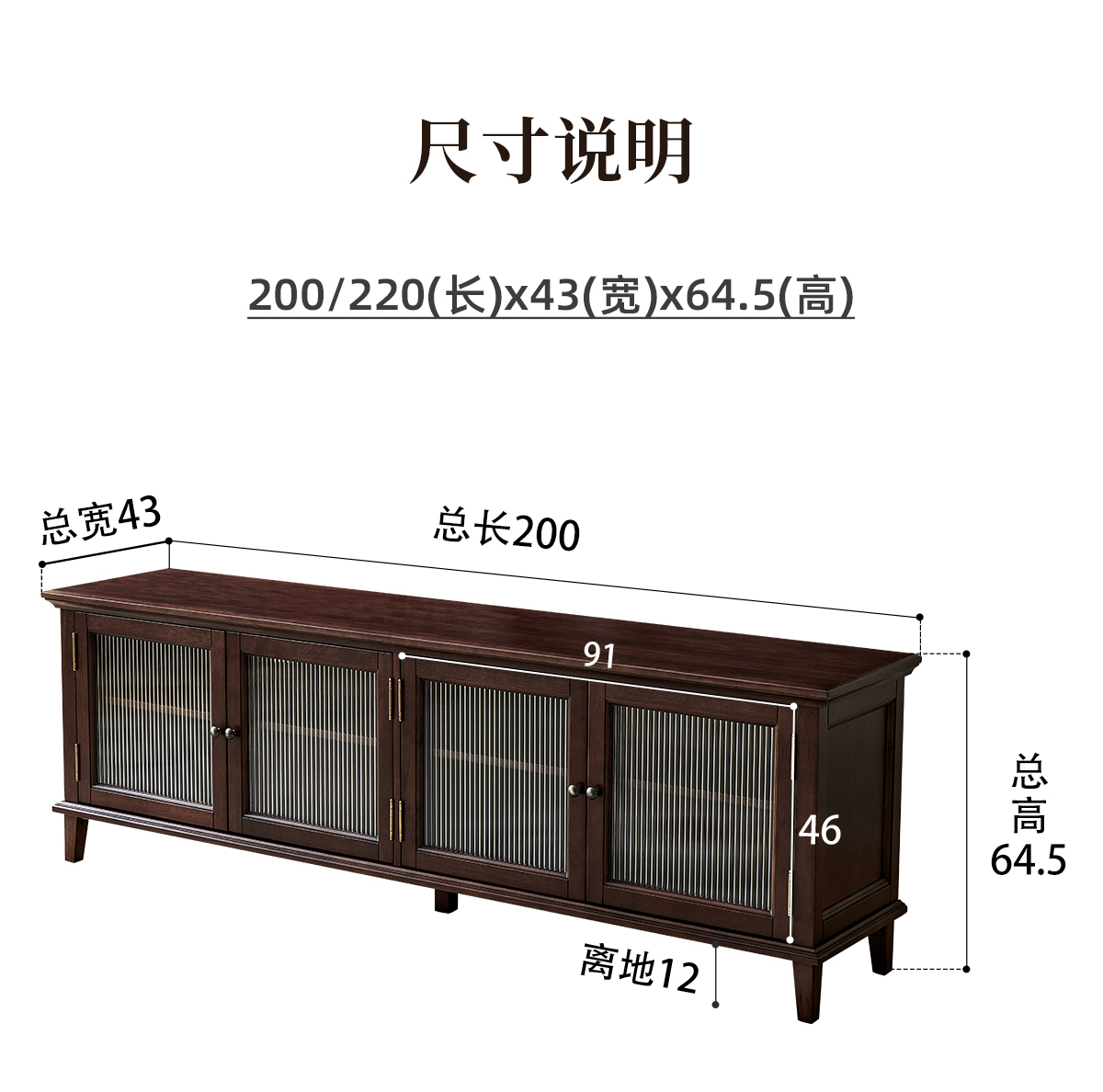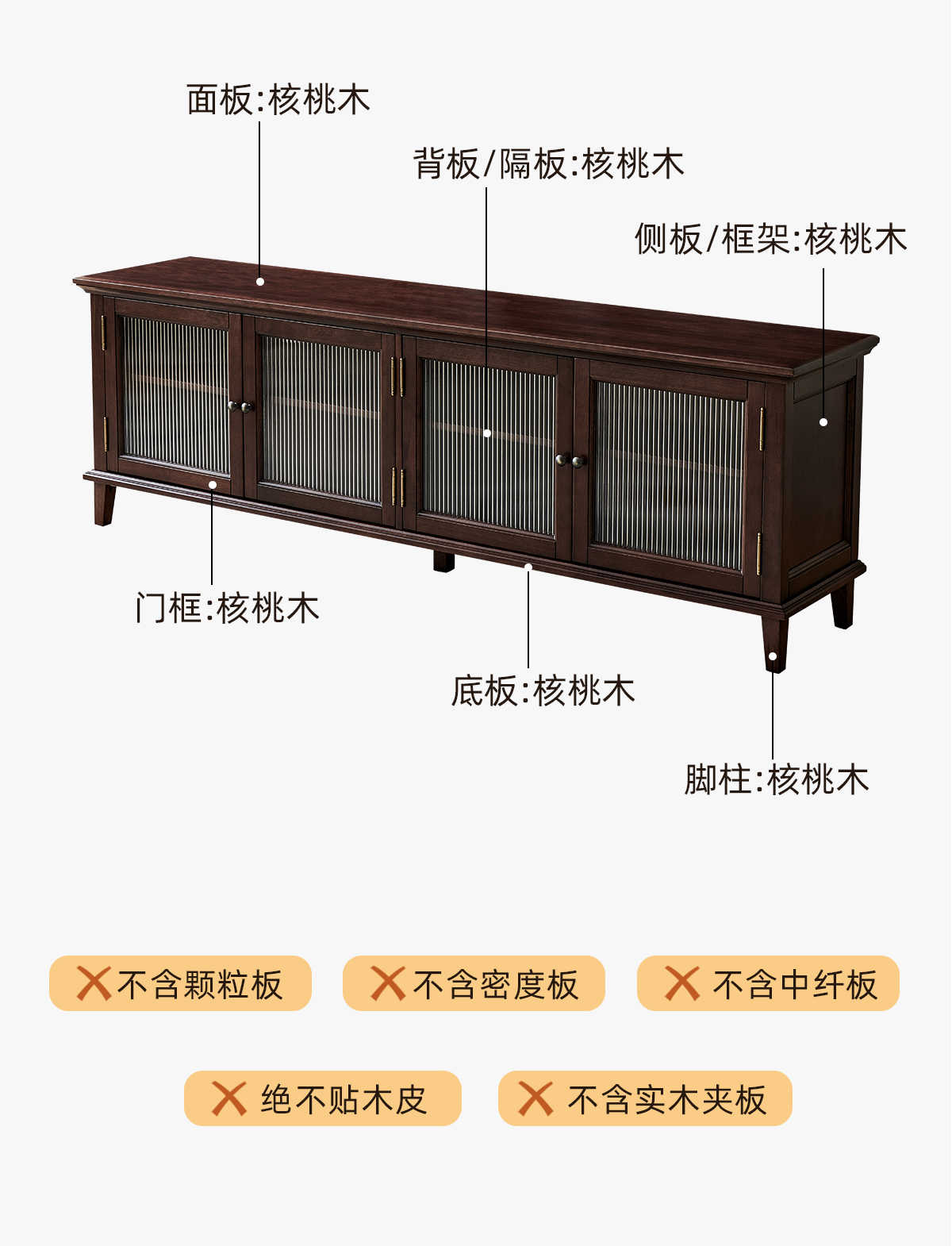2米四门电视柜 胡桃色 纯原木无贴皮