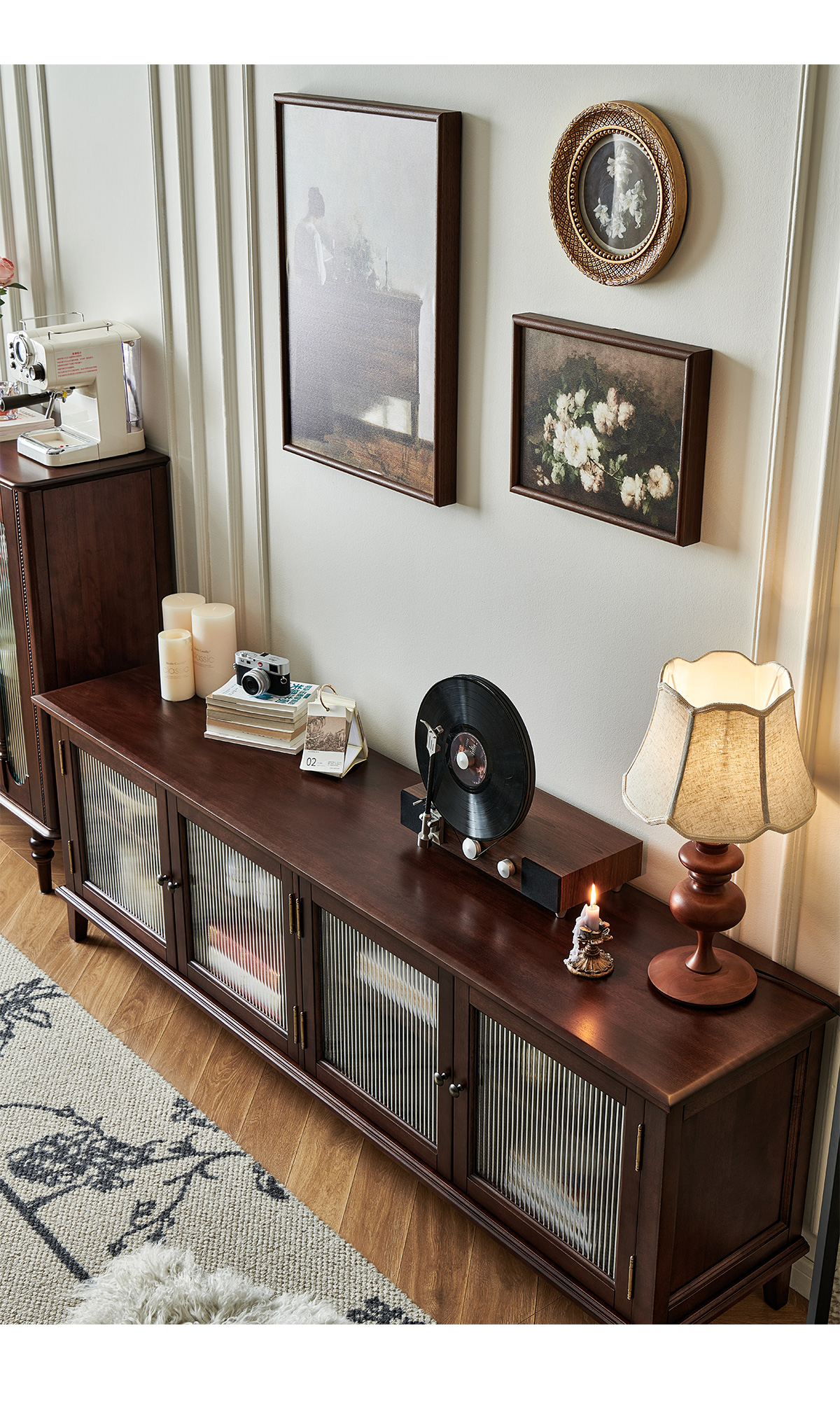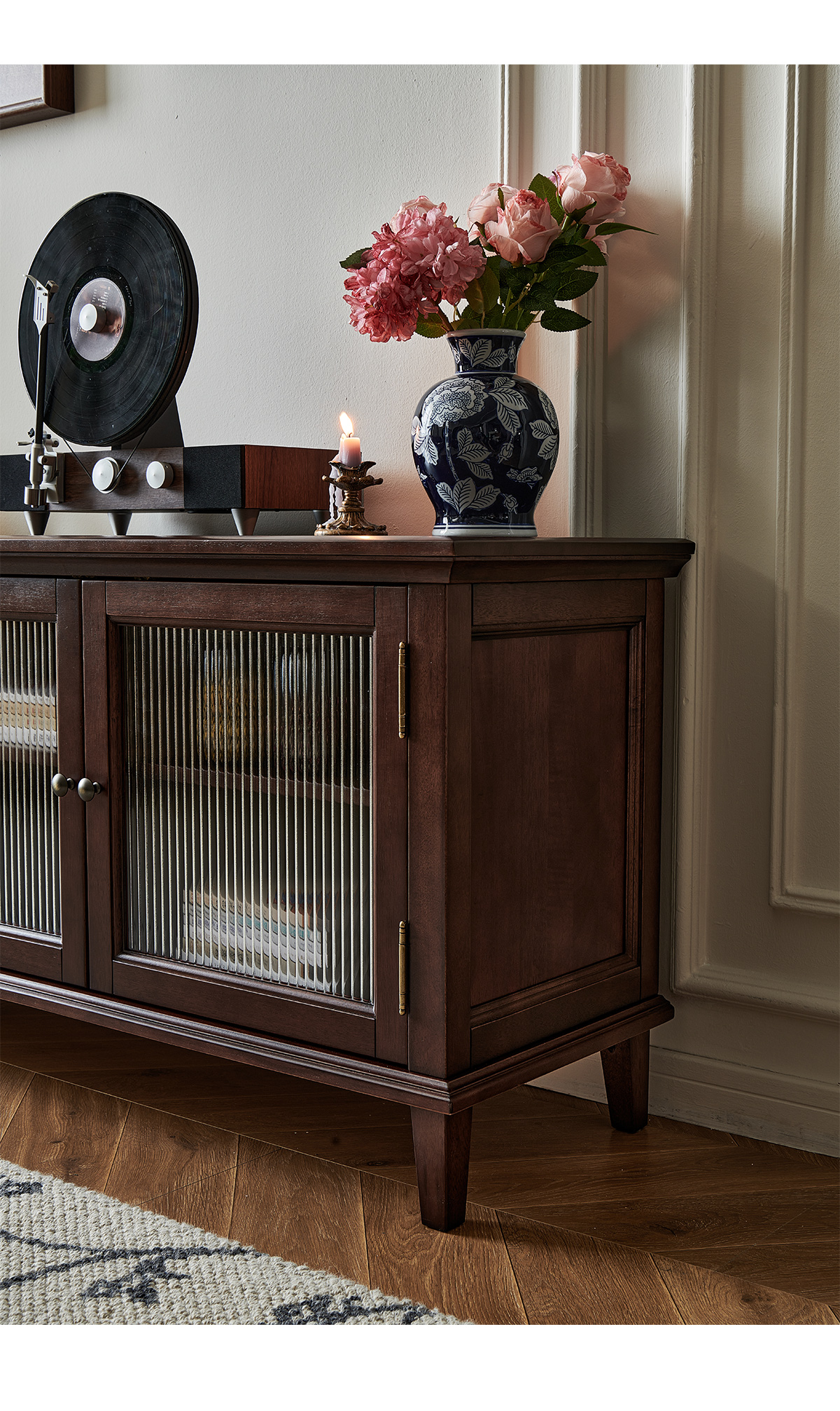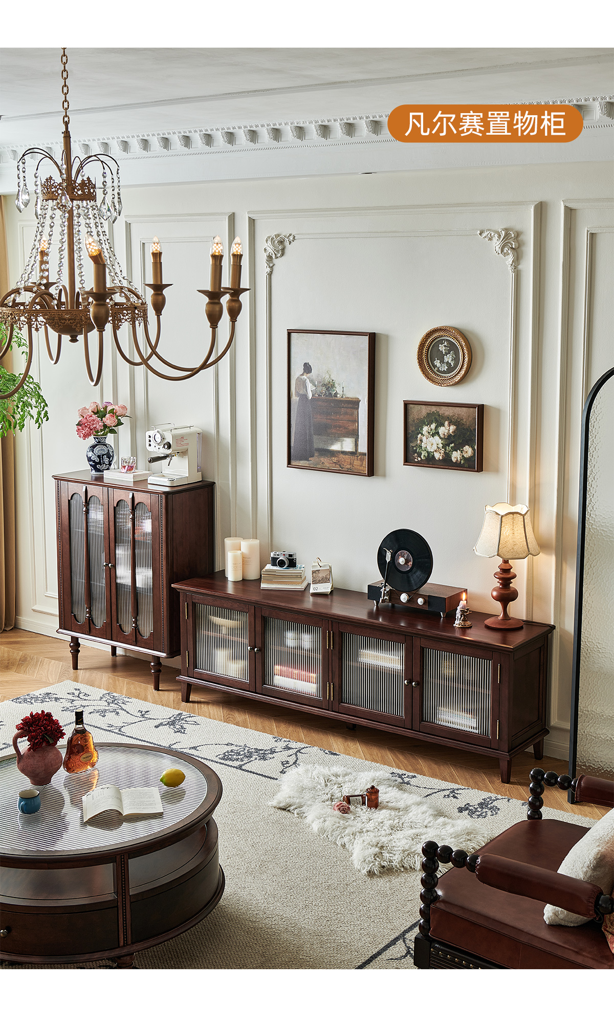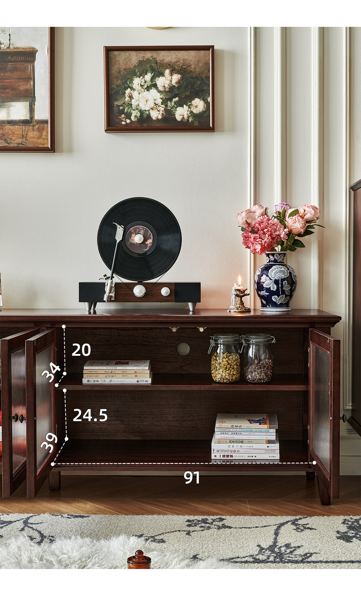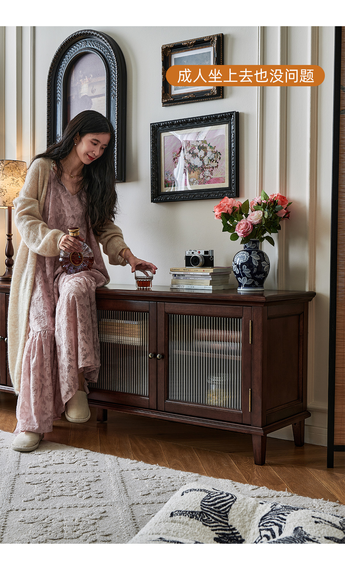 2米四门电视柜 胡桃色 纯原木无贴皮