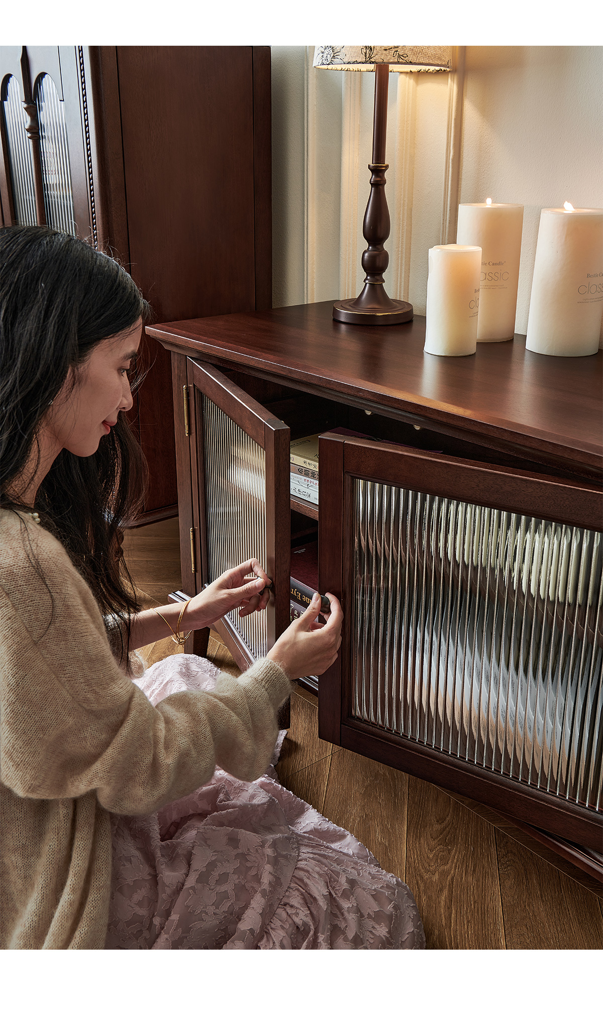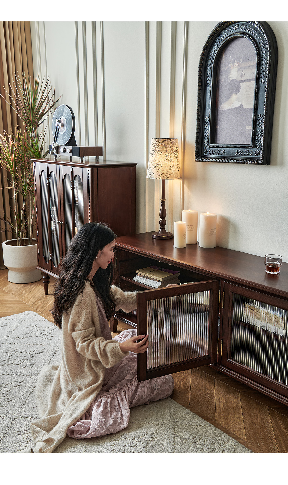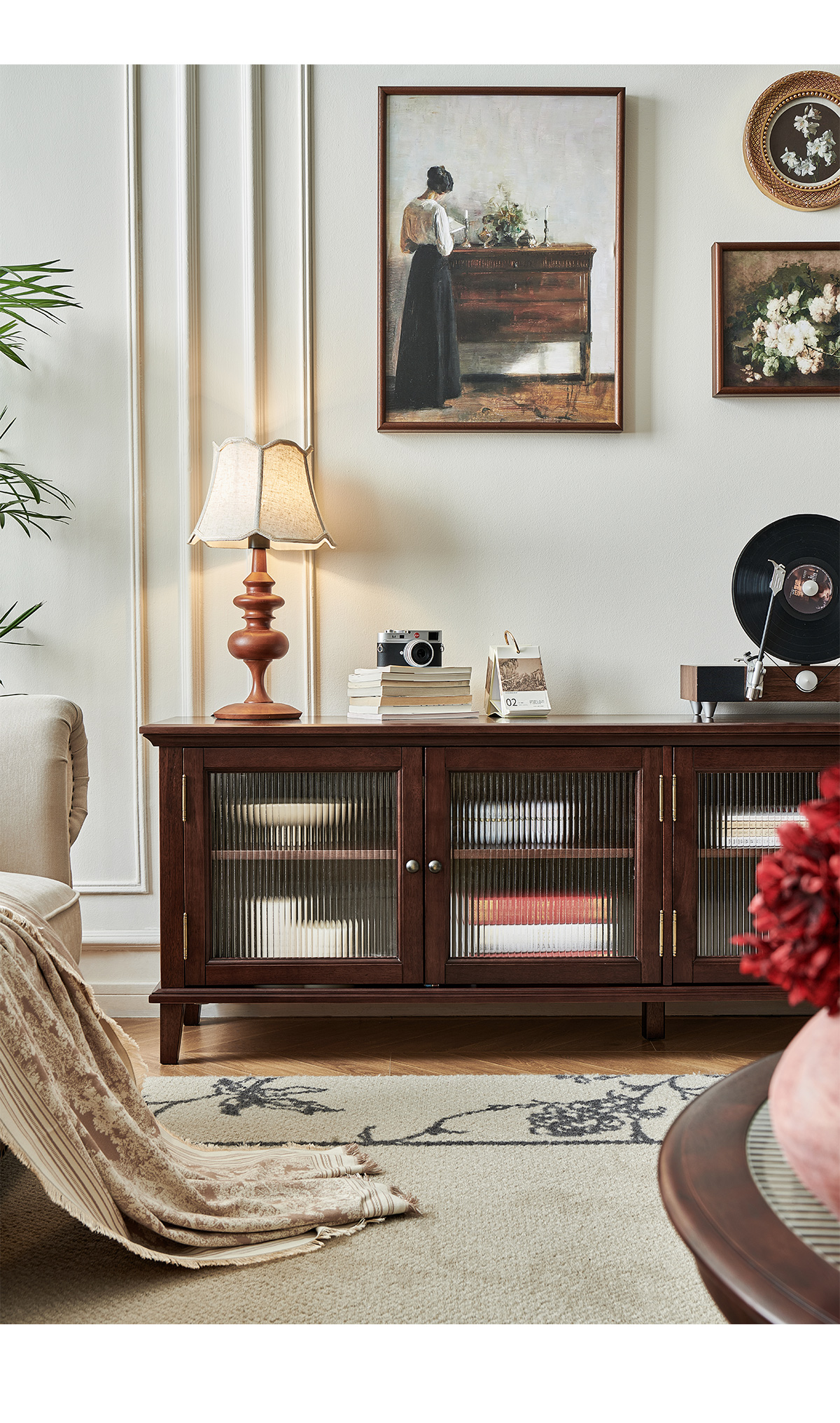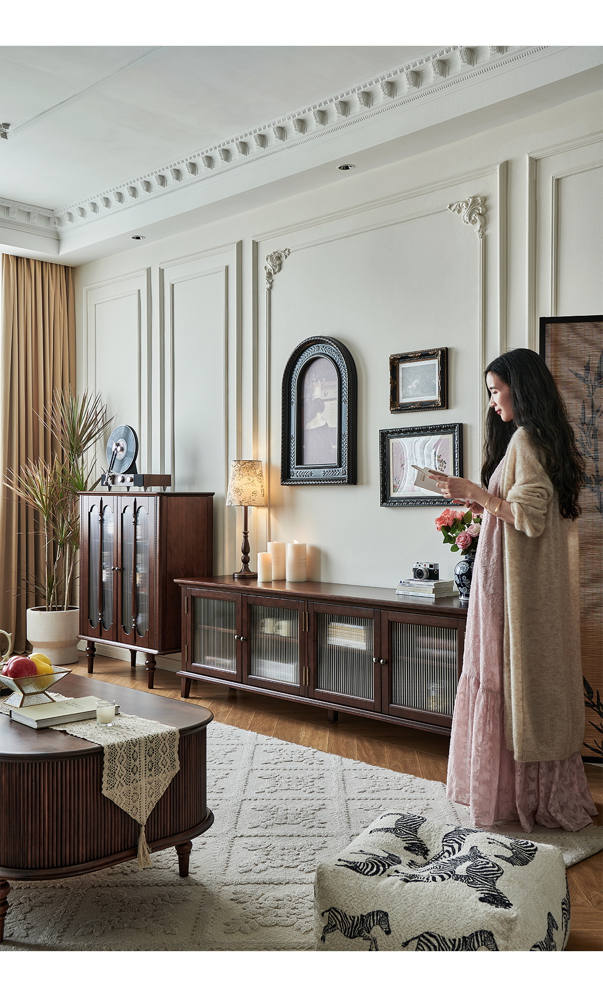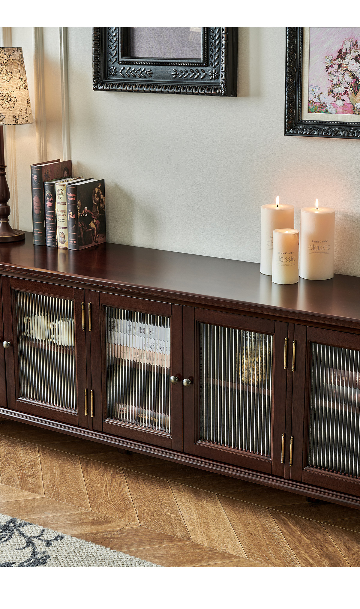 2米四门电视柜 胡桃色 纯原木无贴皮