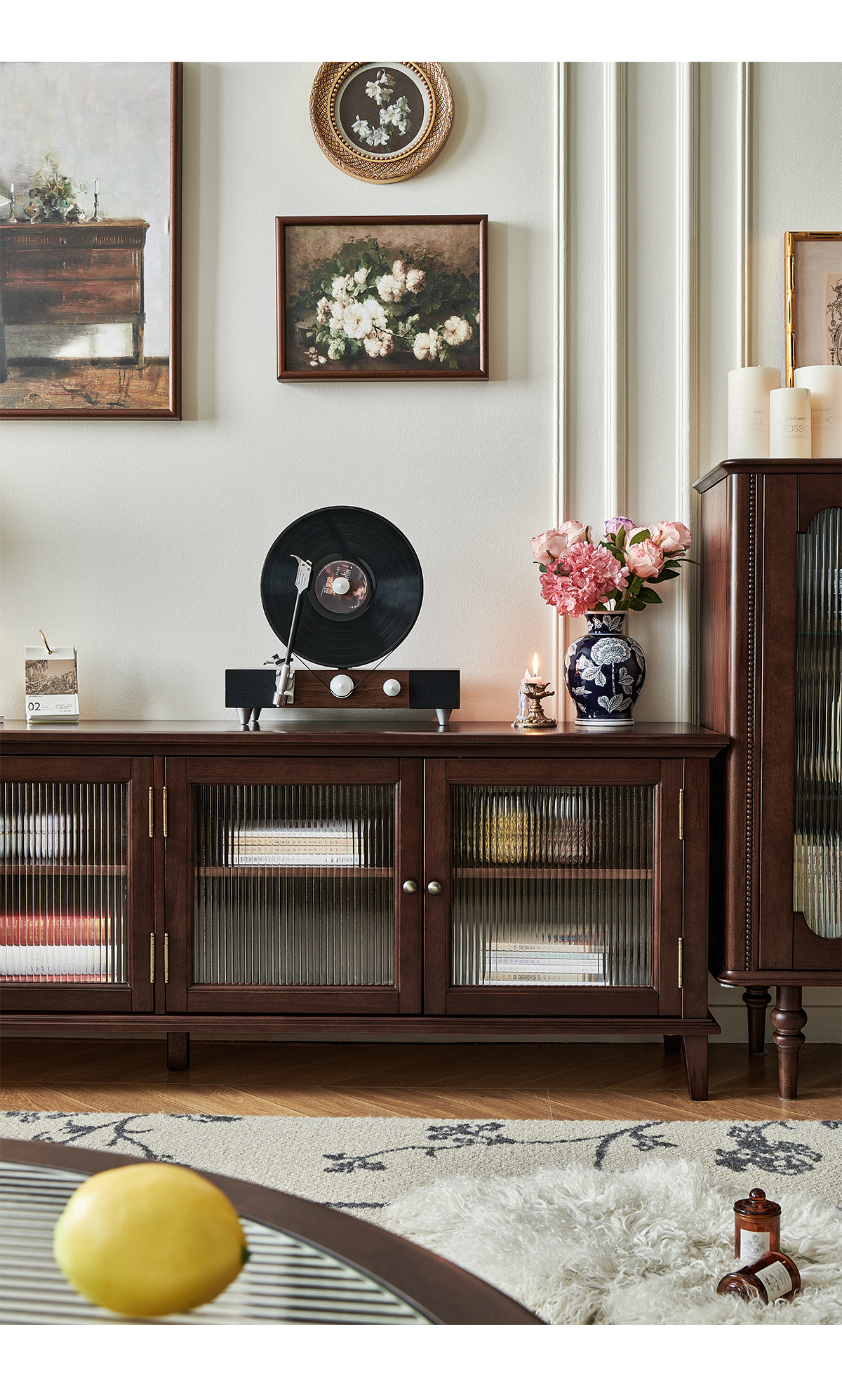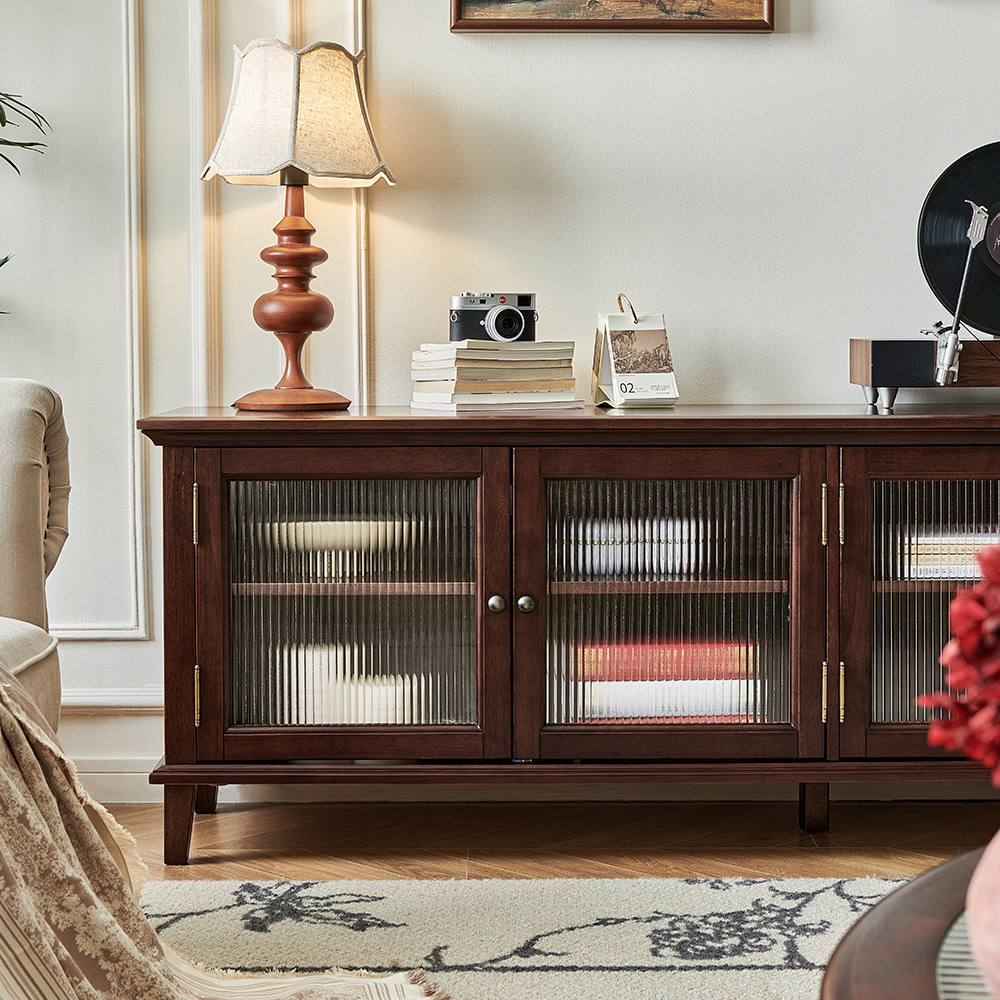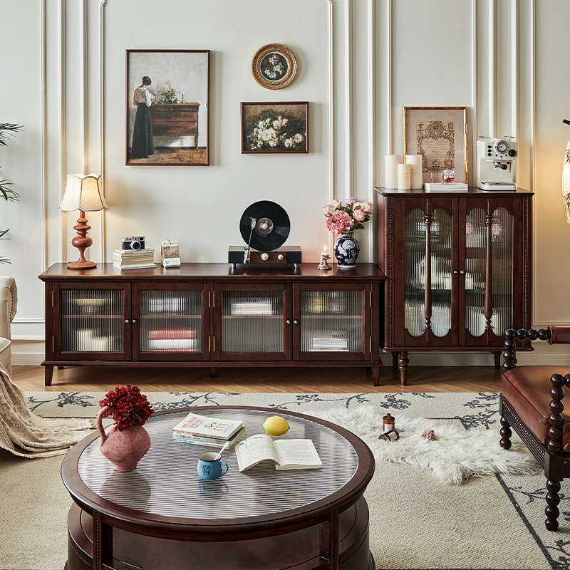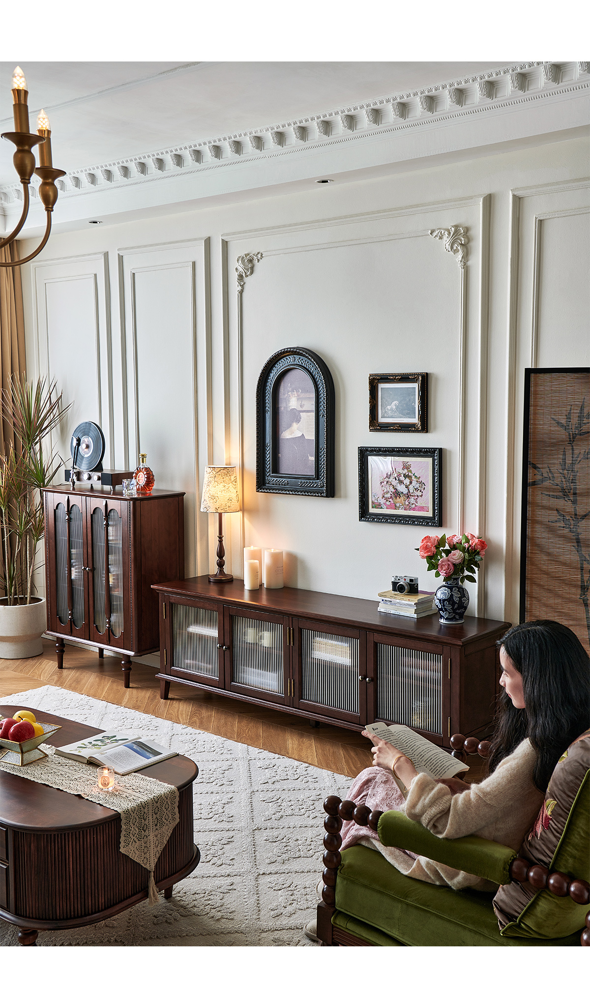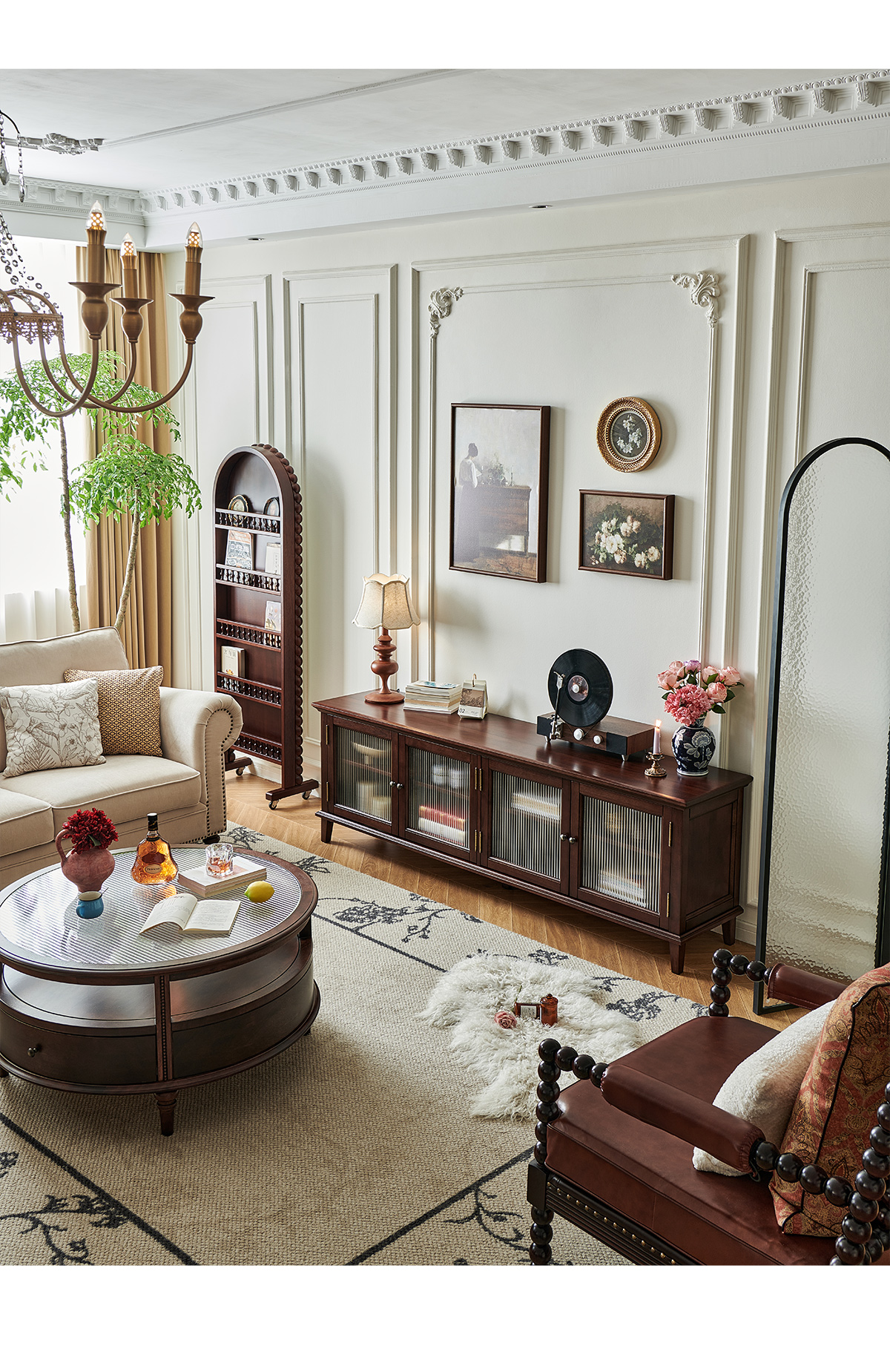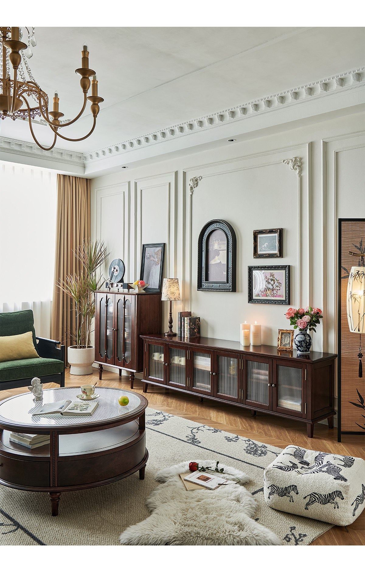 2米四门电视柜 胡桃色 纯原木无贴皮