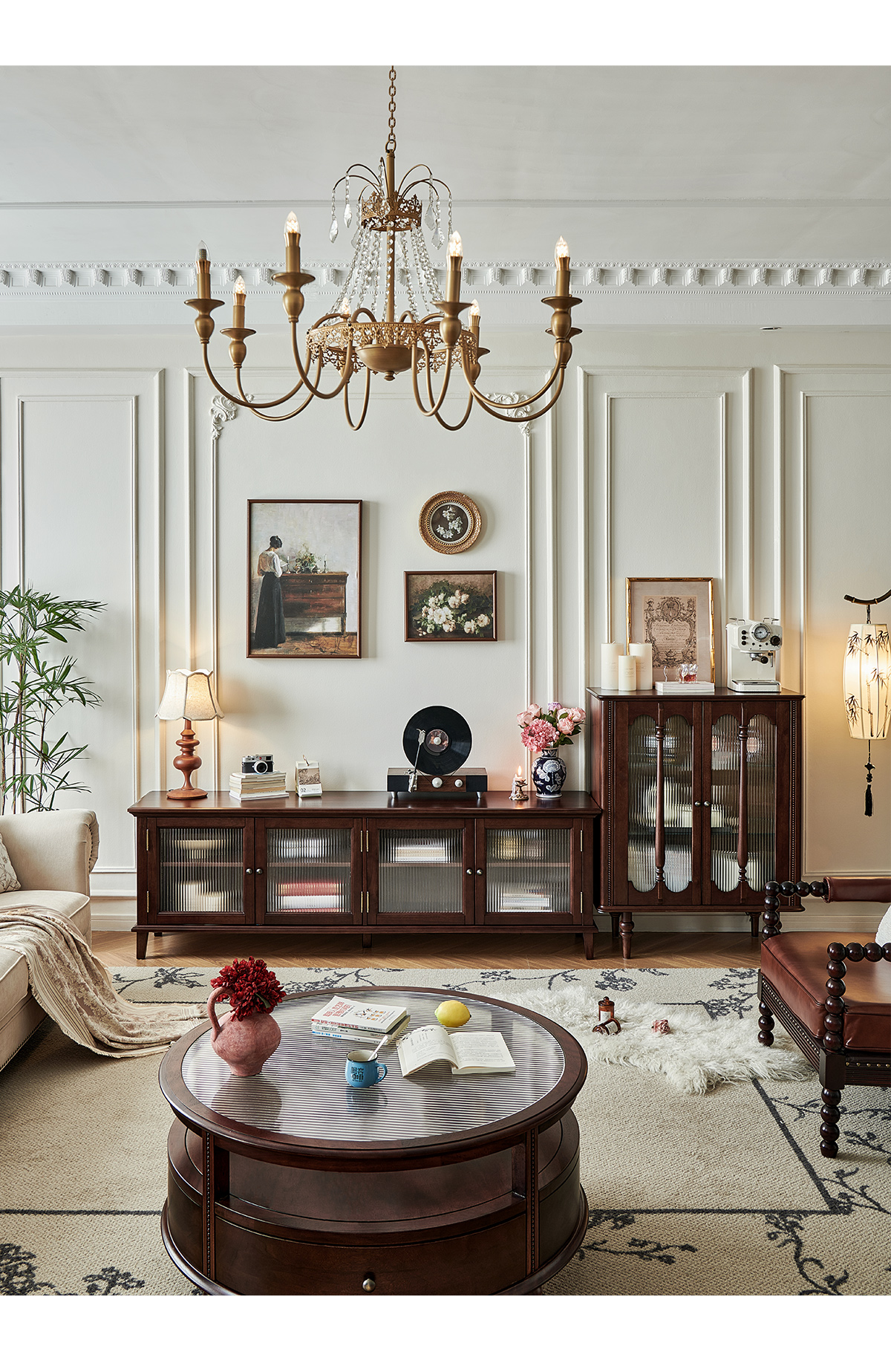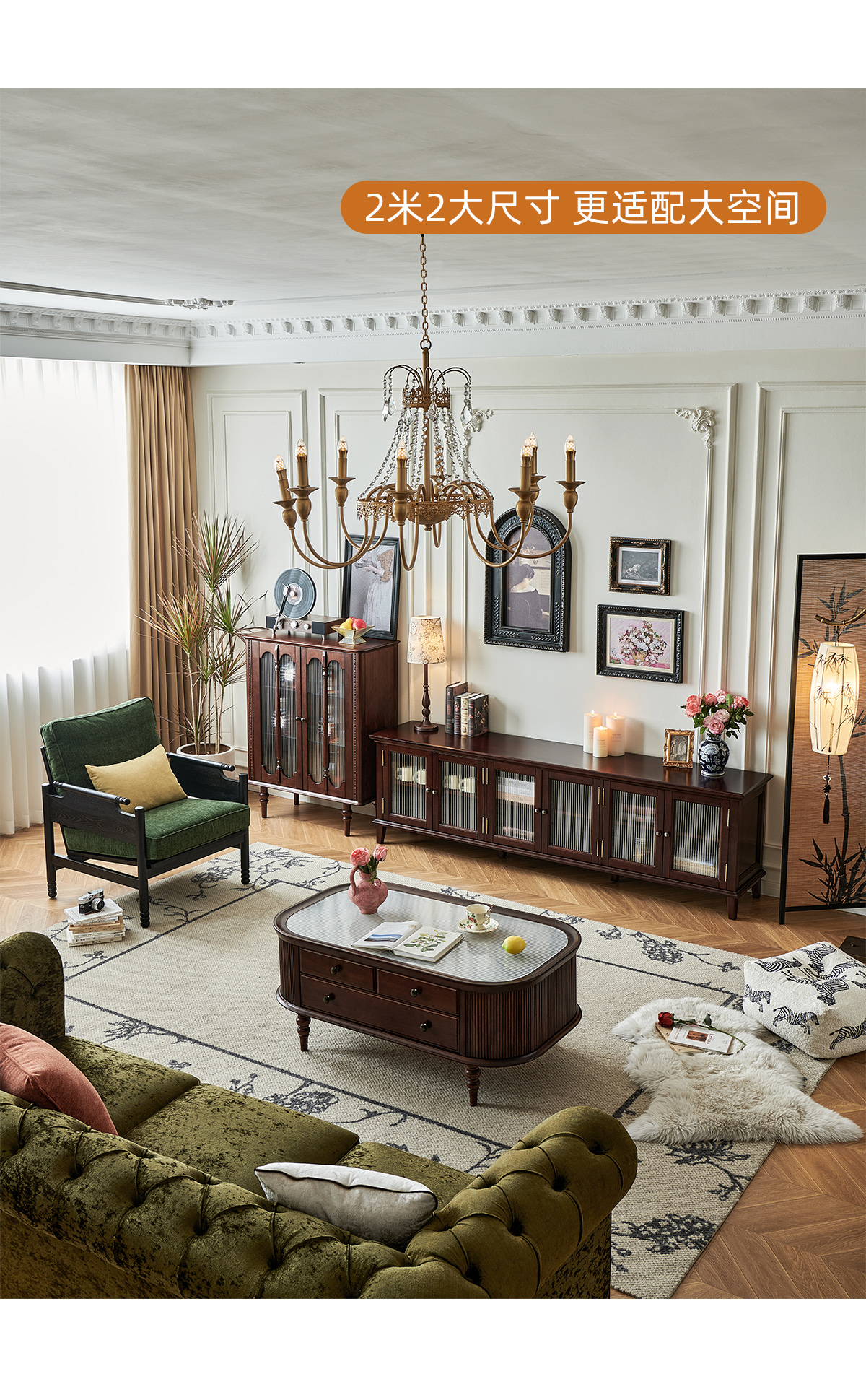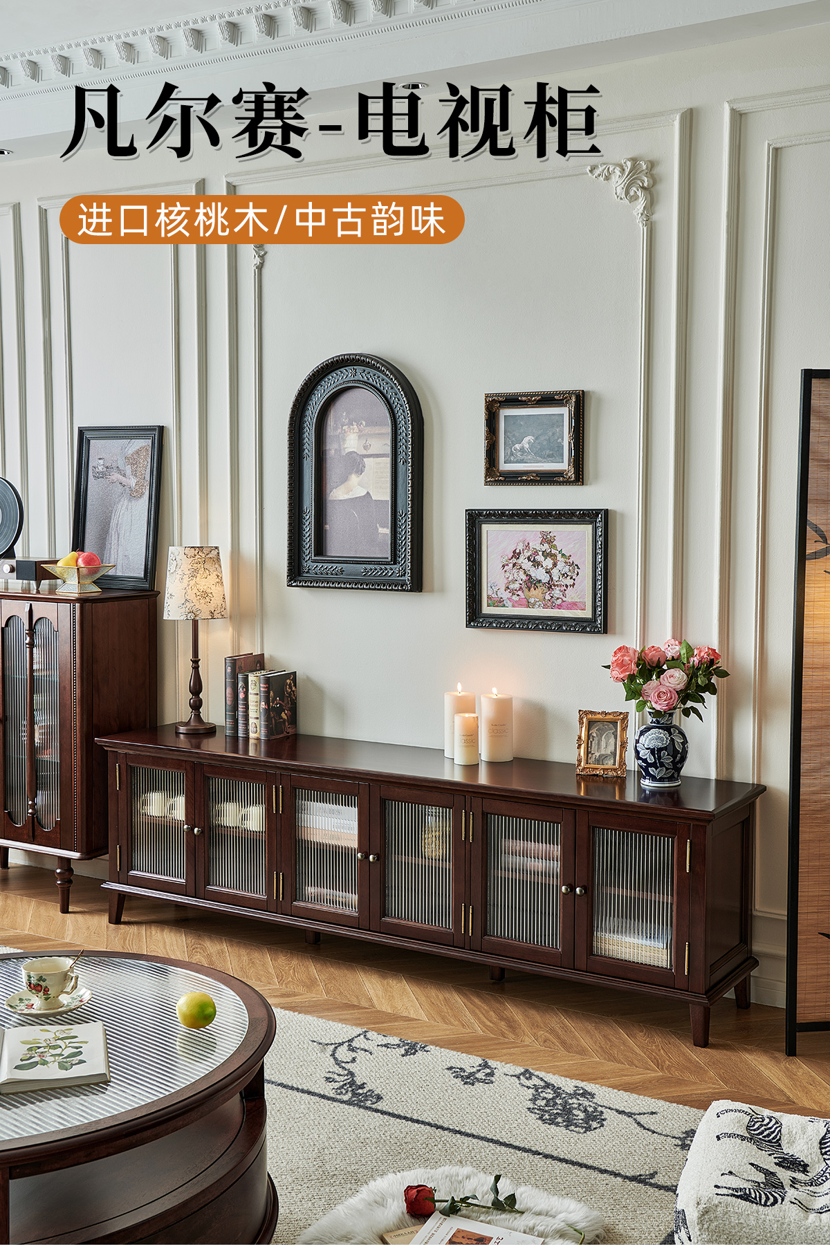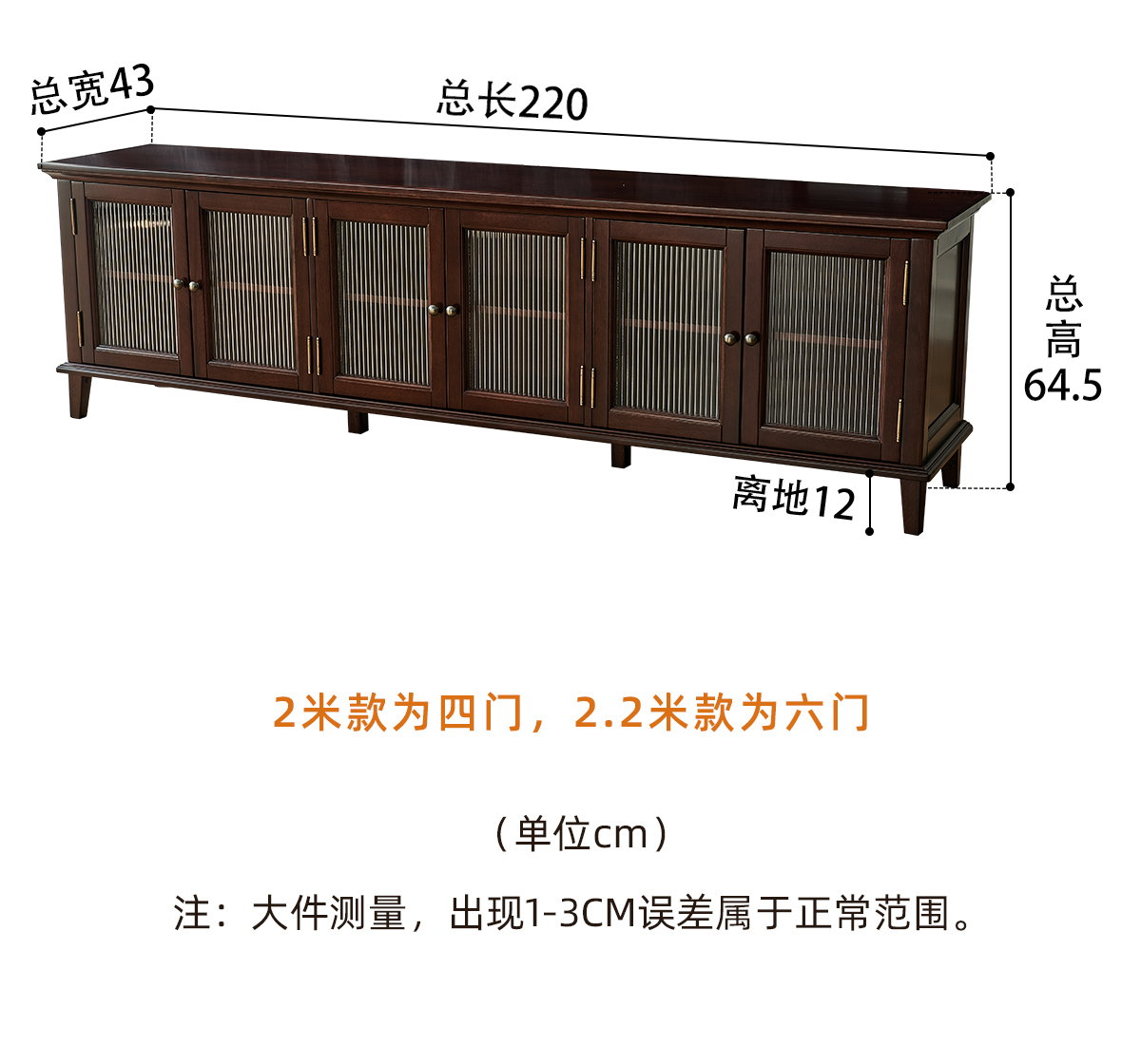 2.2米六门电视柜 胡桃色 纯原木无贴皮