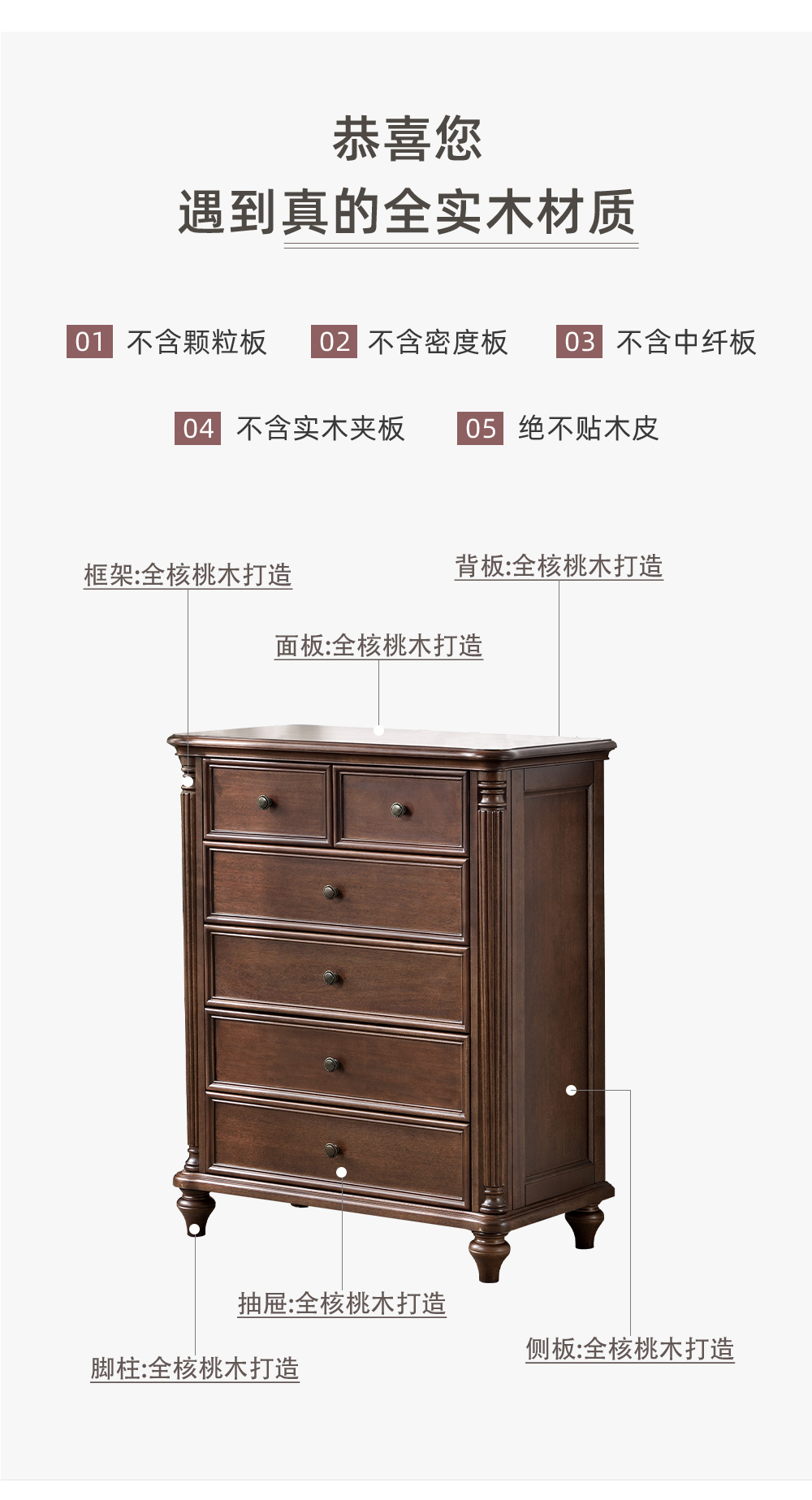 六斗柜 纯原木无贴皮