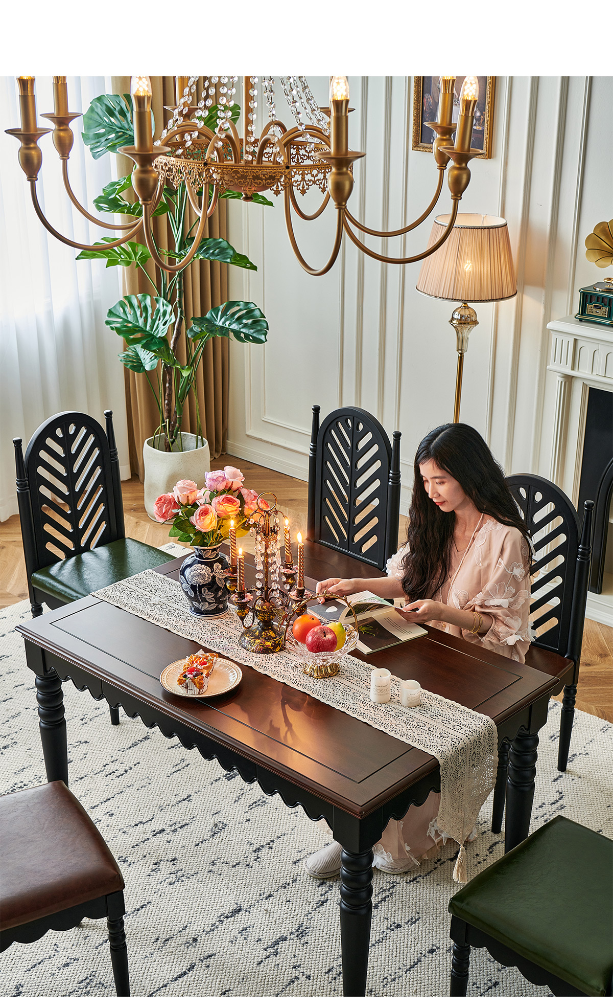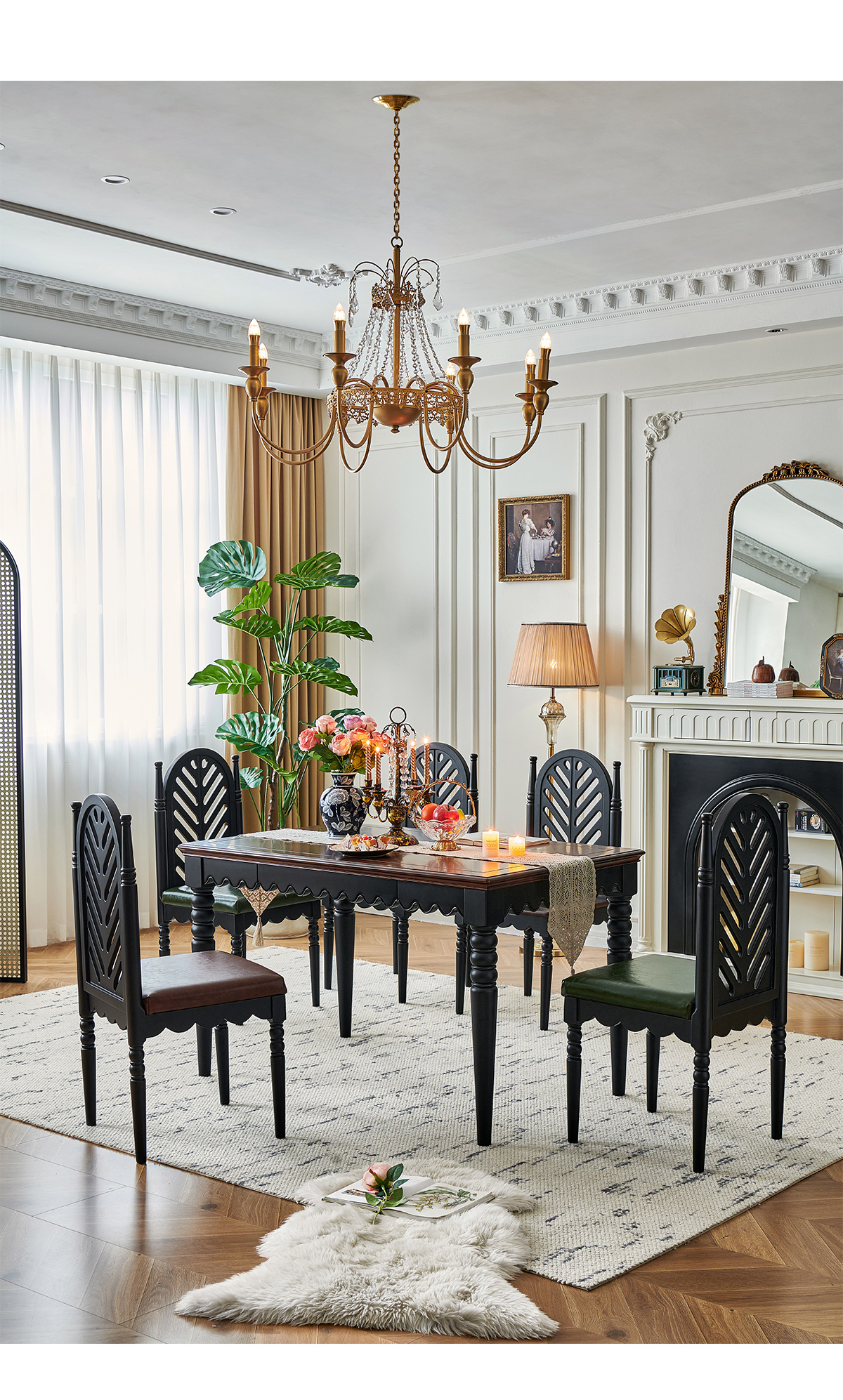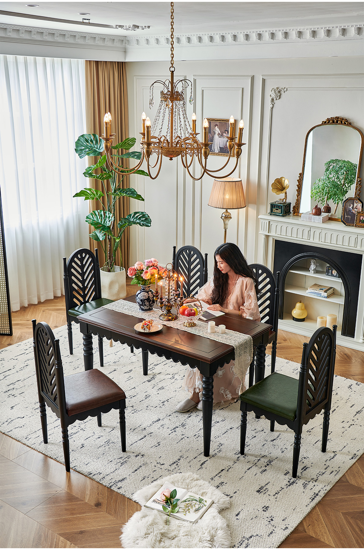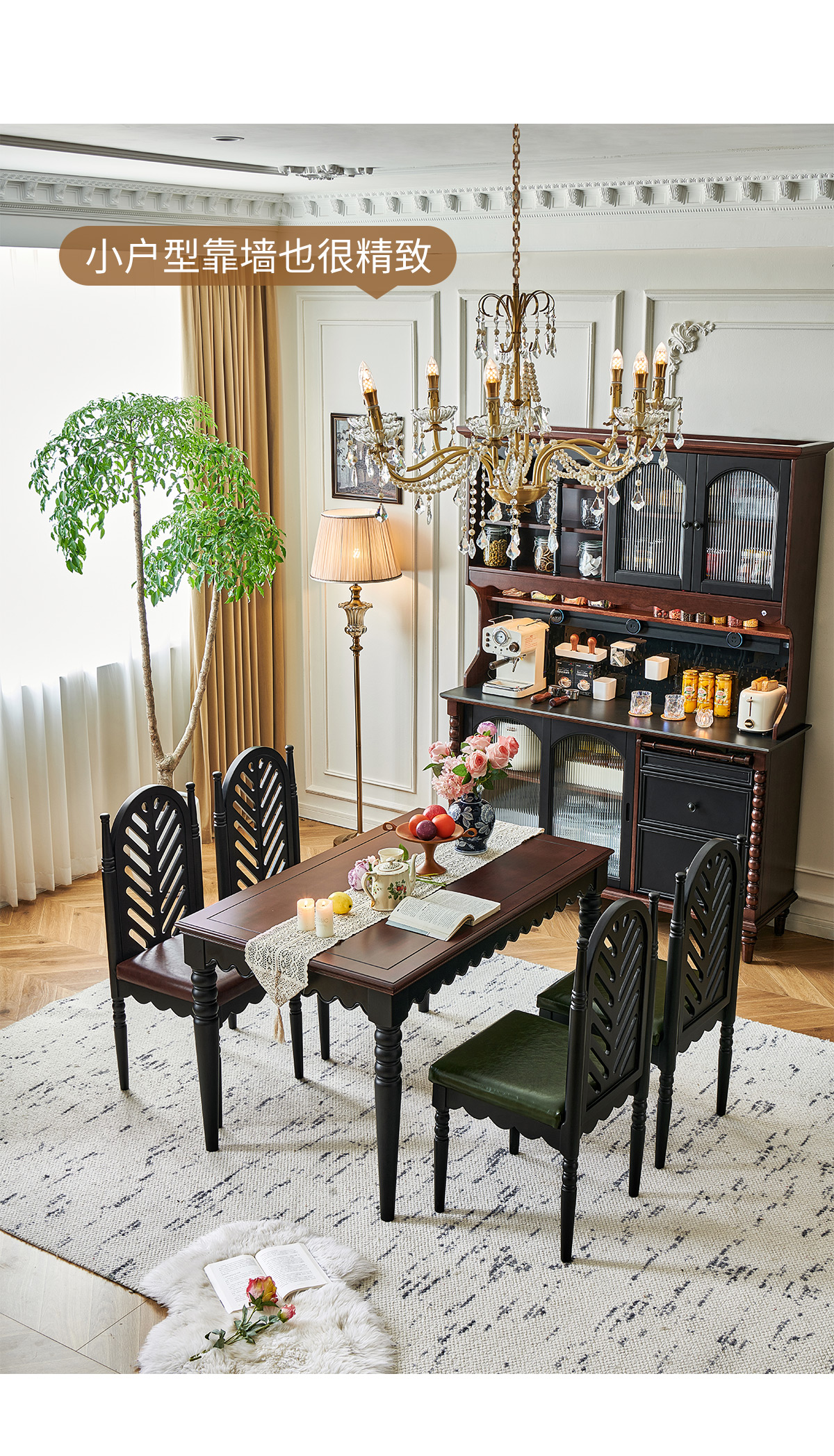 | 1.6米实木餐桌+4把软包板椅 两面双抽屉 | 6080 |