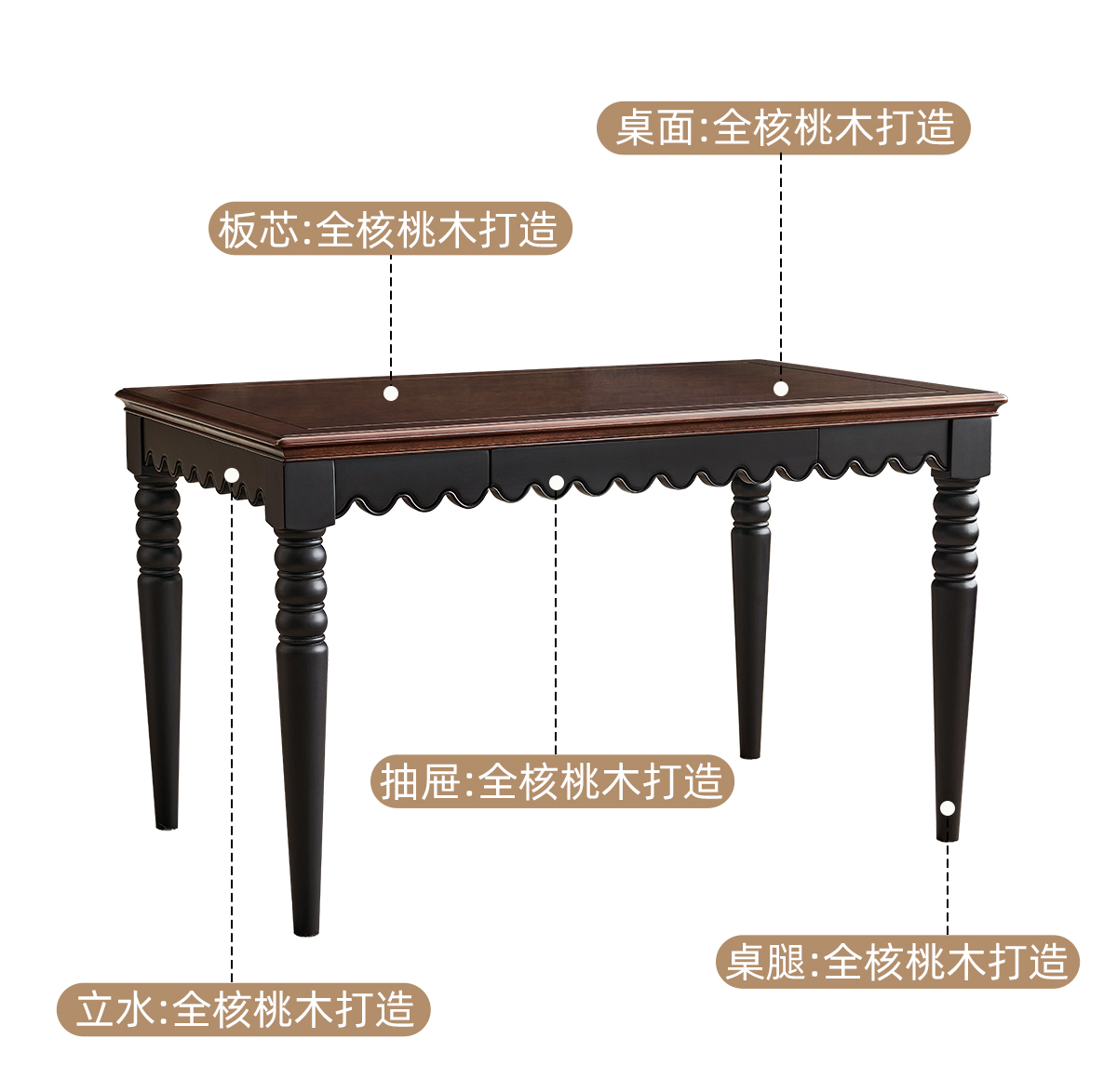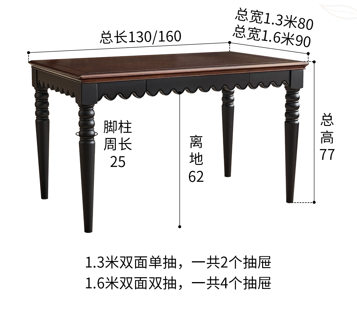 | 1.3米全实木餐桌 纯原木无贴皮 两面单抽屉 | 3280 |
