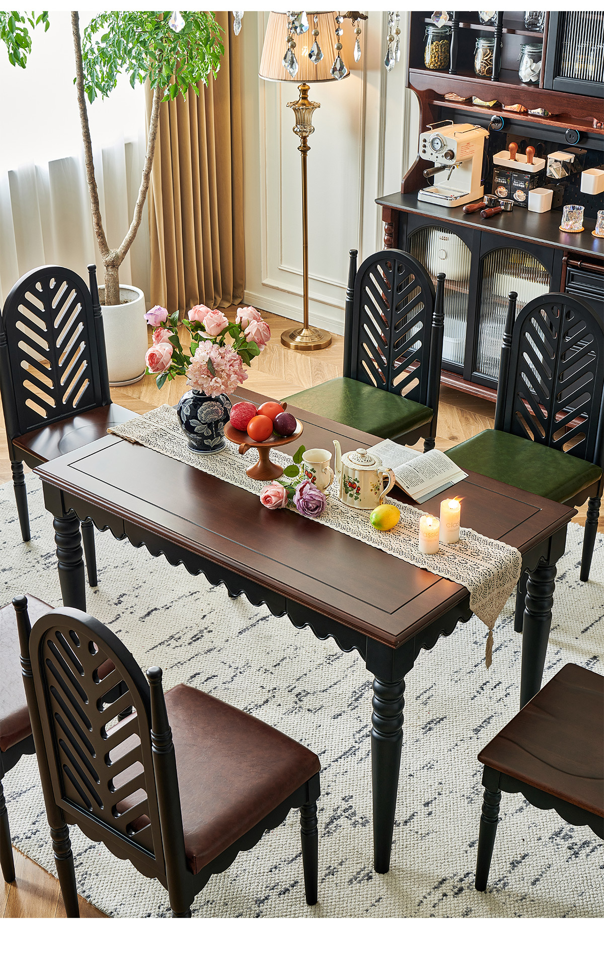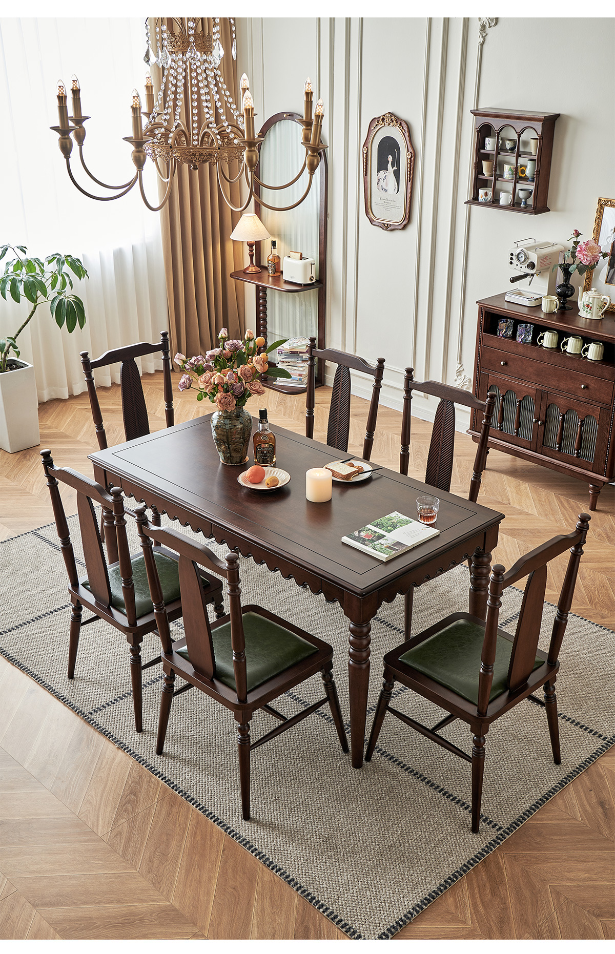 | 1.6米实木餐桌+6把软包板椅 两面双抽屉 | 7380 |