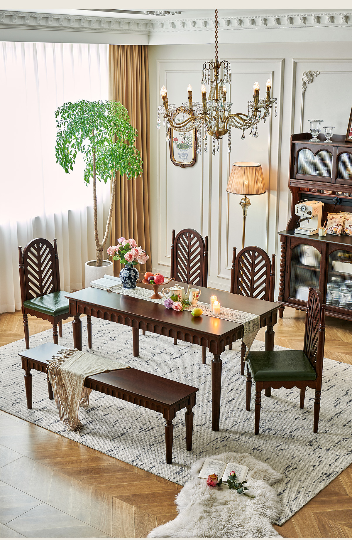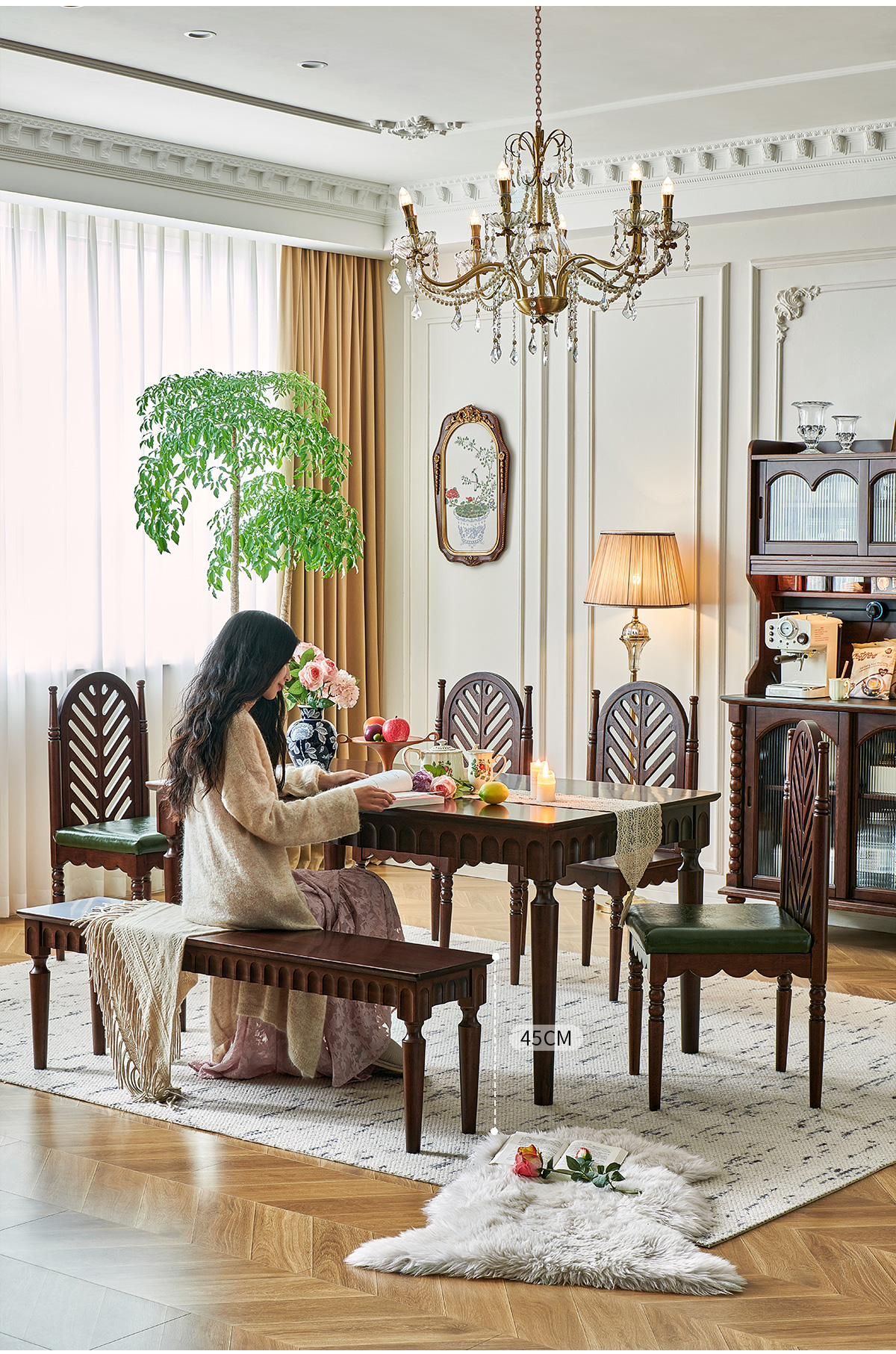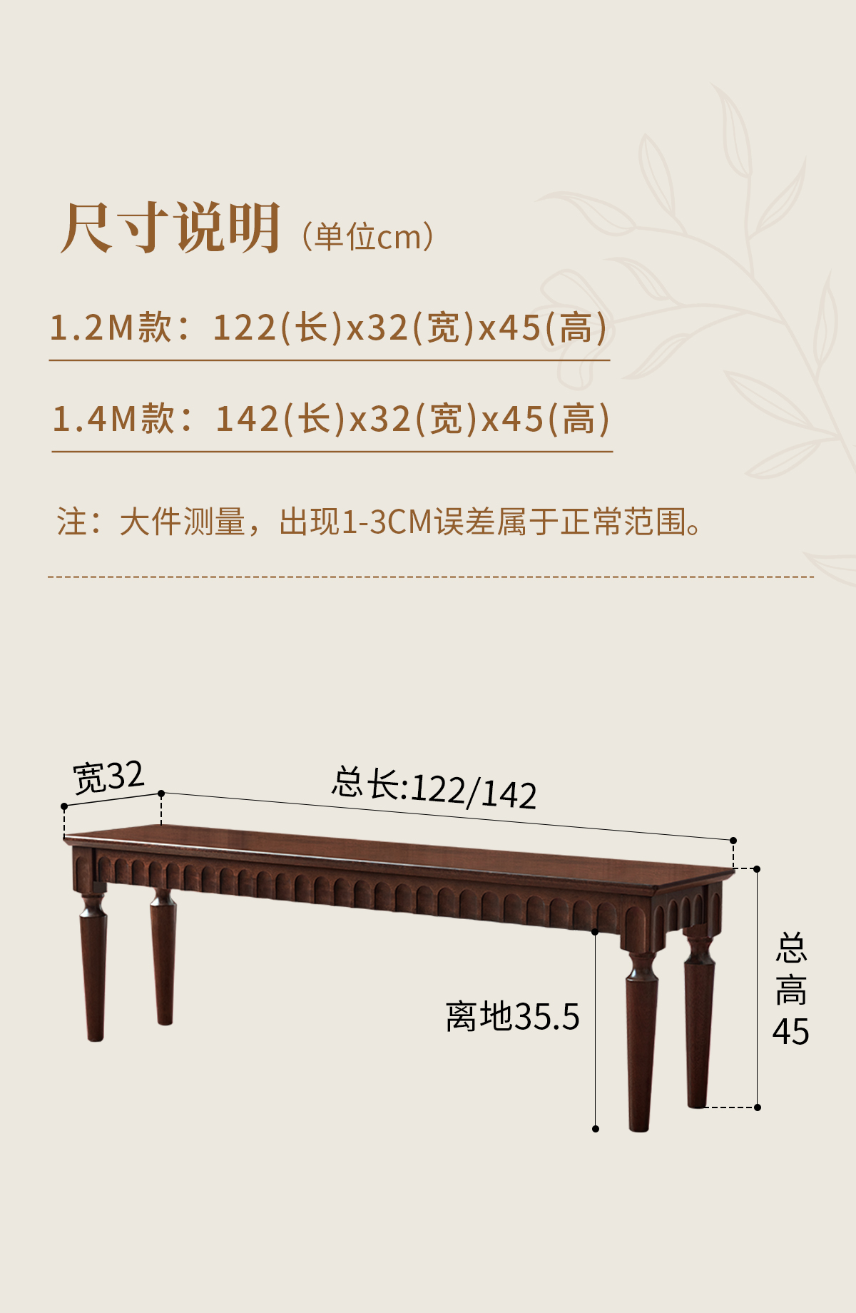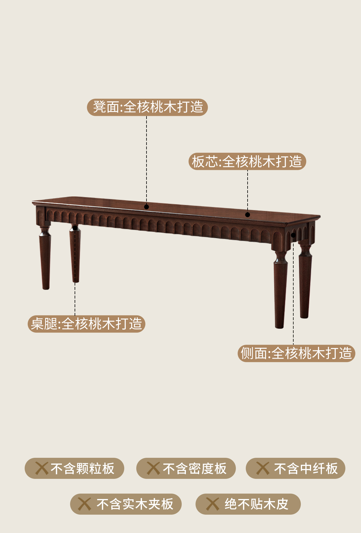 1.42米 胡桃色全实木长凳 1480
