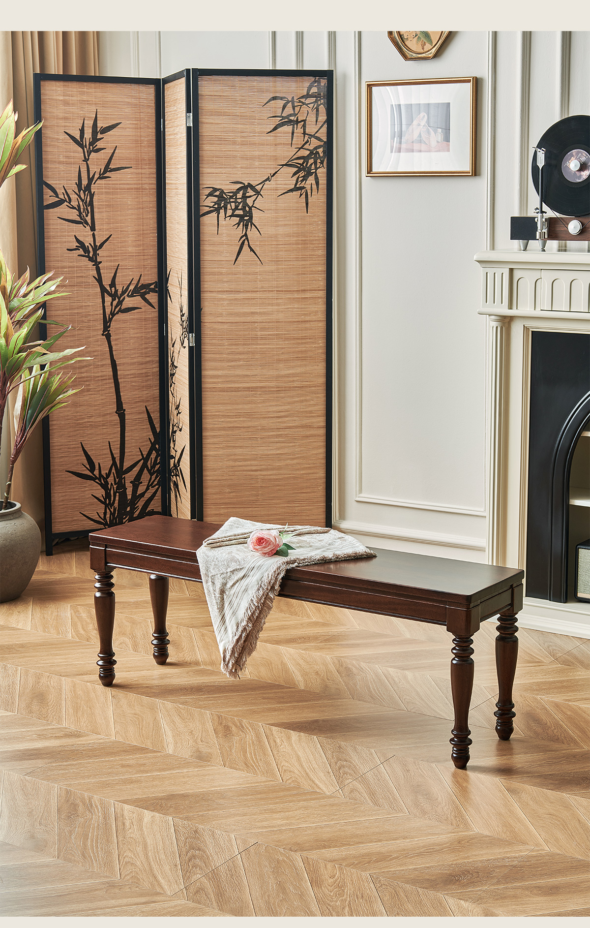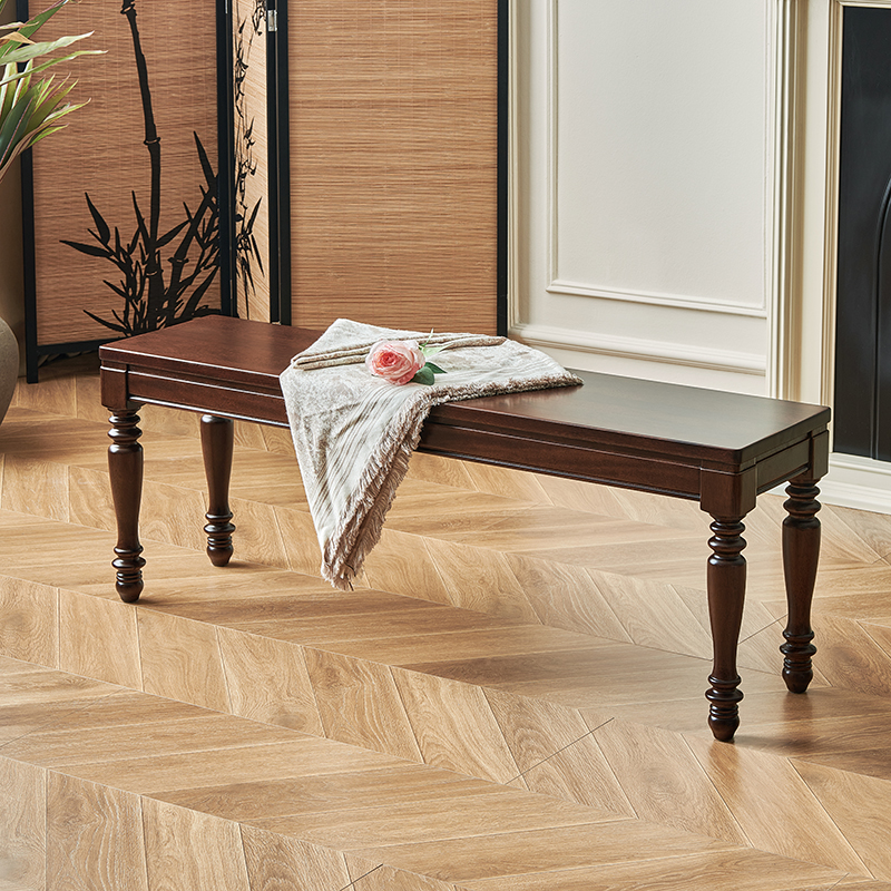 1.2米 美式胡桃色全实木长条凳