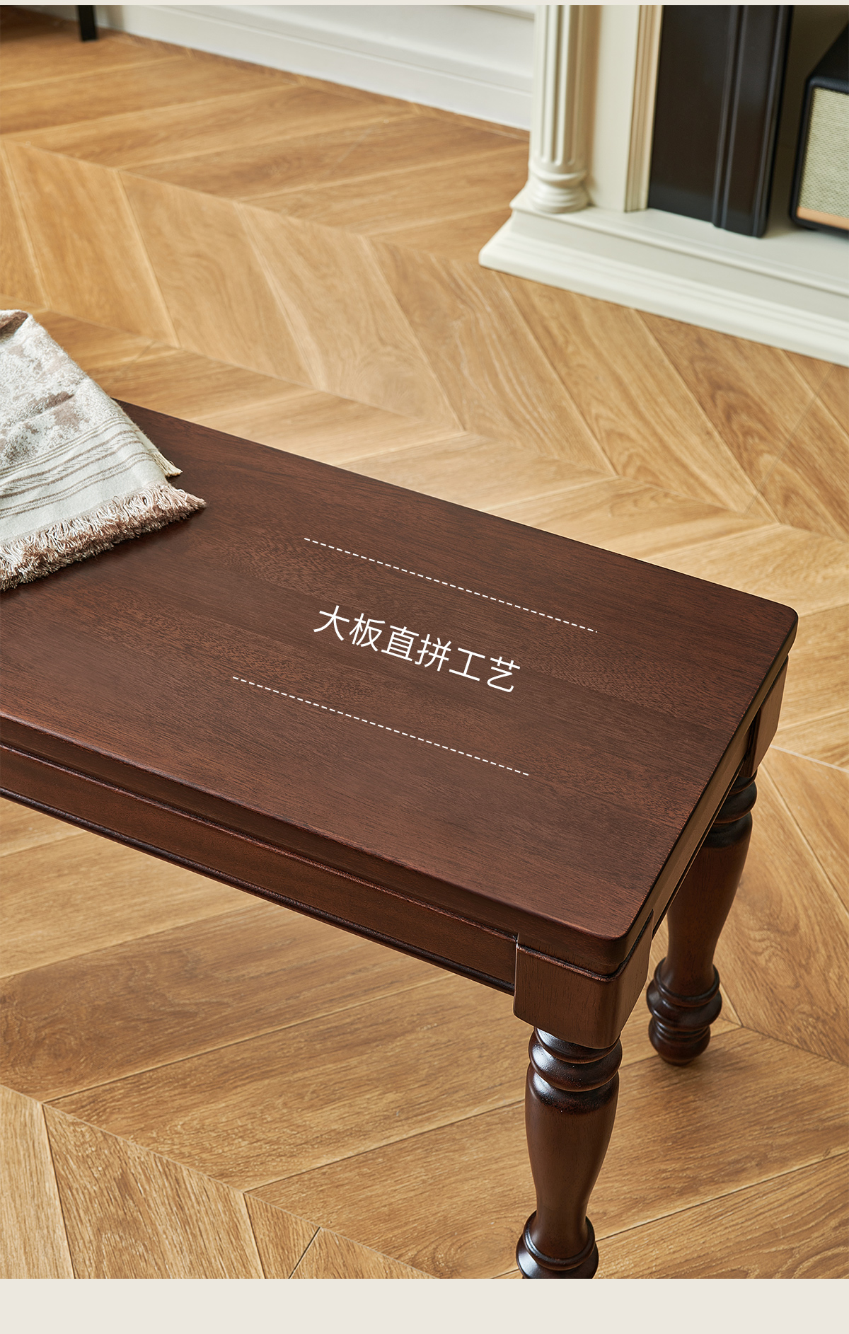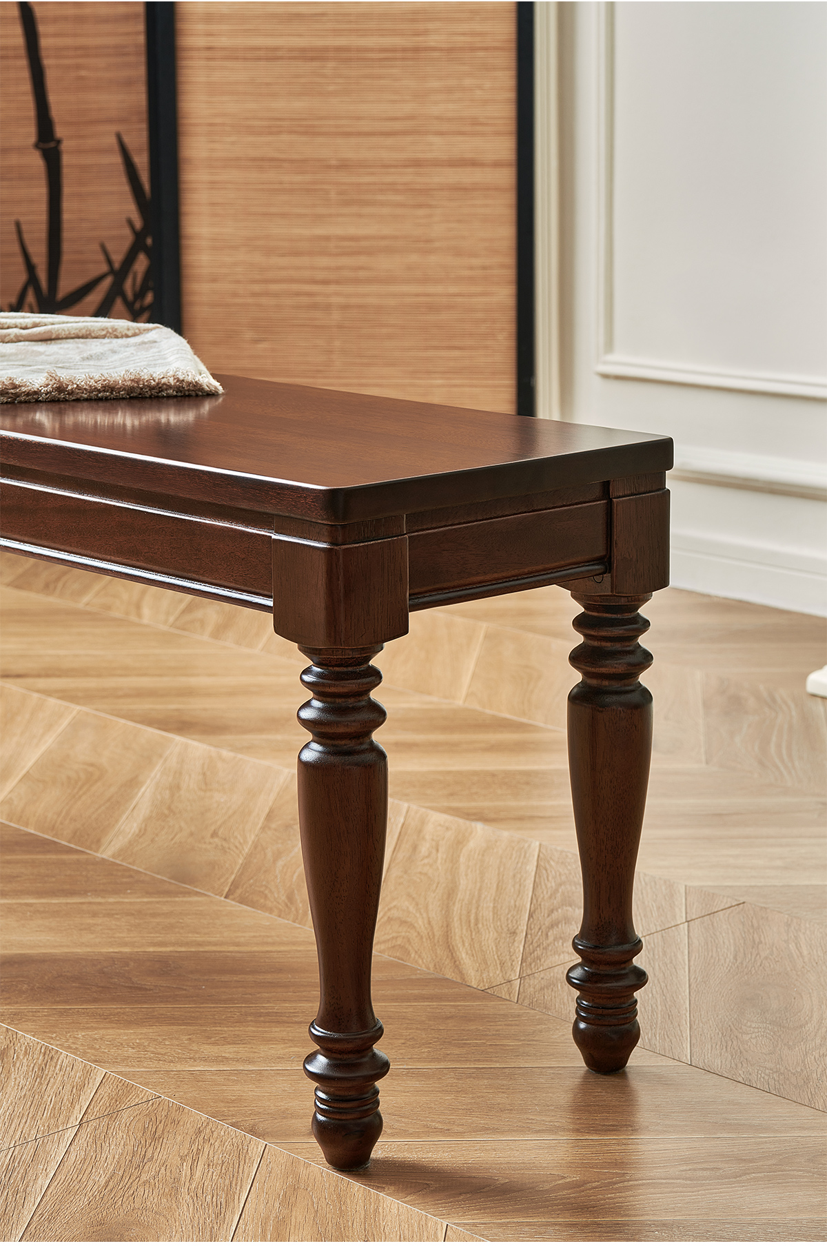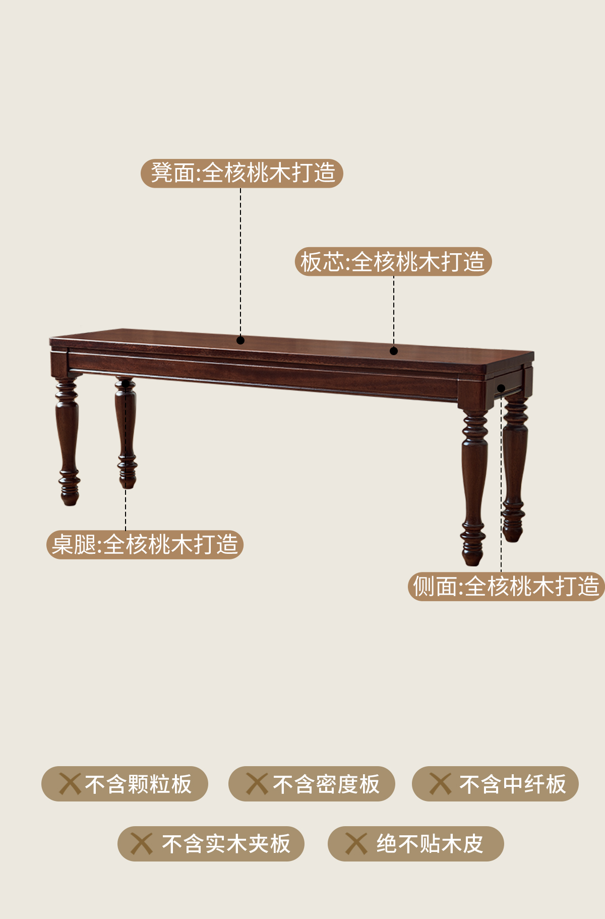 1.4米 美式胡桃色全实木长条凳