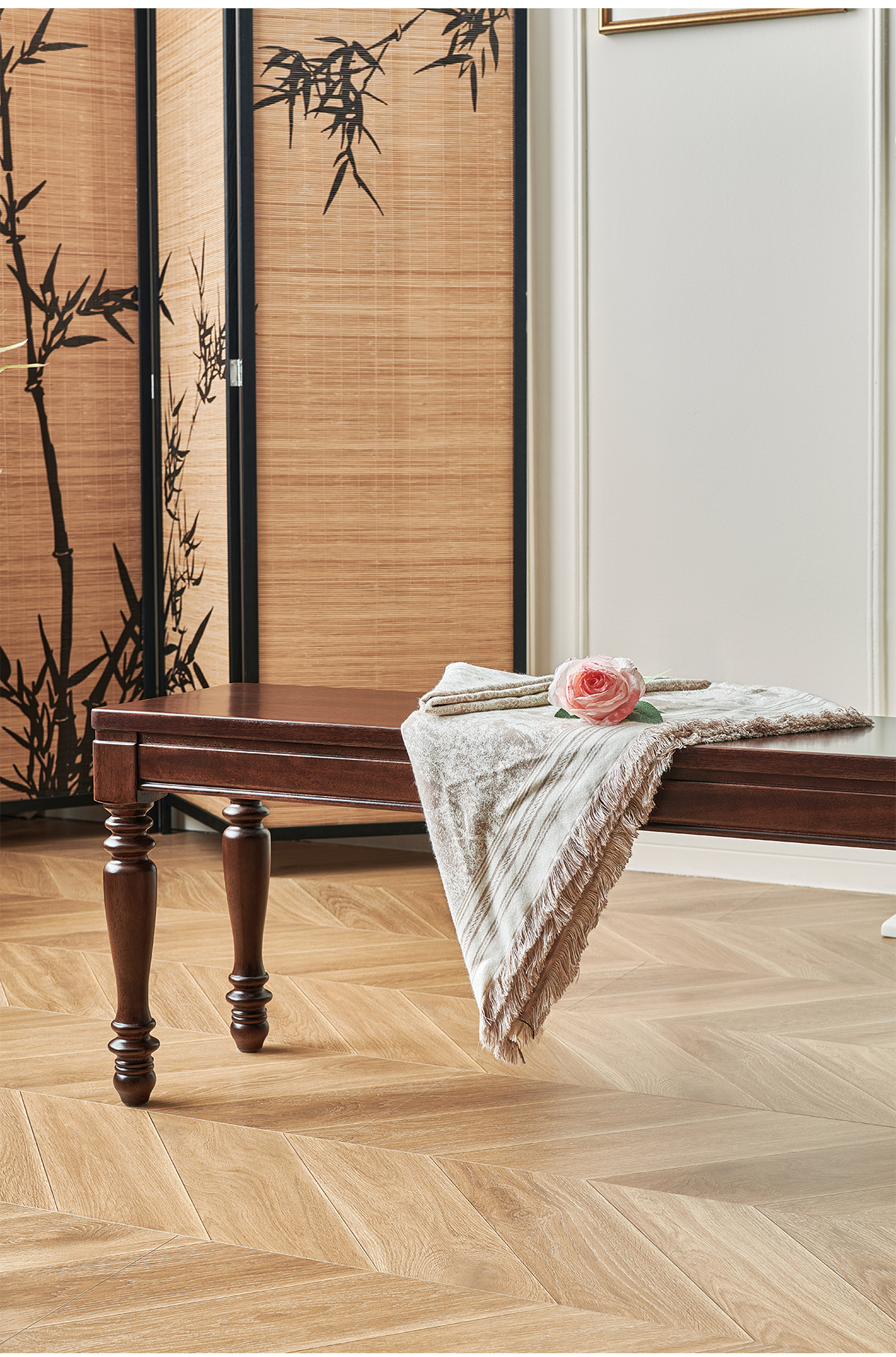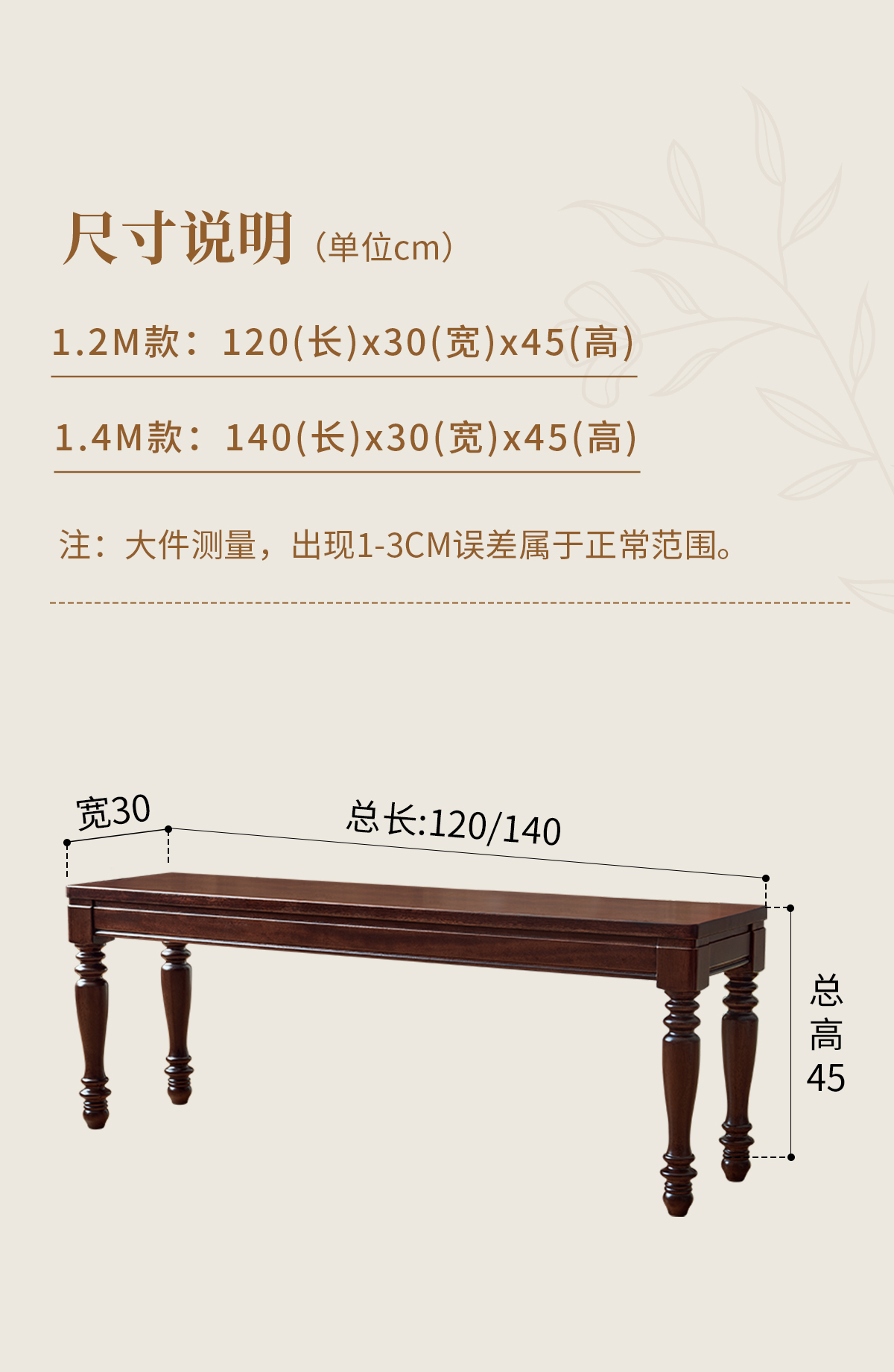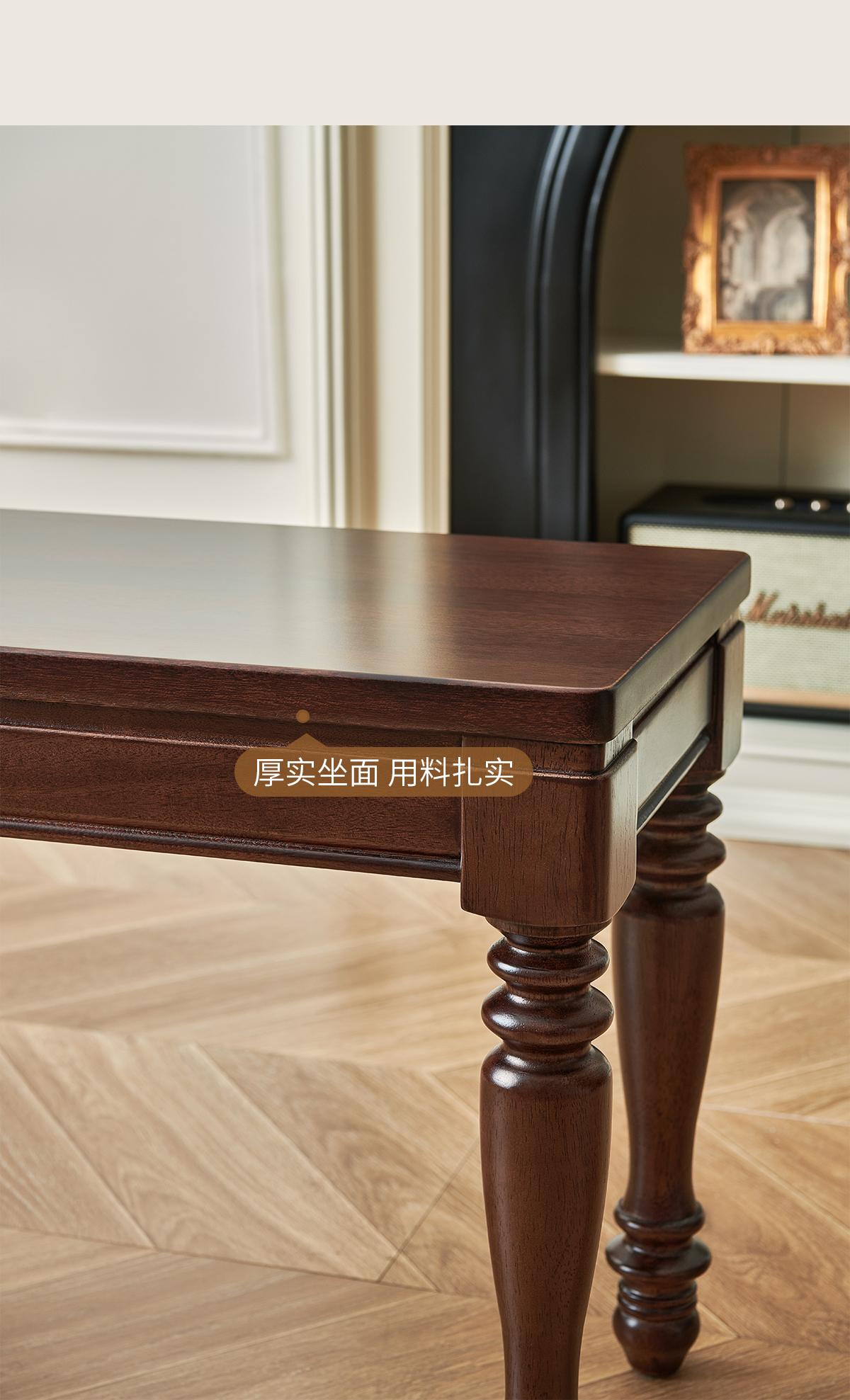 1.4米 美式胡桃色全实木长条凳