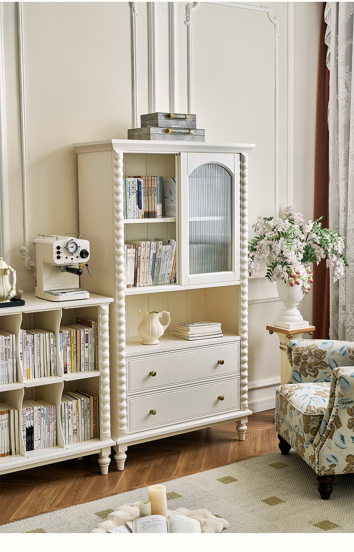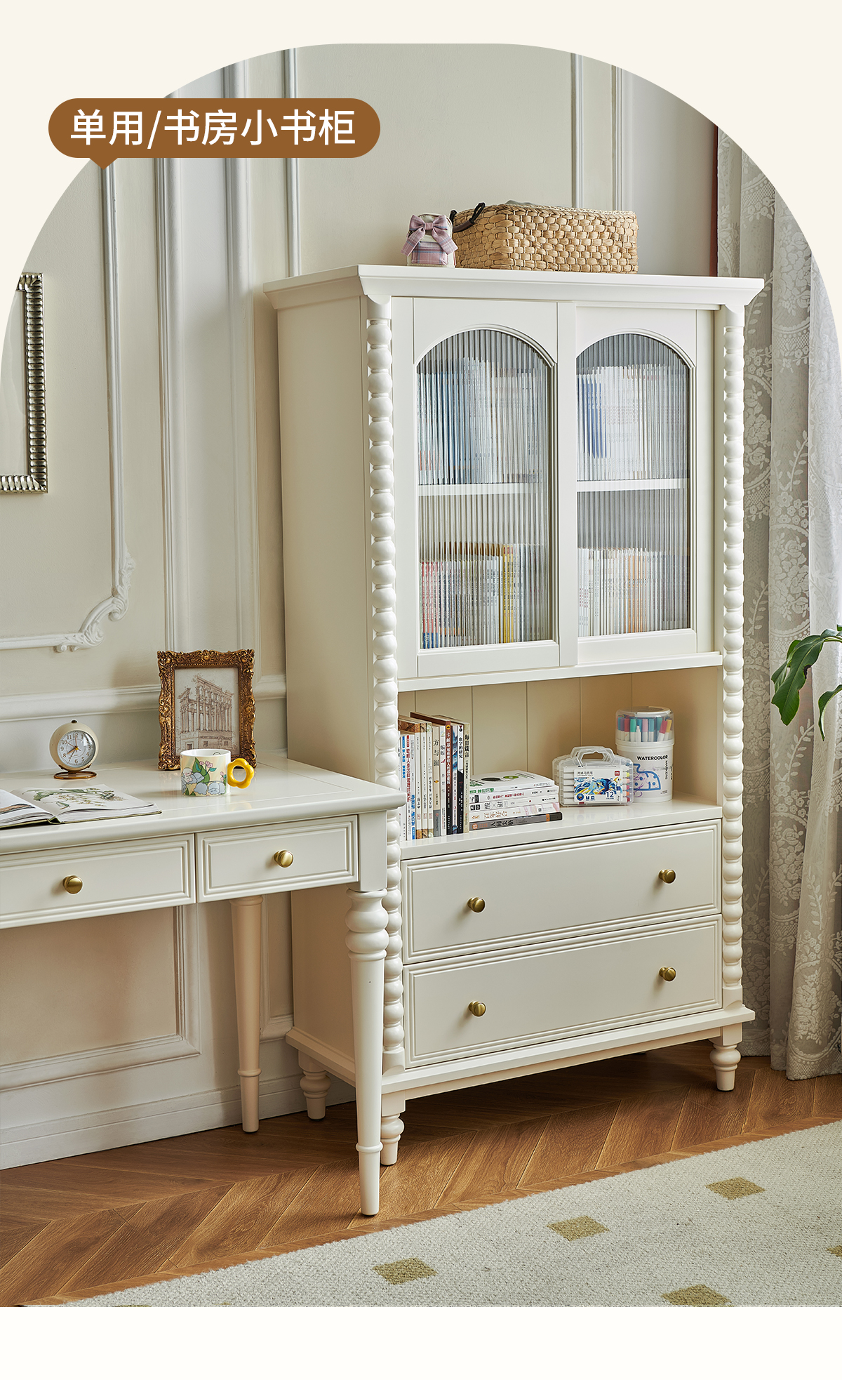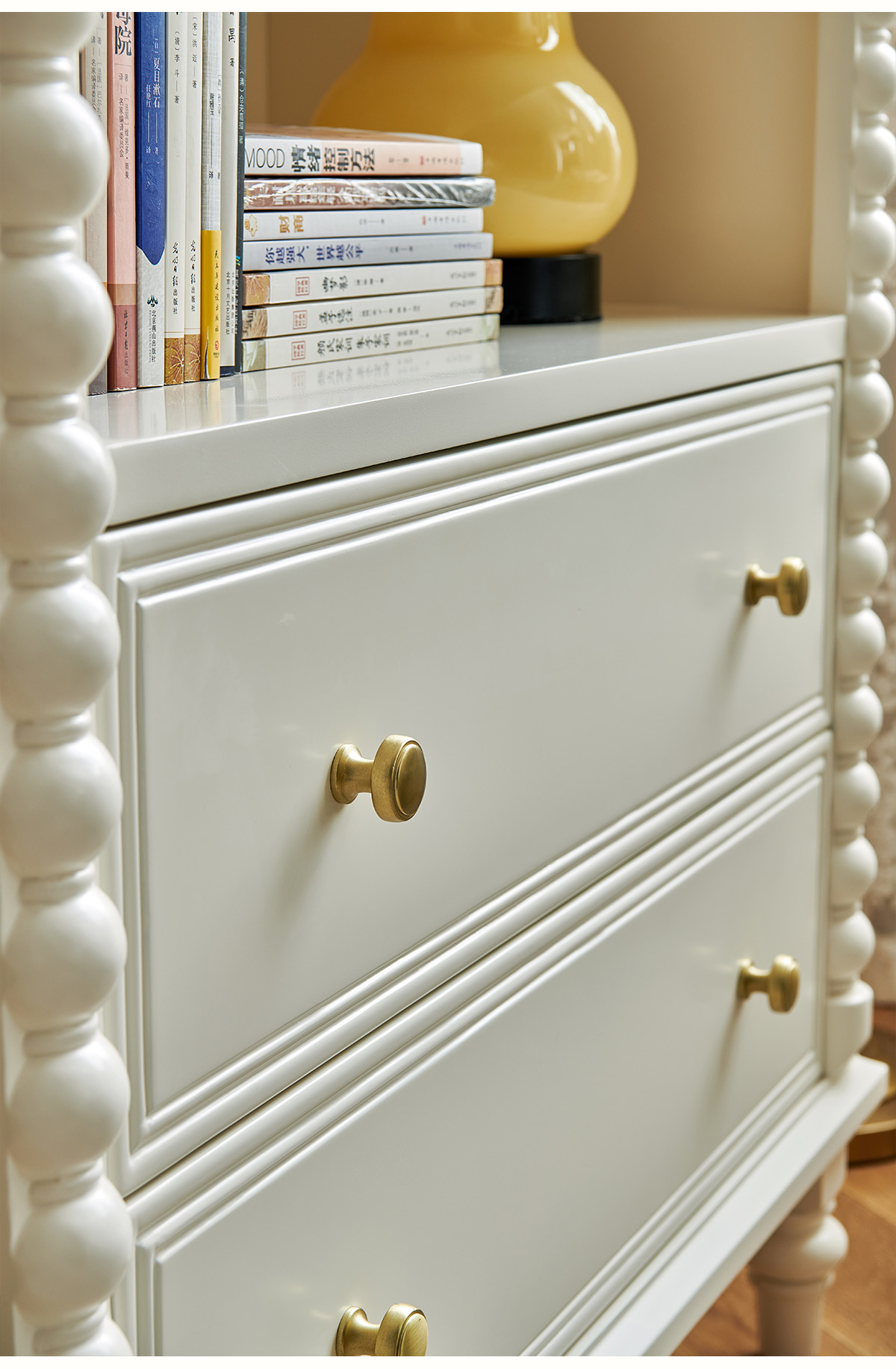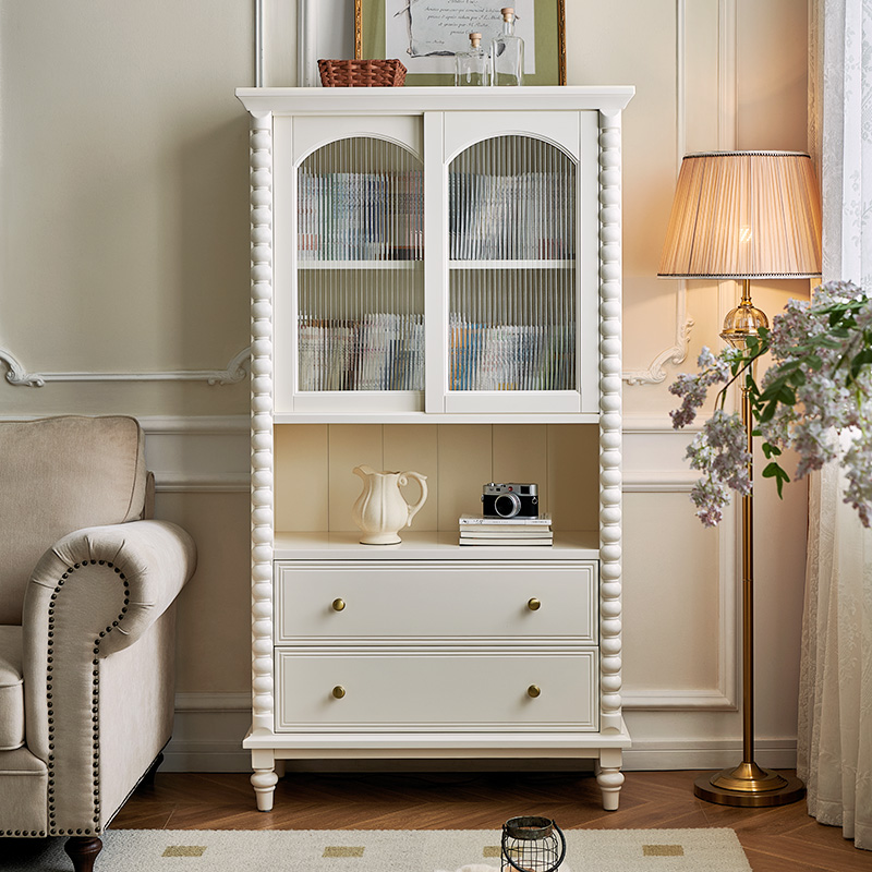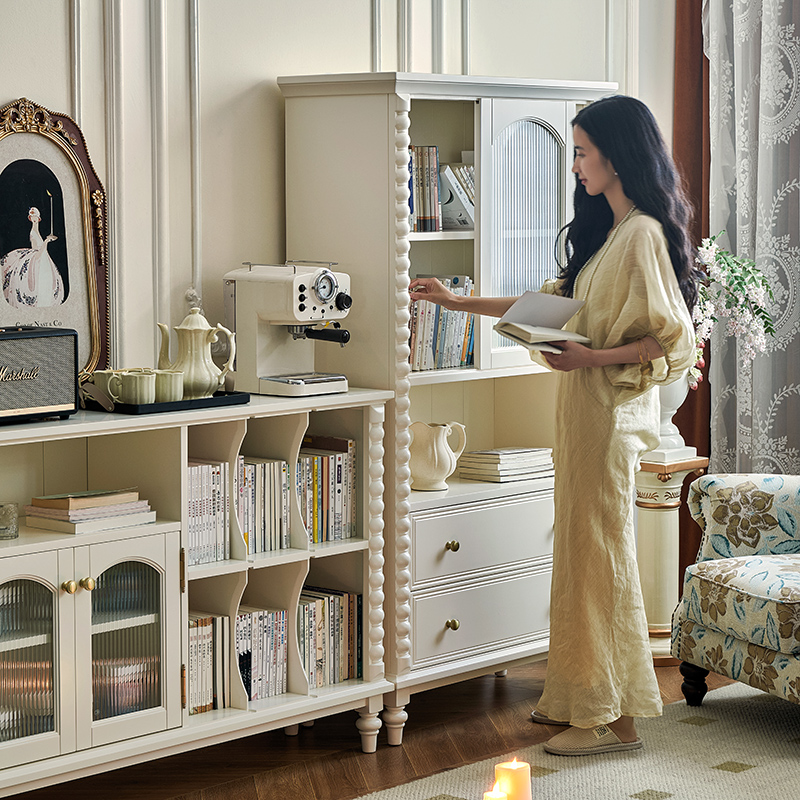 蛋奶白色实木书柜