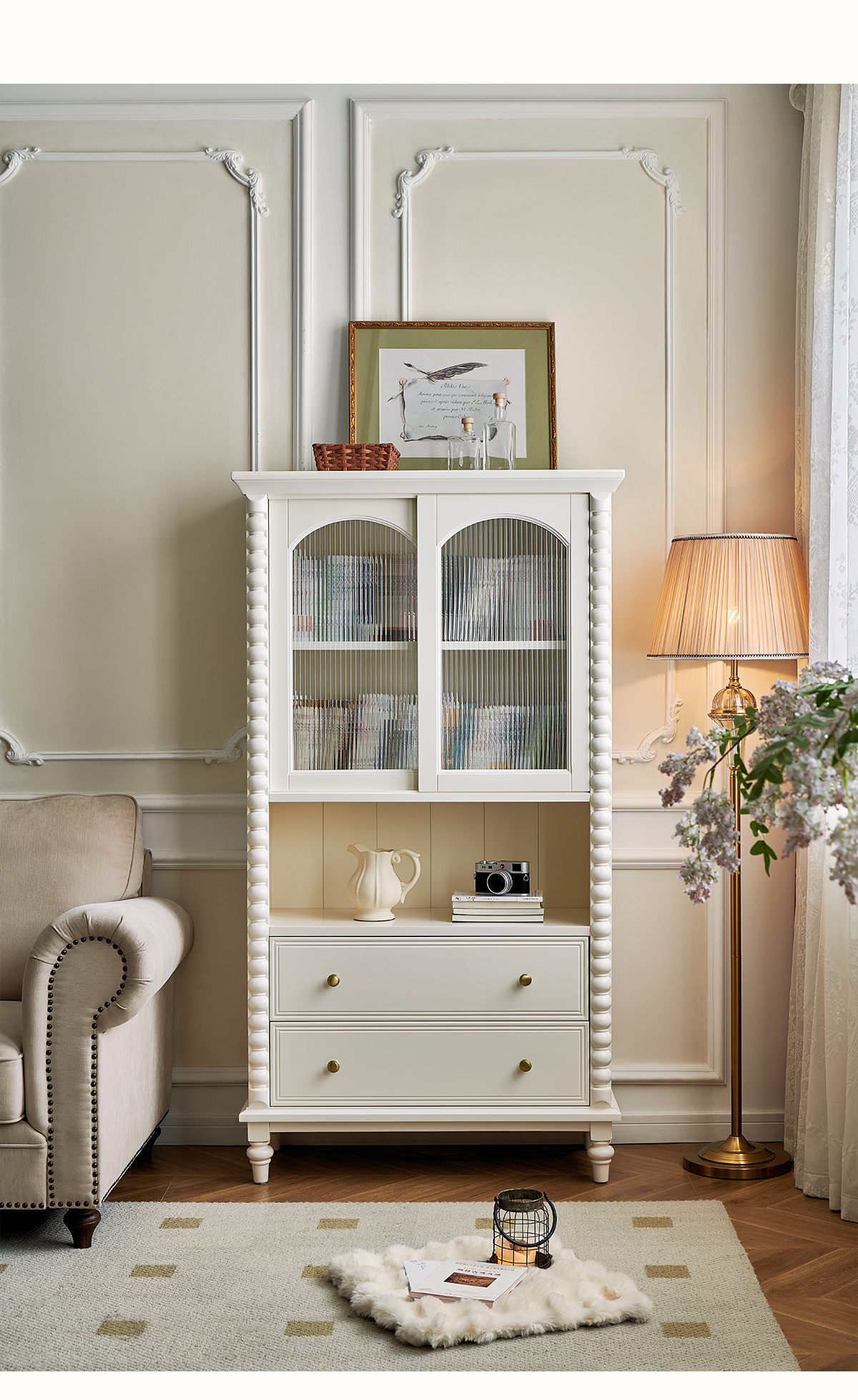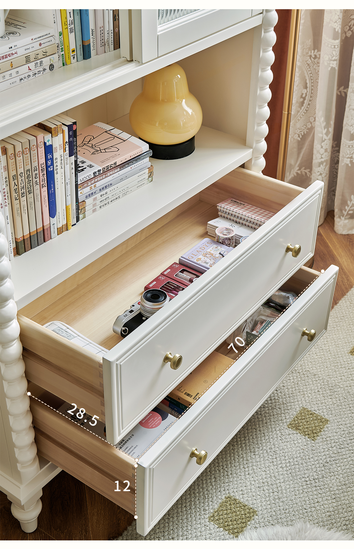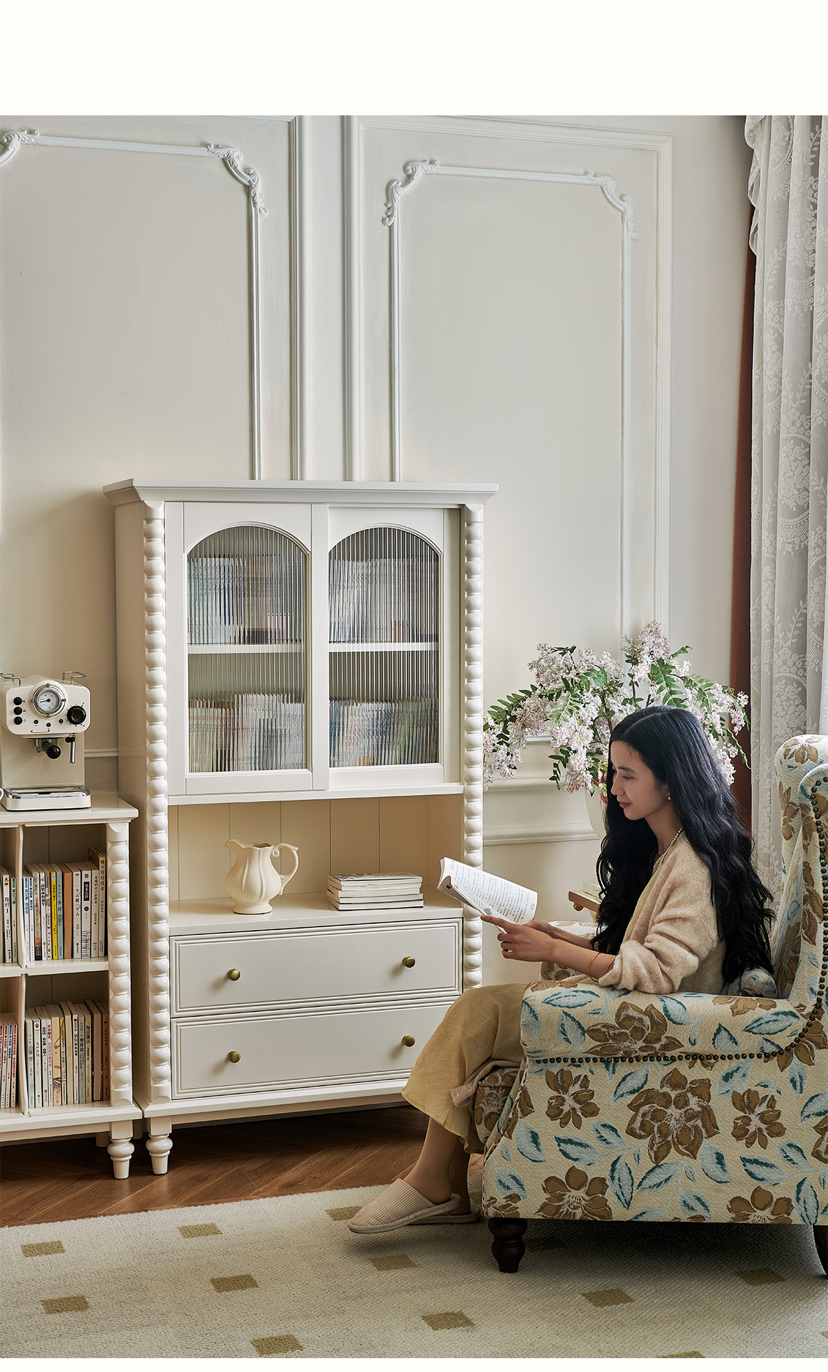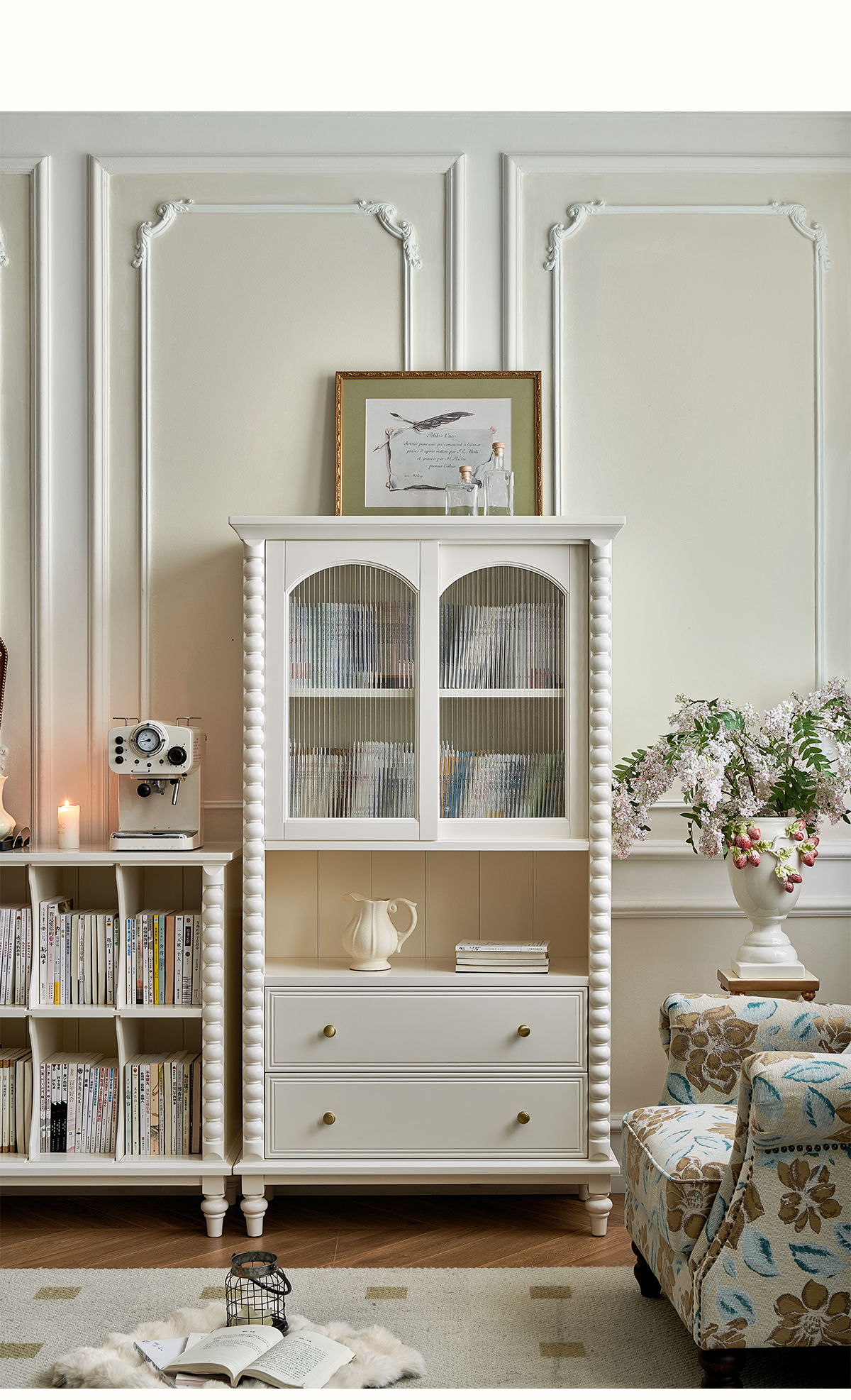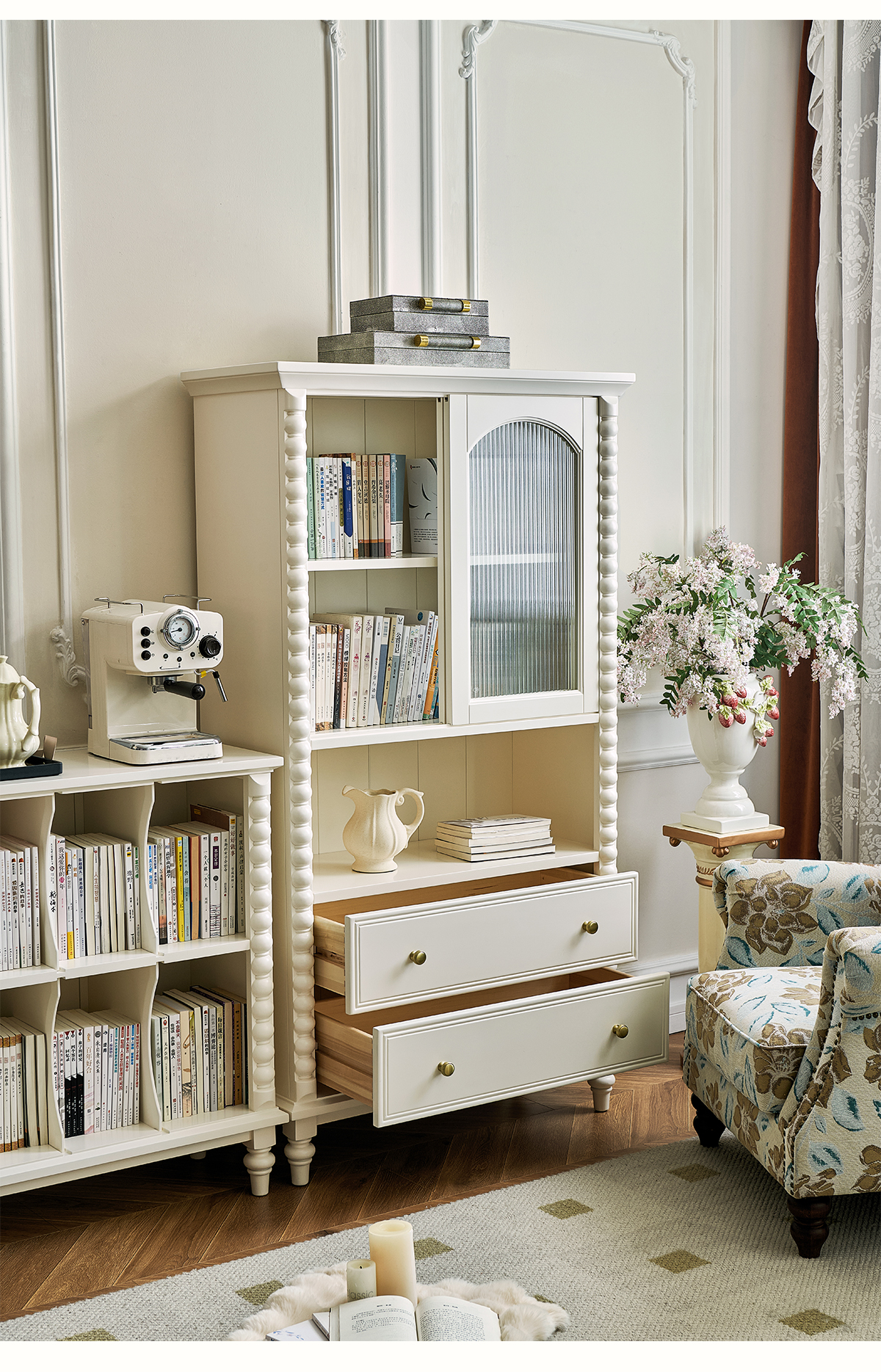 蛋奶白色实木书柜