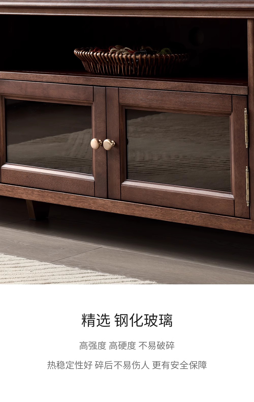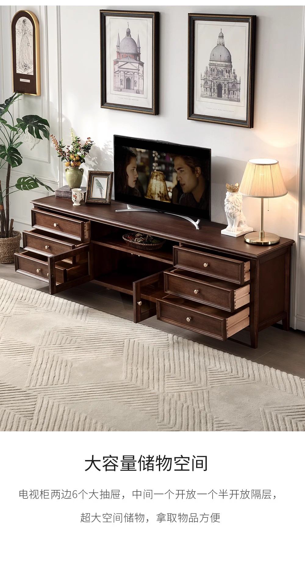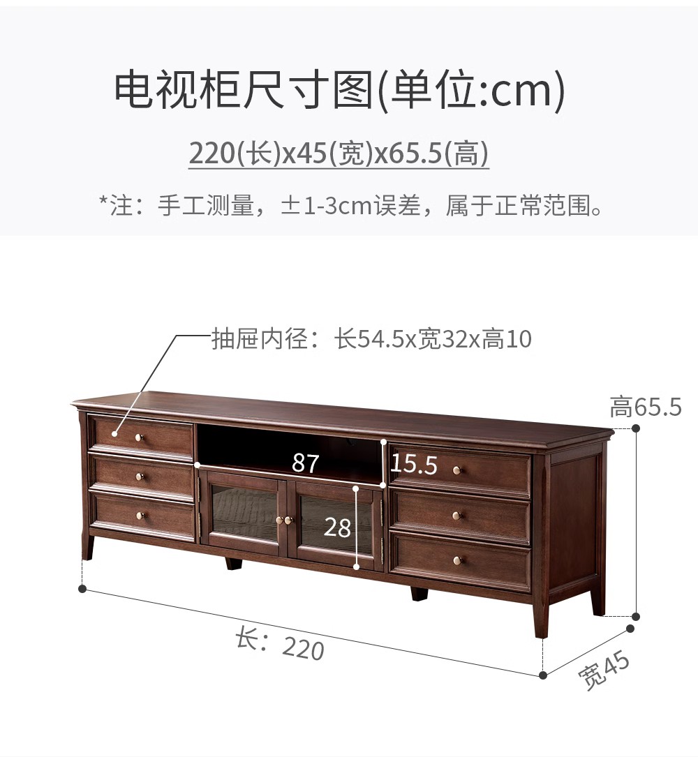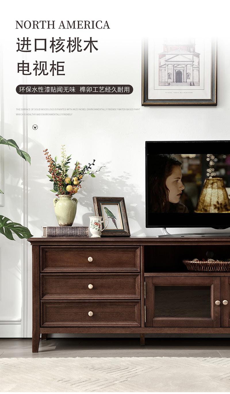 胡桃色 2.2米电视柜 (全实木无辅材)