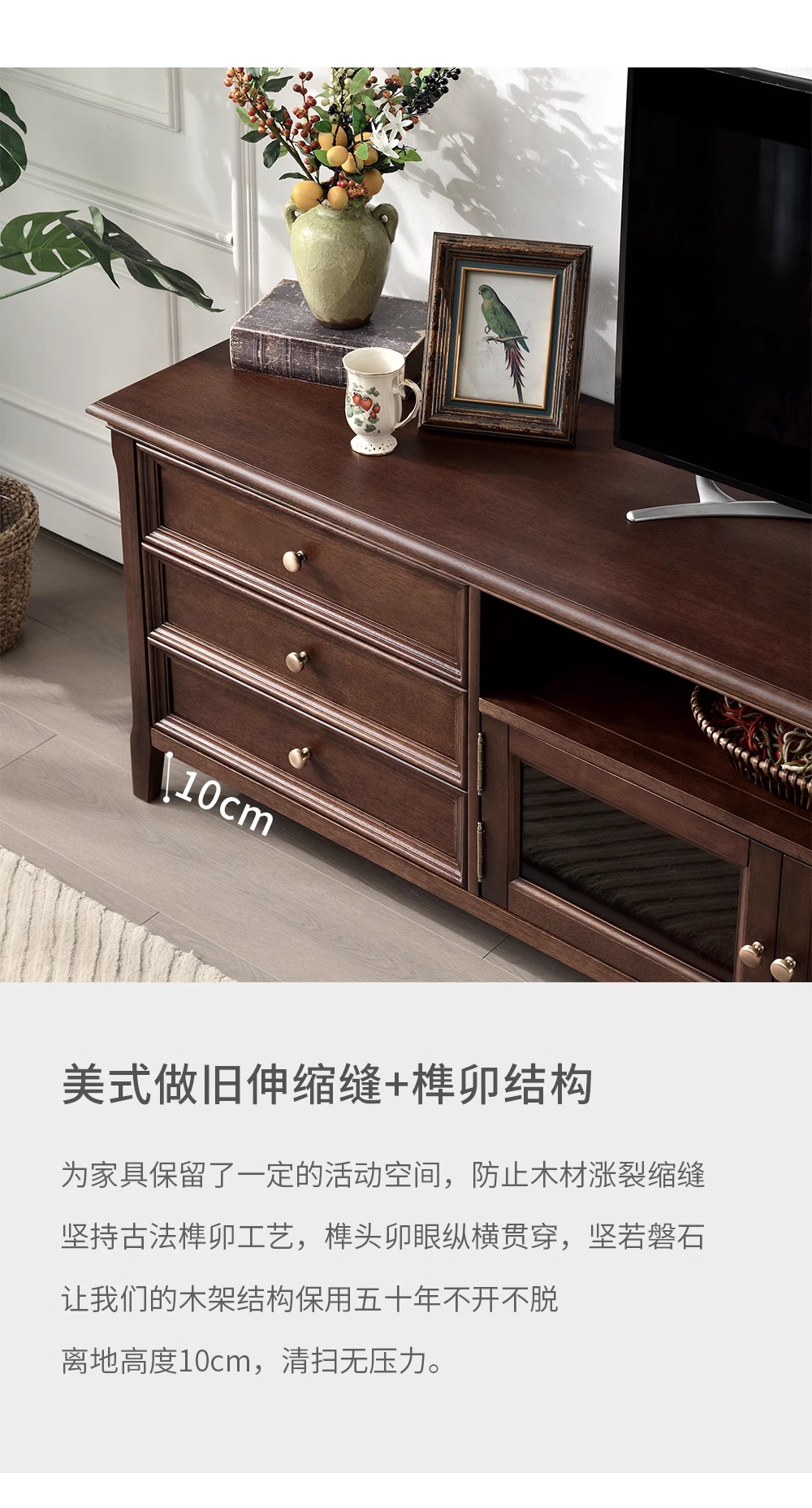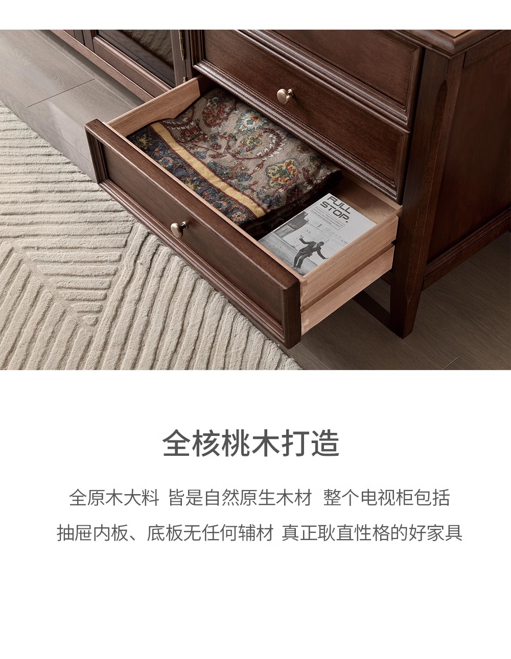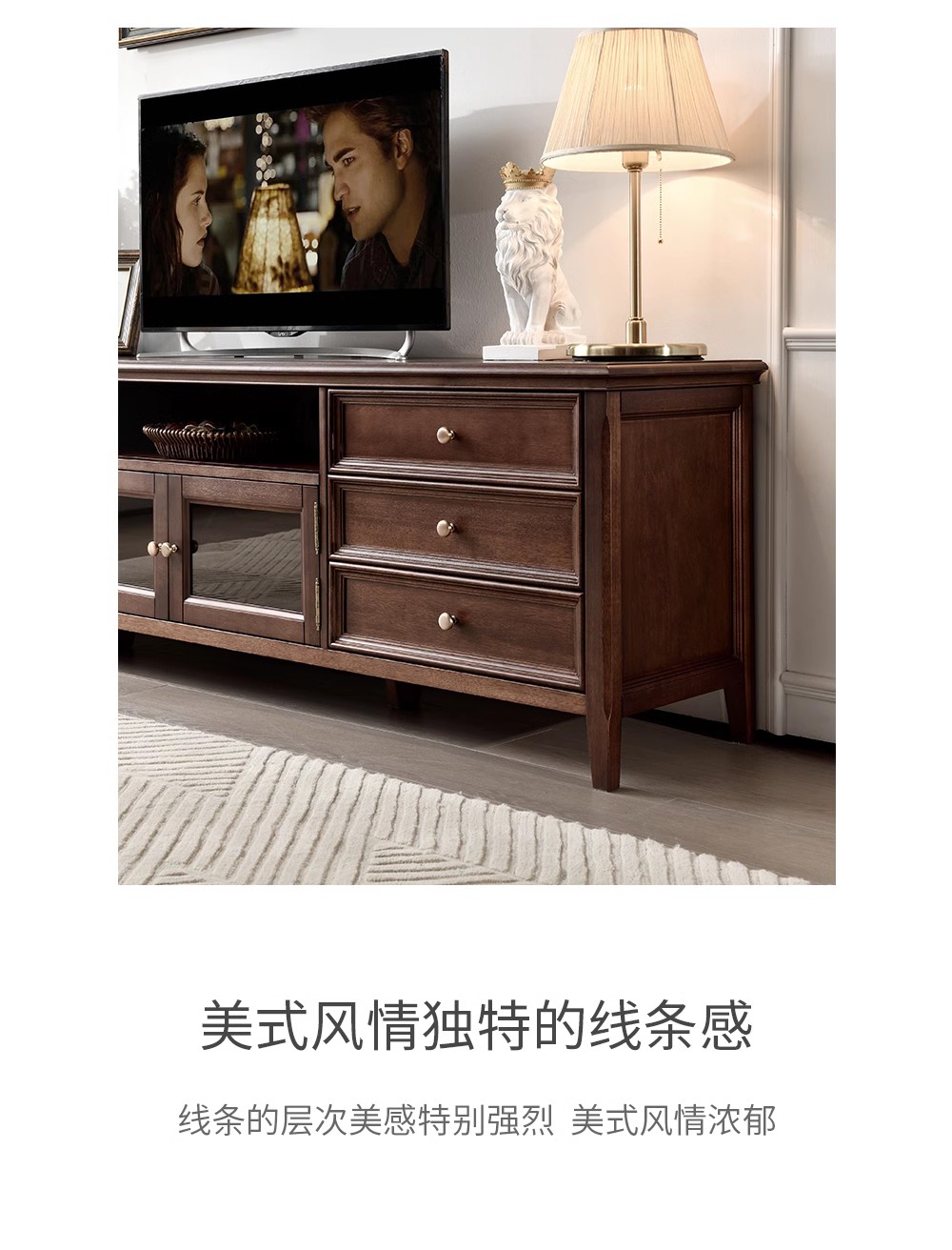 胡桃色 2.2米电视柜 (全实木无辅材)