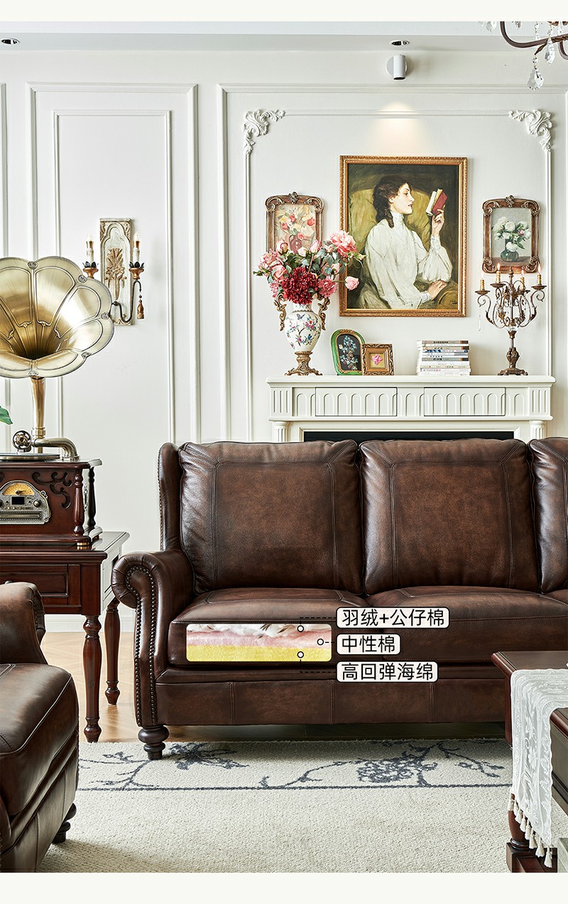 头层油蜡皮 全真皮 双人位