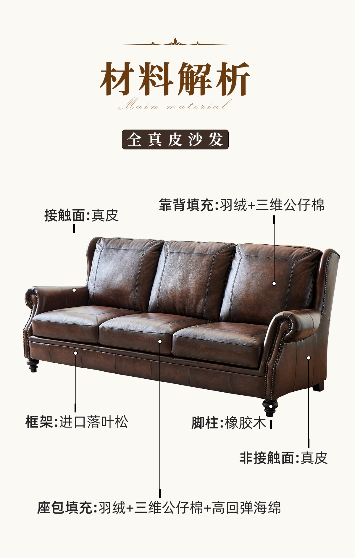 头层油蜡皮 全真皮 三人位