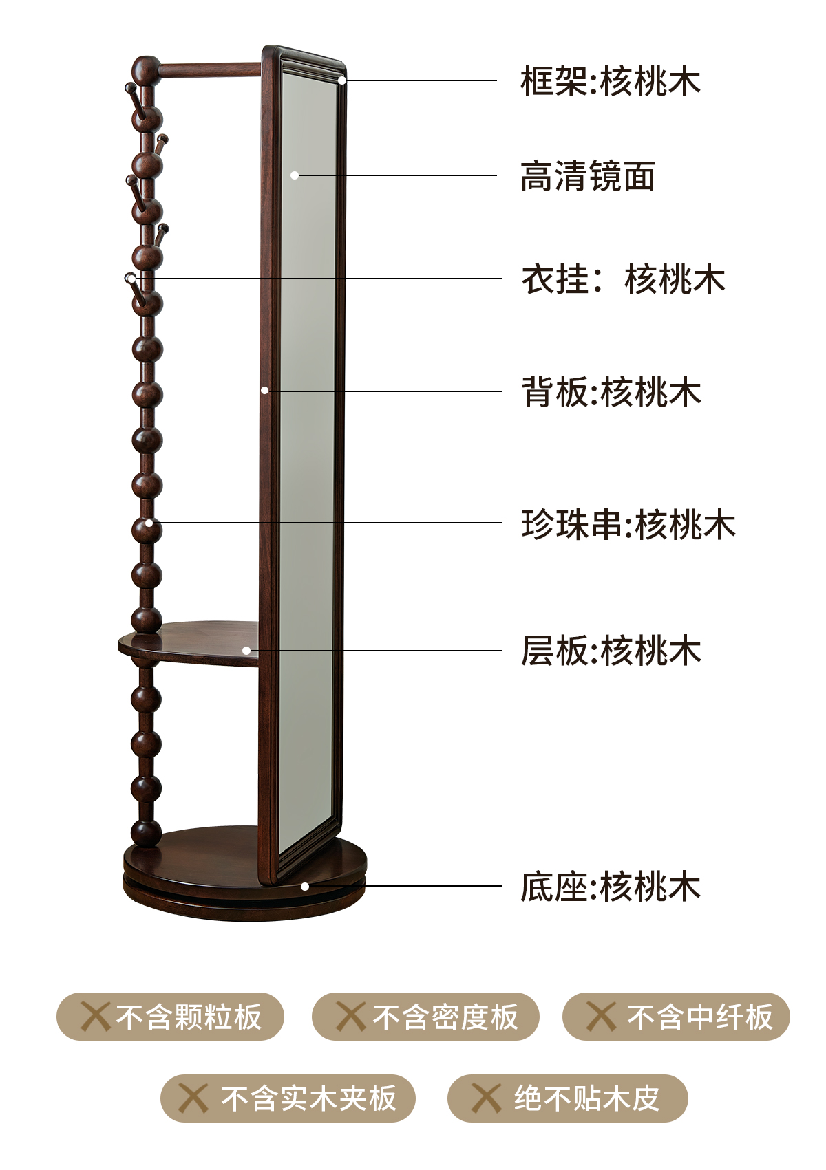 胡桃色实木穿衣镜 12月中旬发货