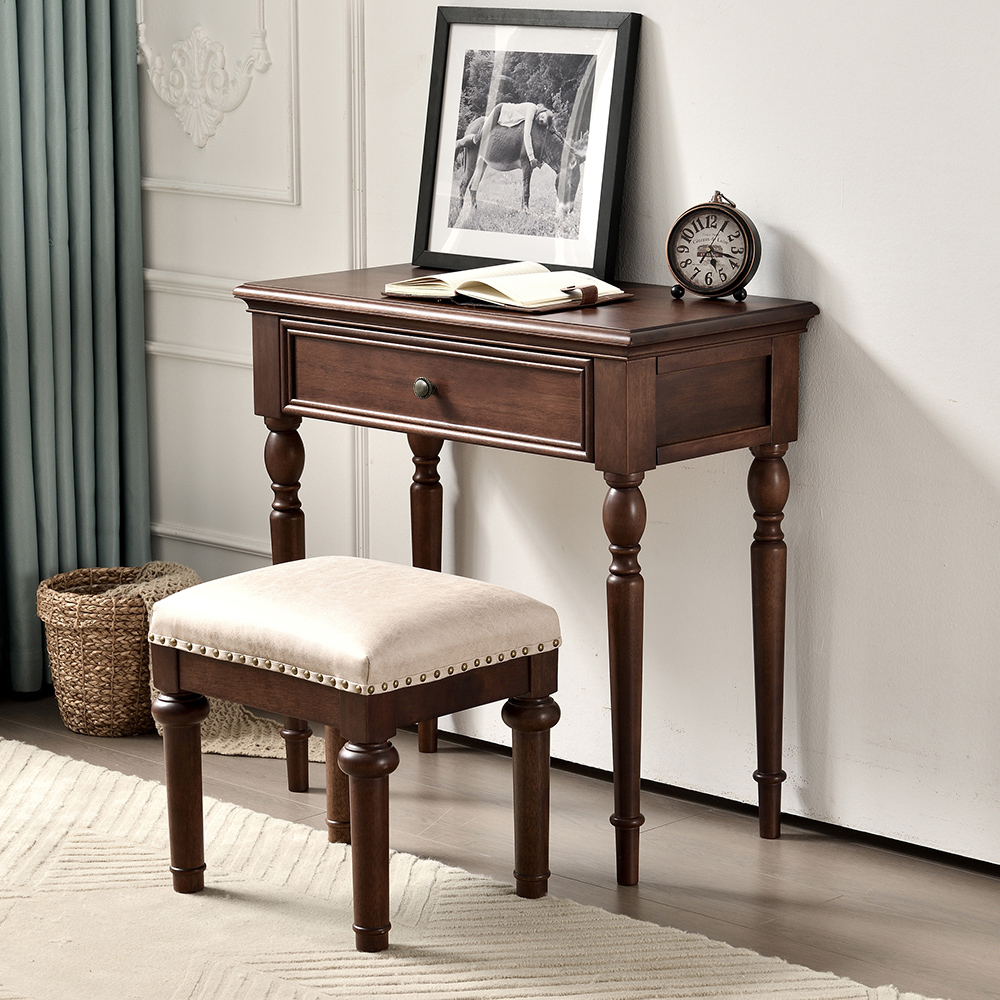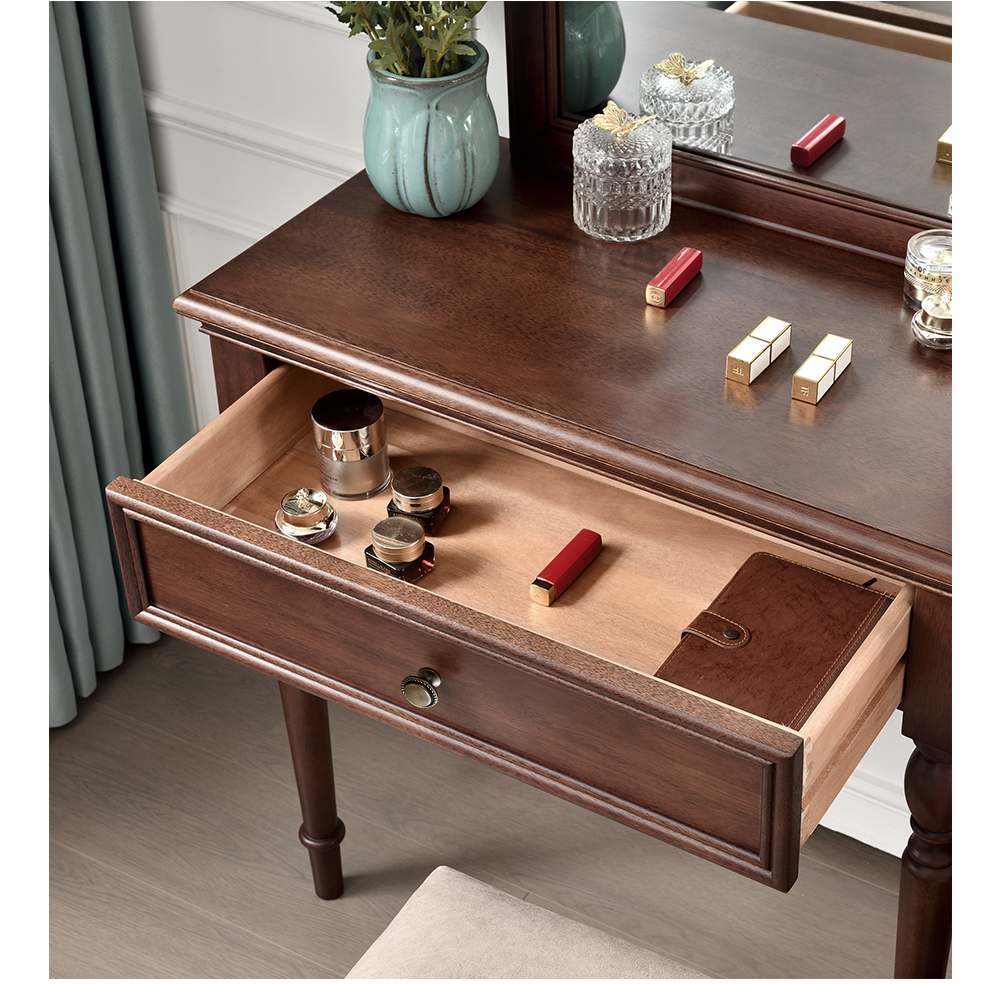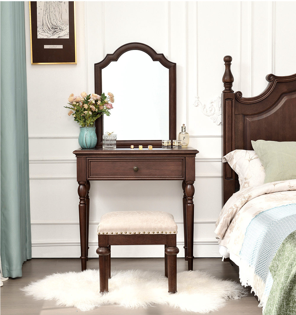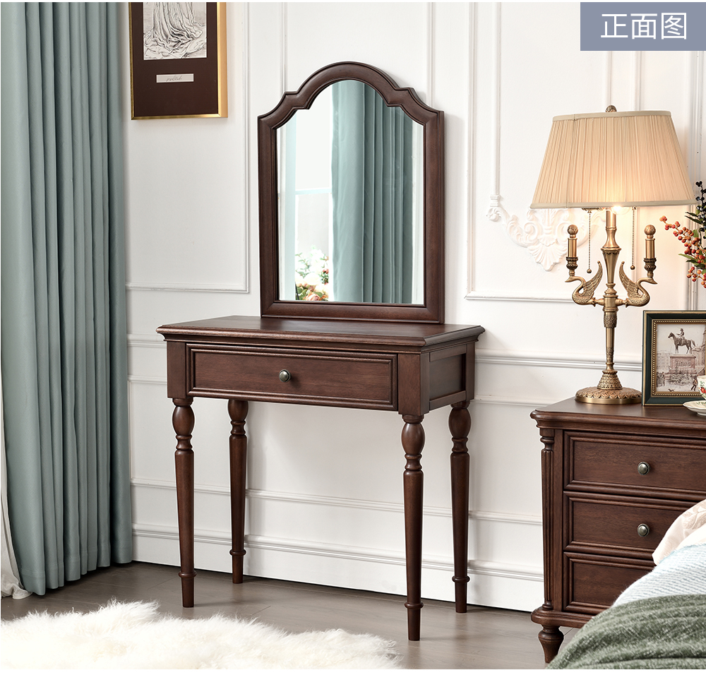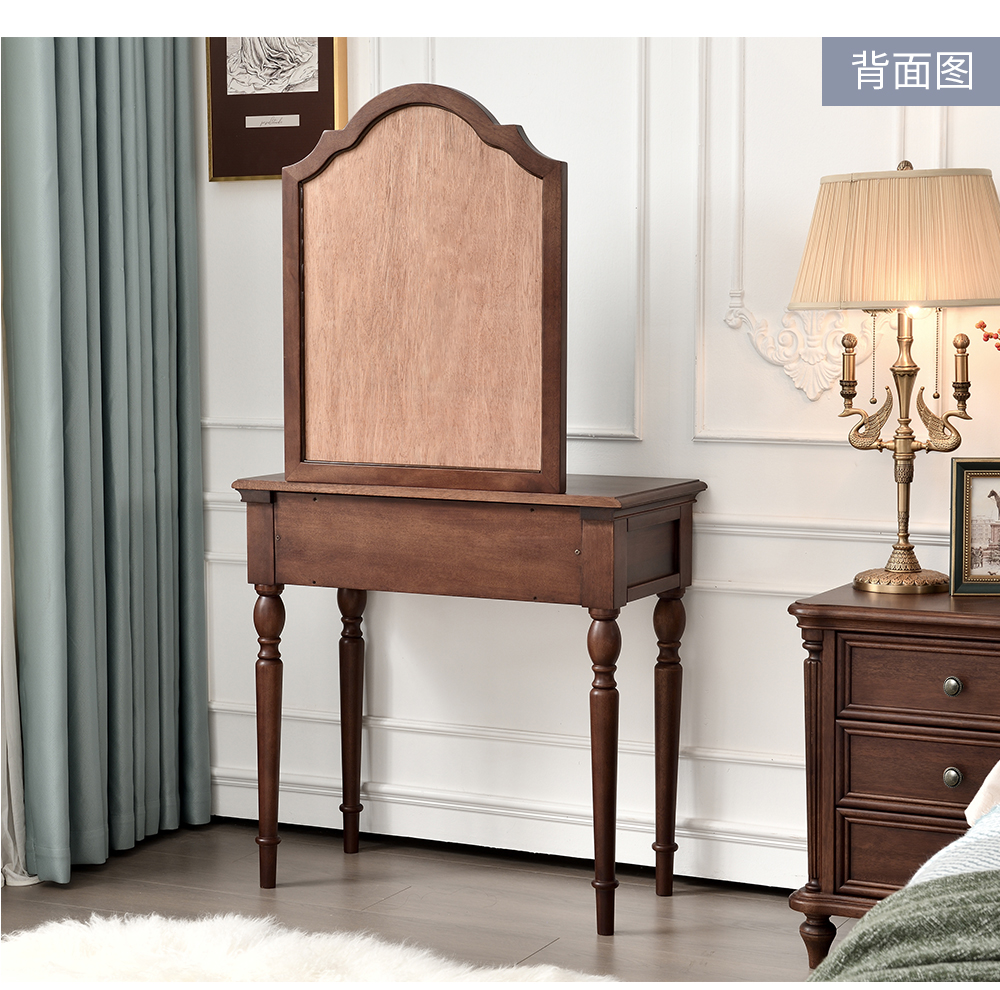 胡桃色 梳妆台带镜子+梳妆凳