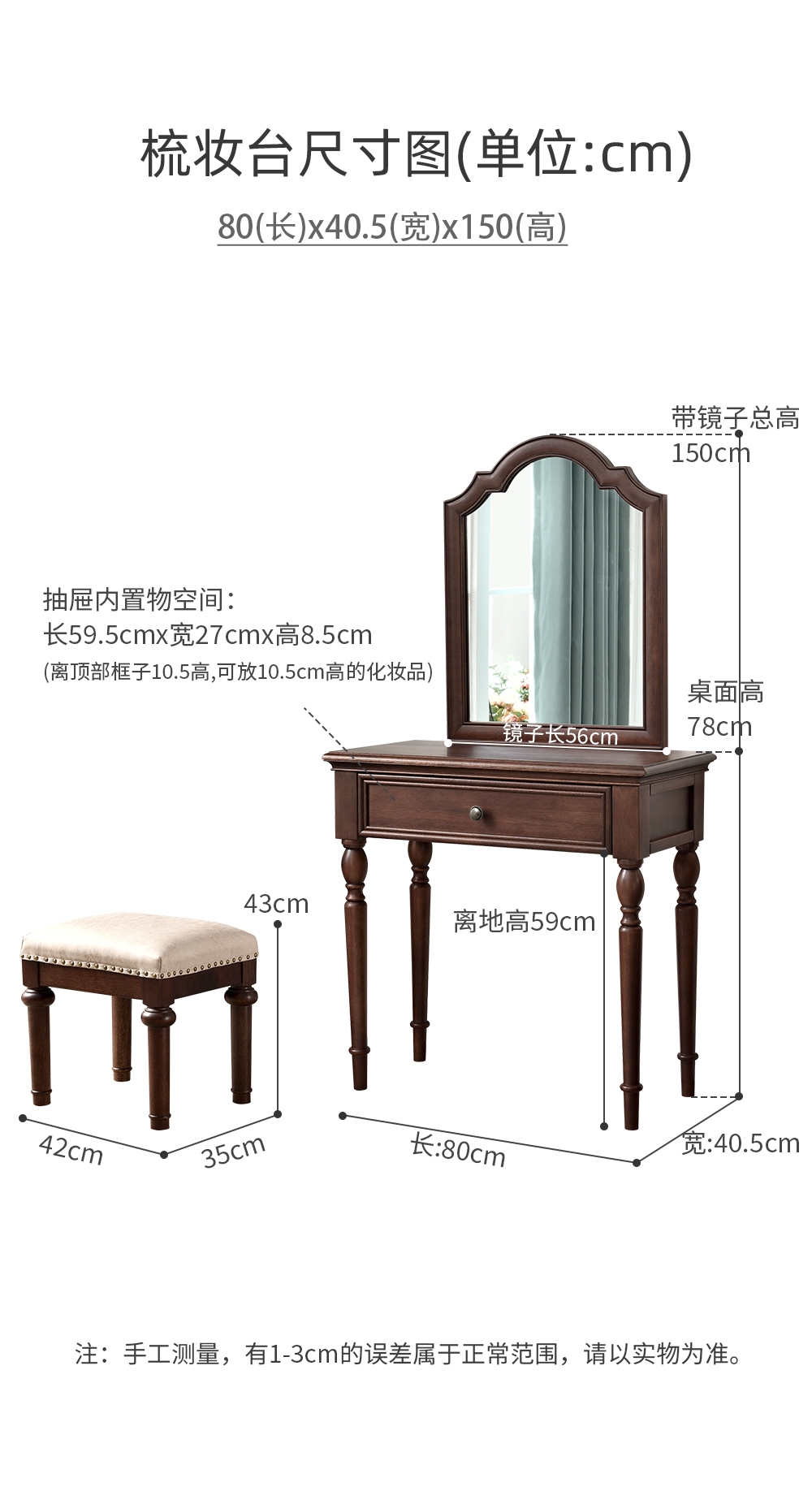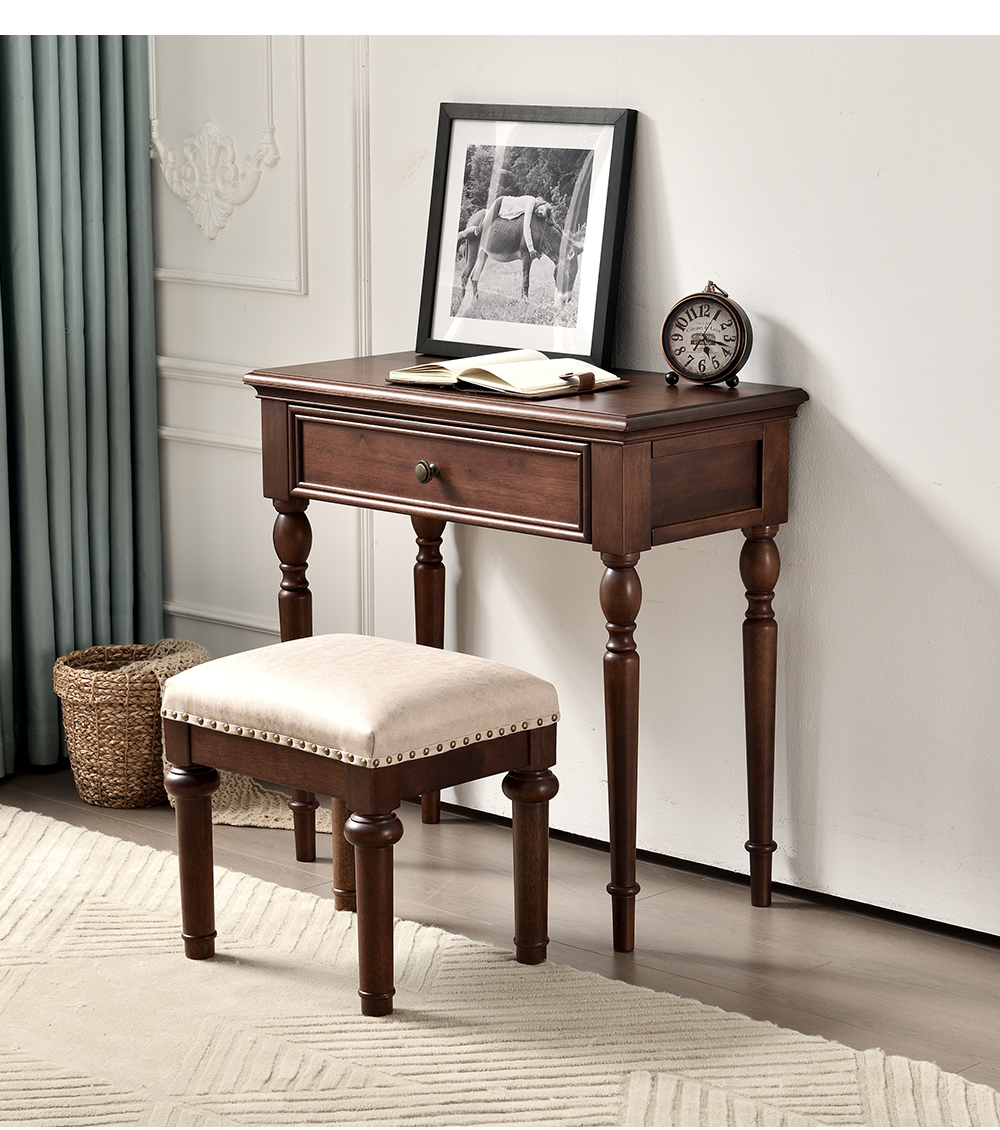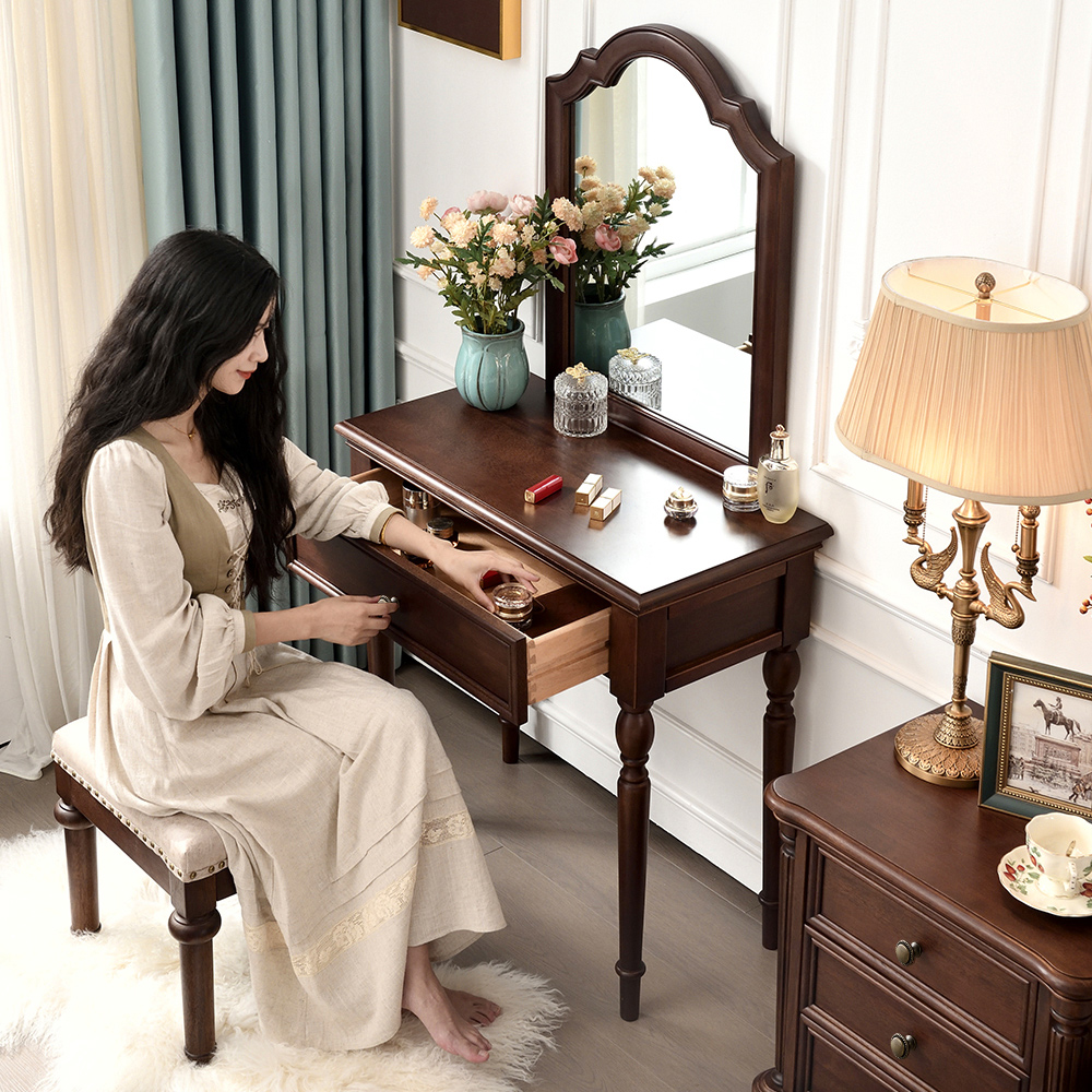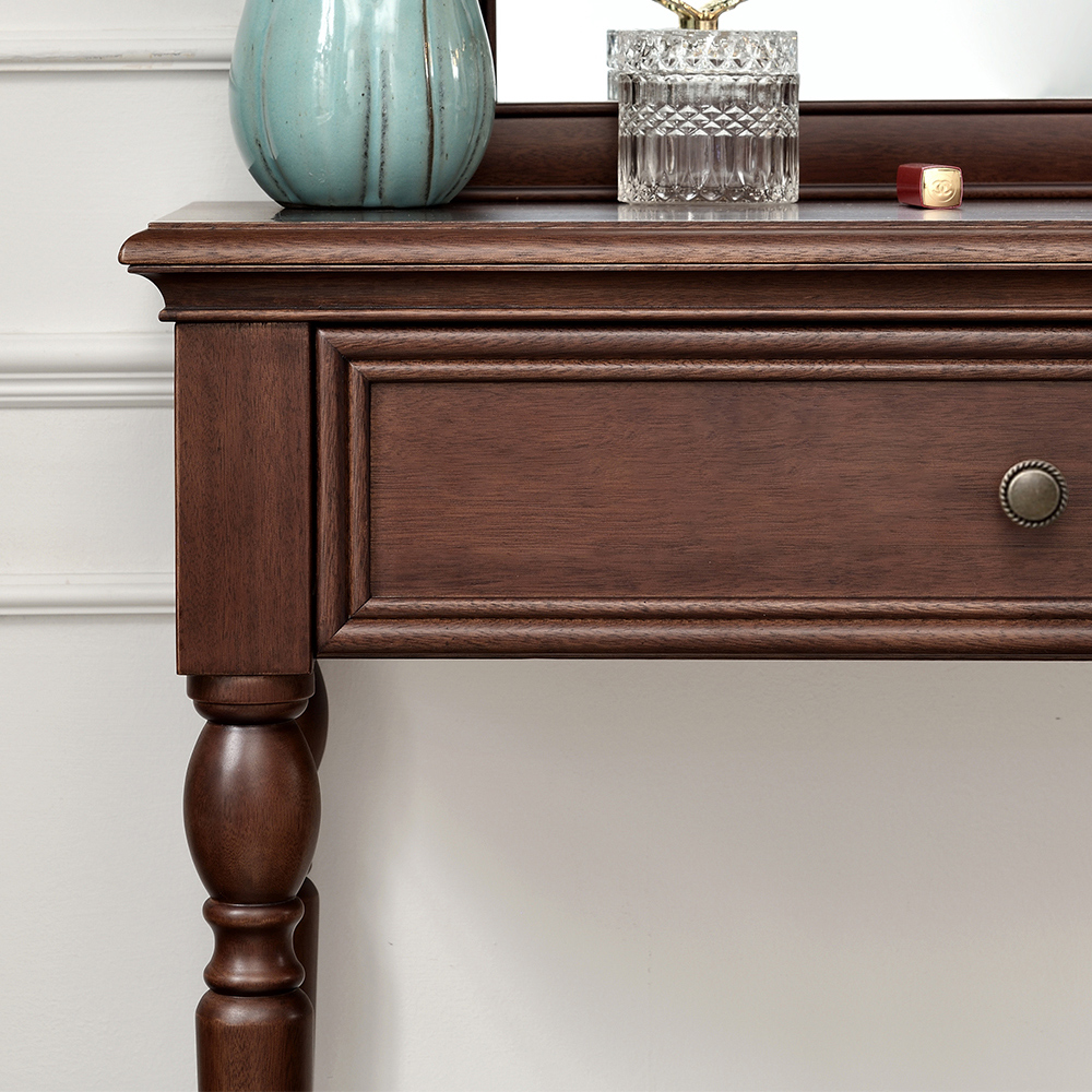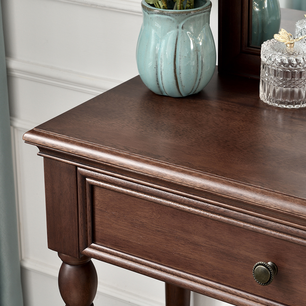 胡桃色 梳妆台带镜子+梳妆凳