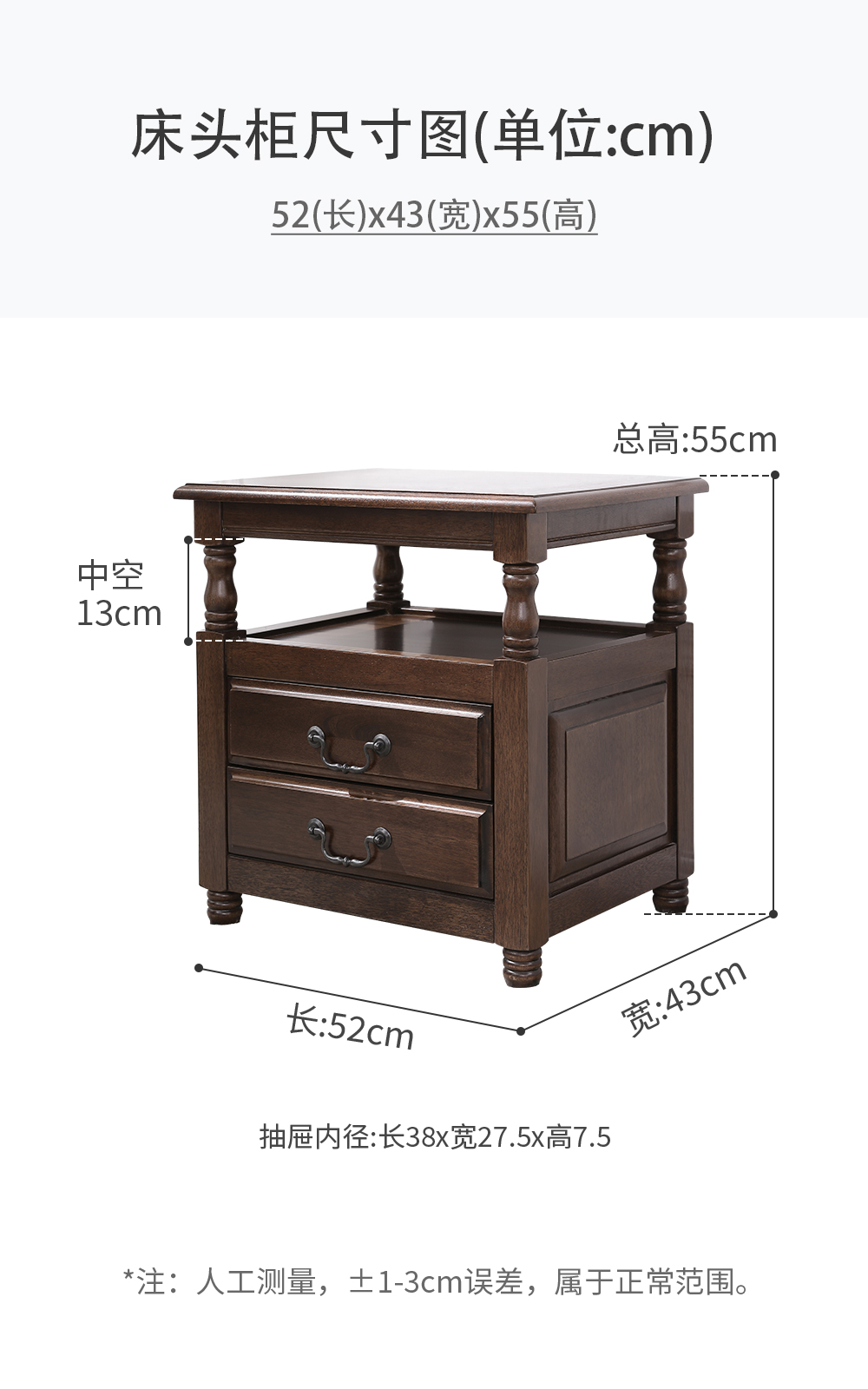 胡桃色纯实木床头柜一个