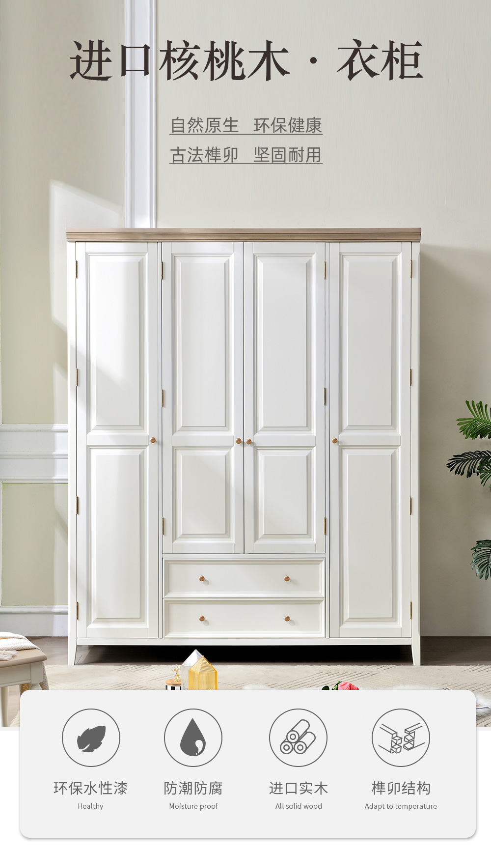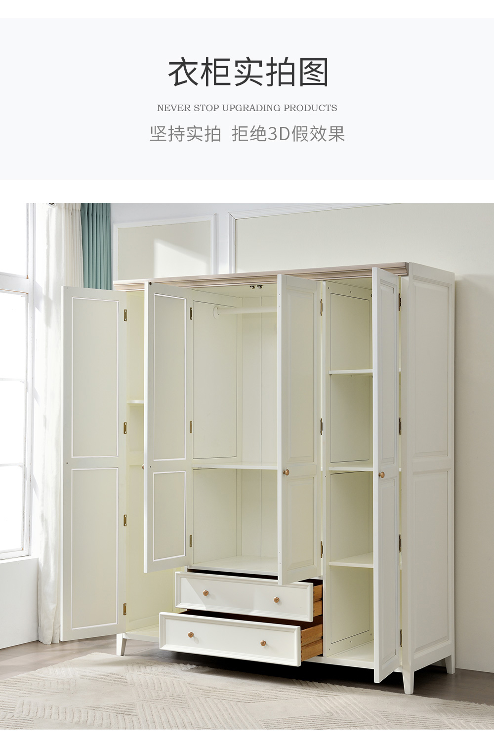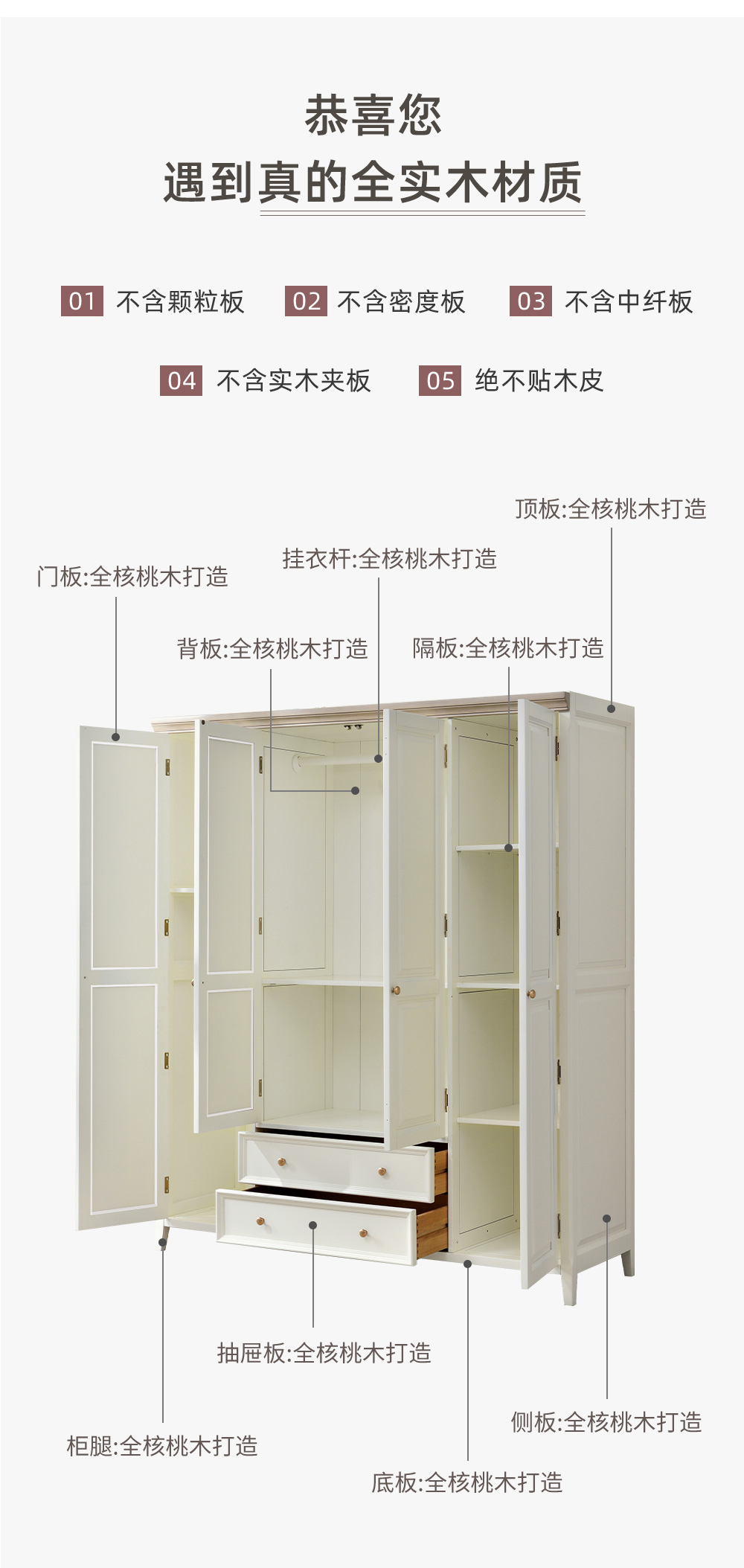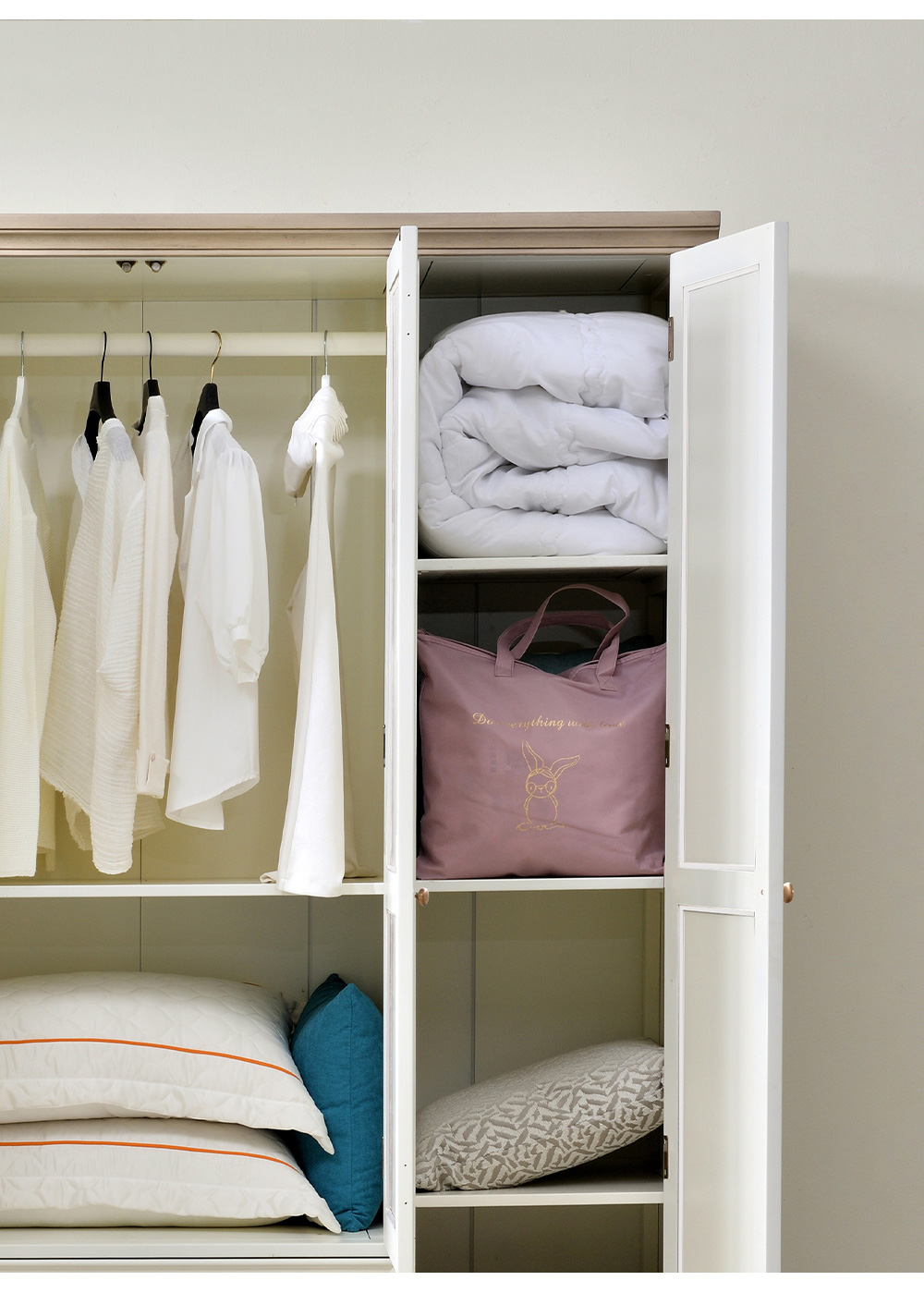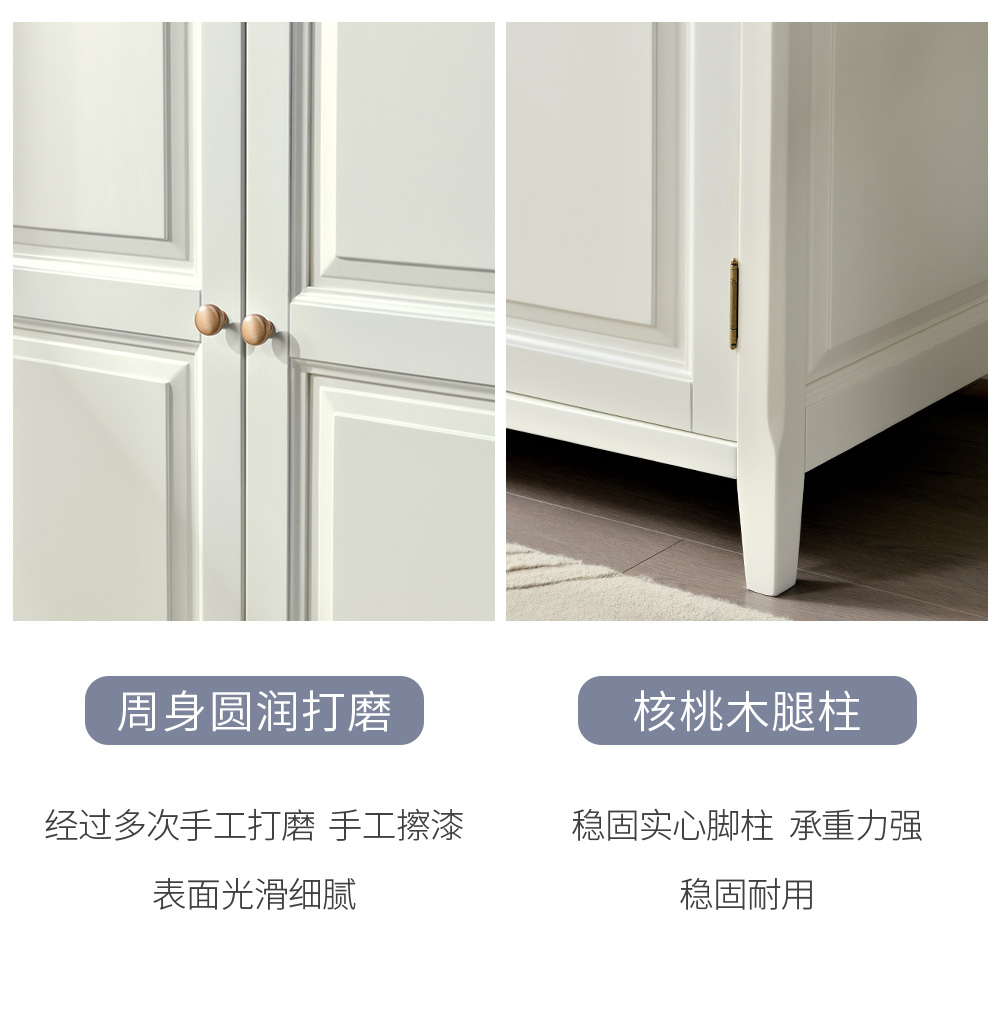 可可蛋奶白 衣柜 全实木无辅材
