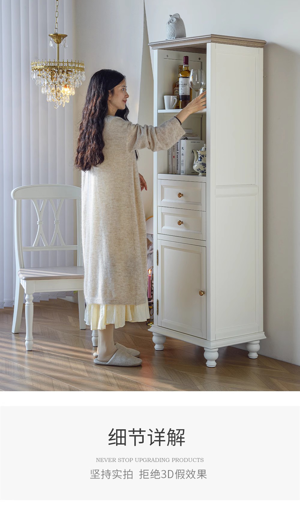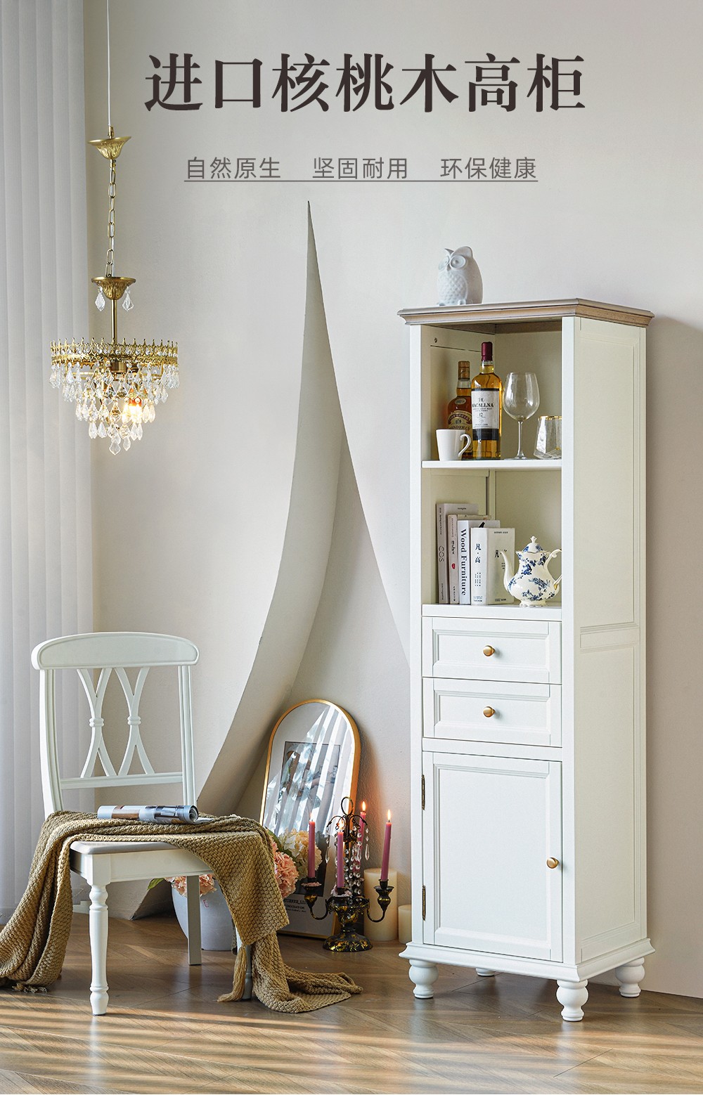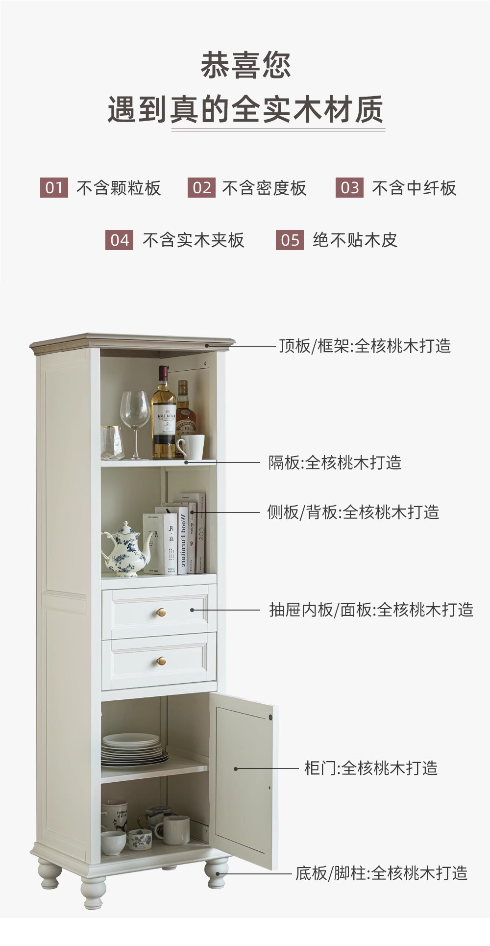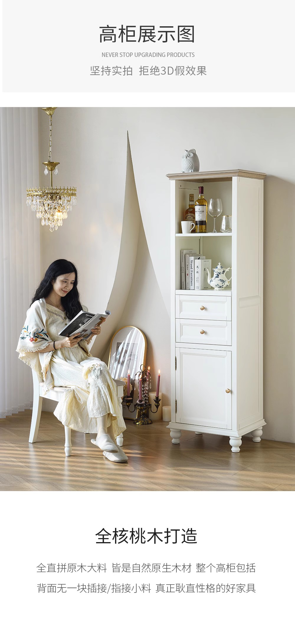 全白色 全实木高柜 帽檐蛋奶白色