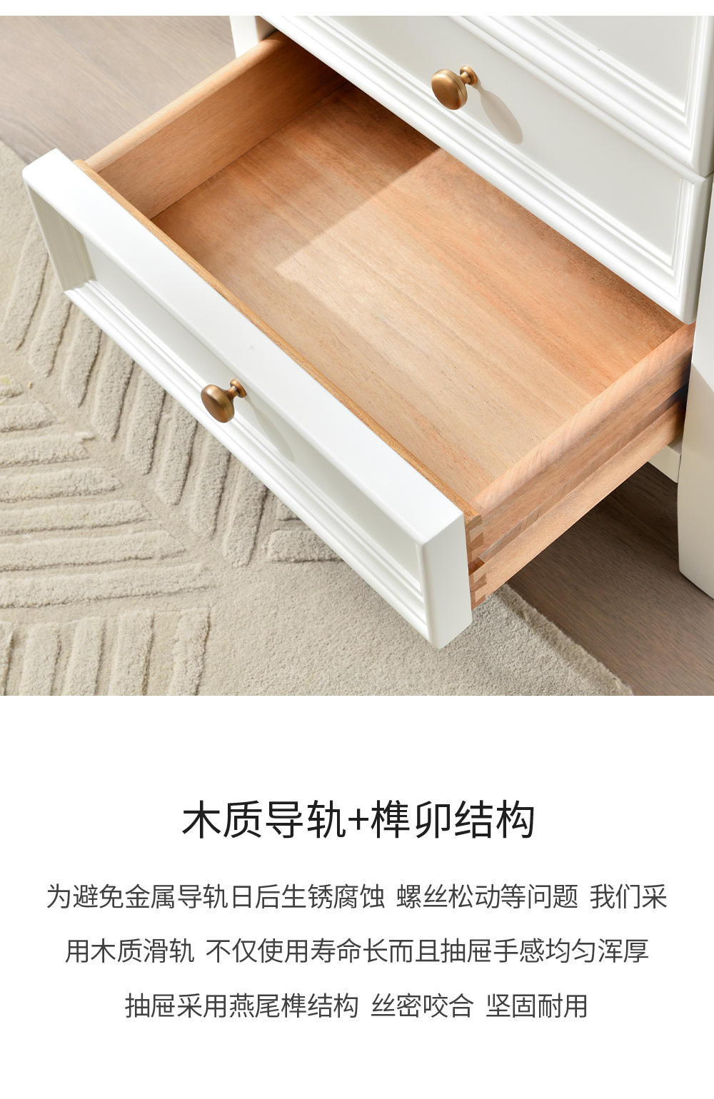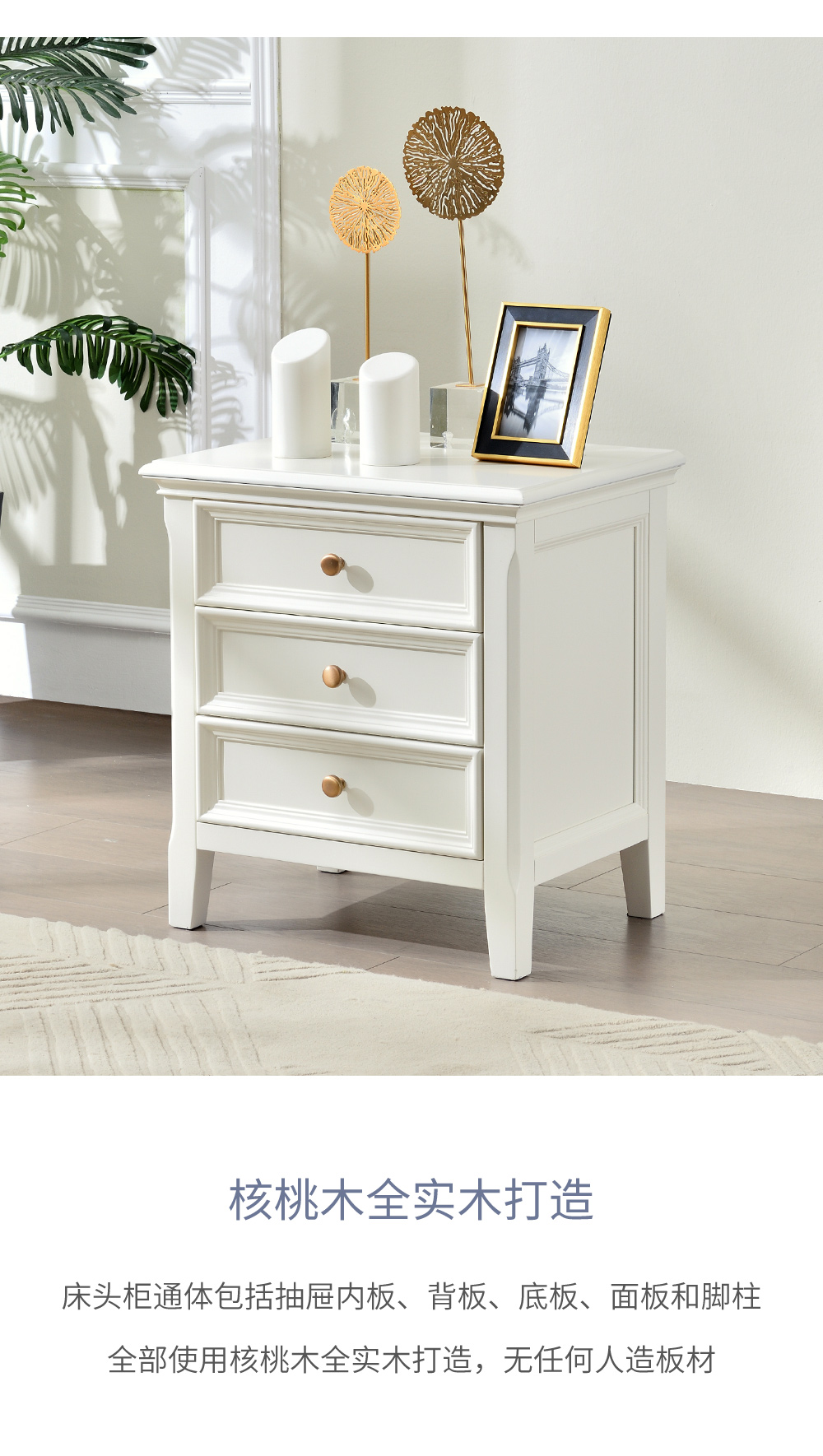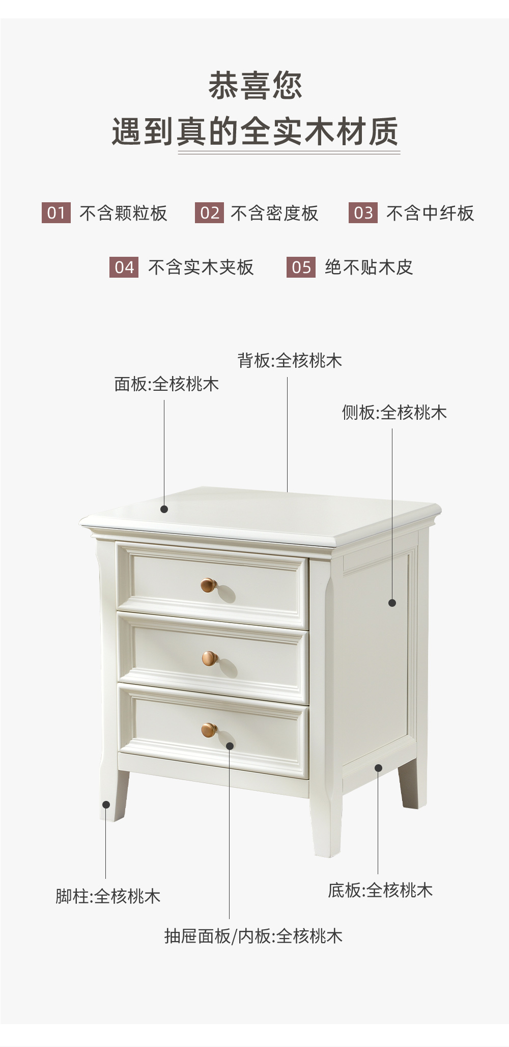 可可蛋奶白 床头柜 全实木无辅材