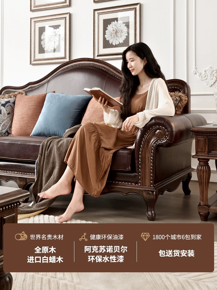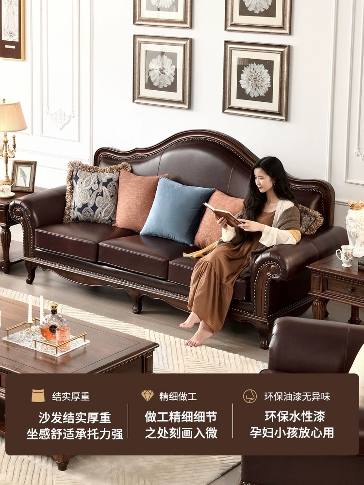 【全实木真皮沙发】四人位