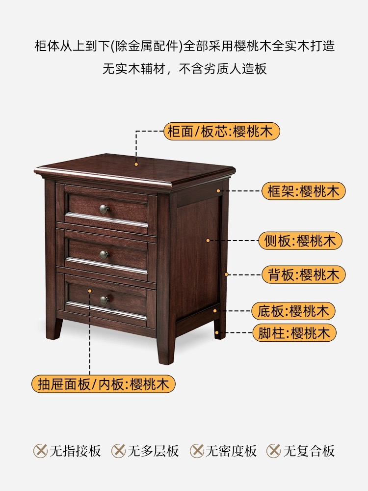 全实木樱桃木床头柜