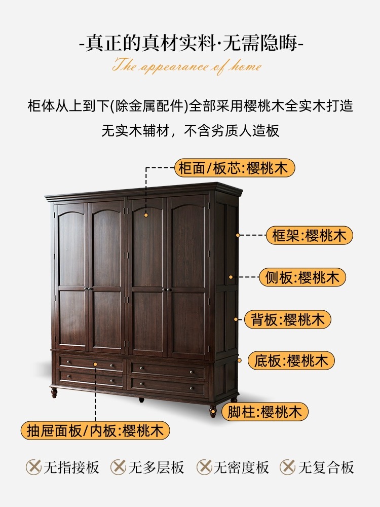 全实木樱桃木四门衣柜