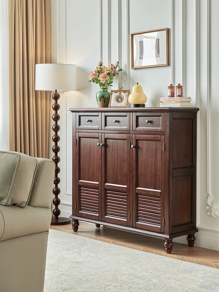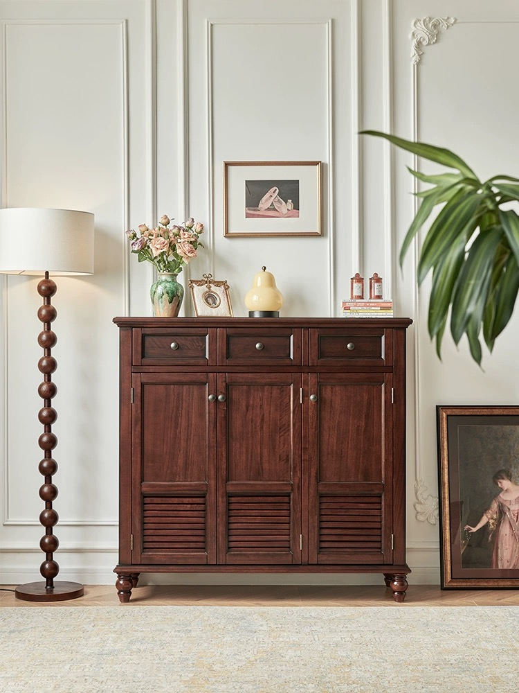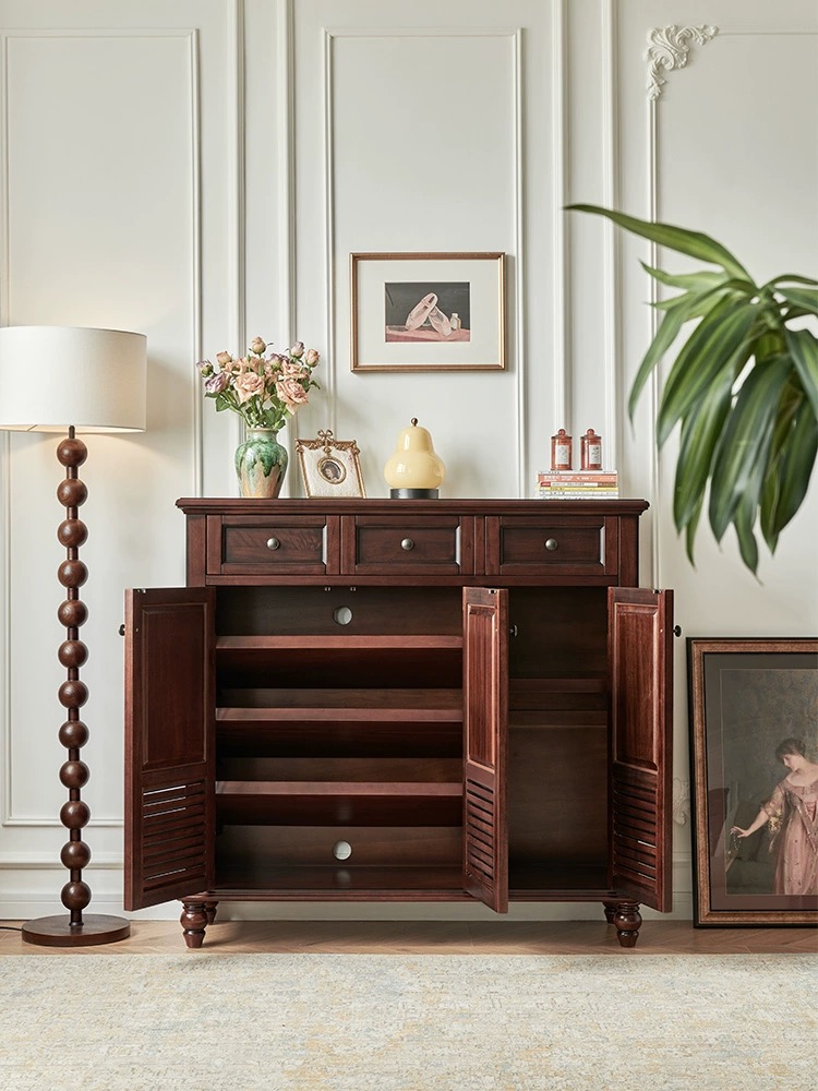 120*35*115樱桃木全实木三门鞋柜