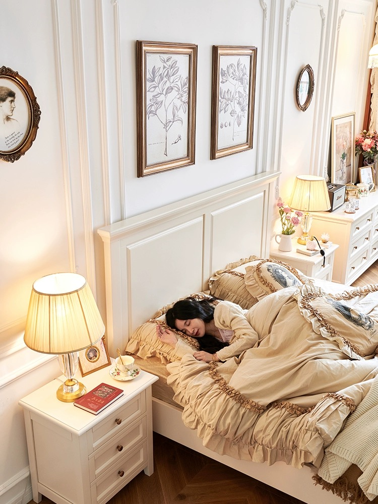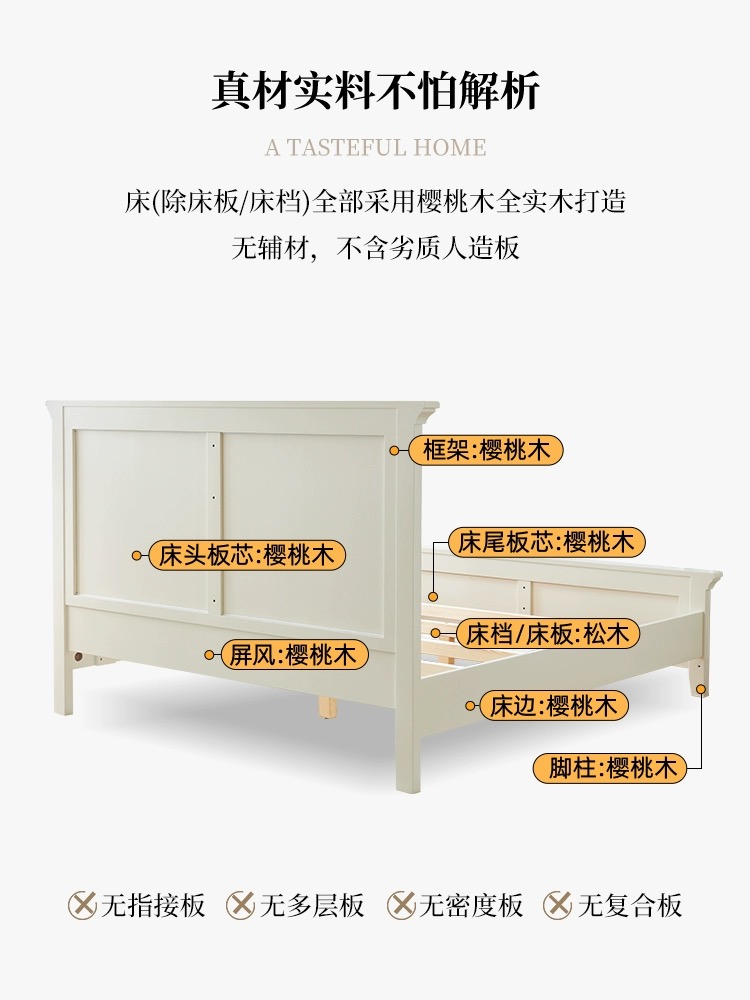 1.8米 蛋奶白樱桃木全实木床(不含床垫床头柜)