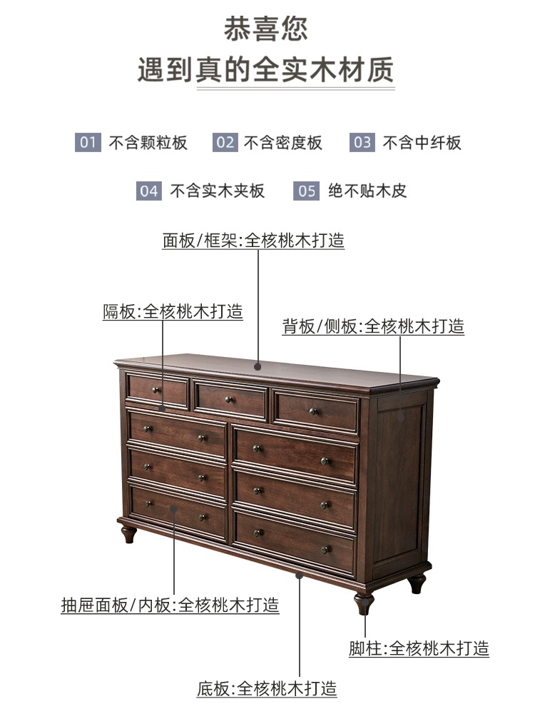 1.5米 胡桃色九斗柜 全实木无贴皮
