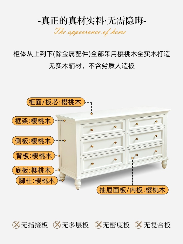 全原木白色六斗柜