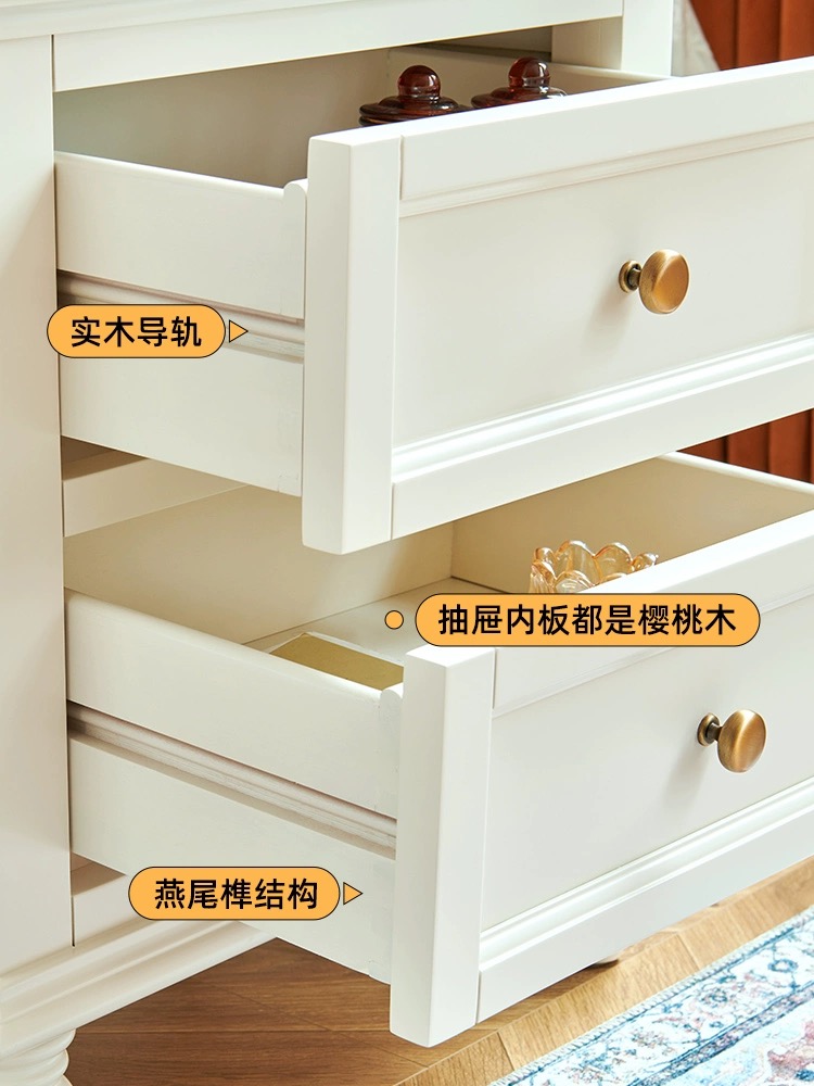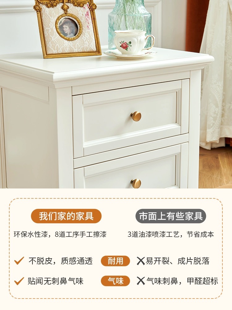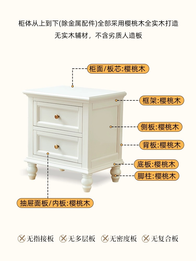 蛋奶白色全实木床头柜