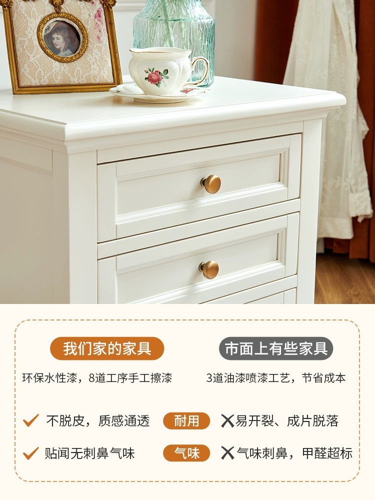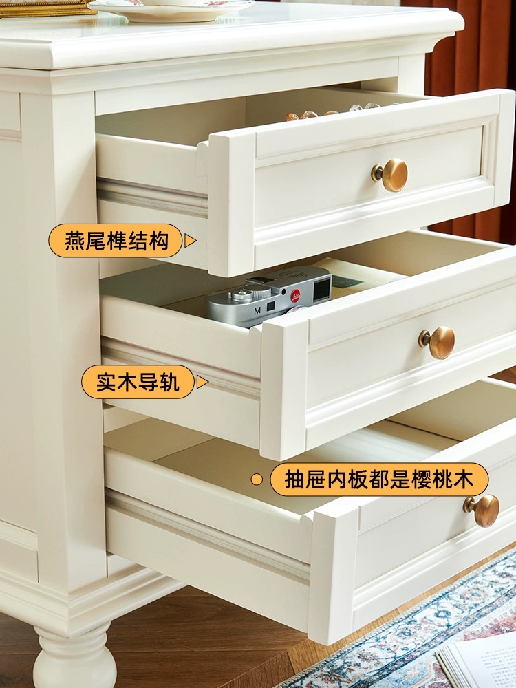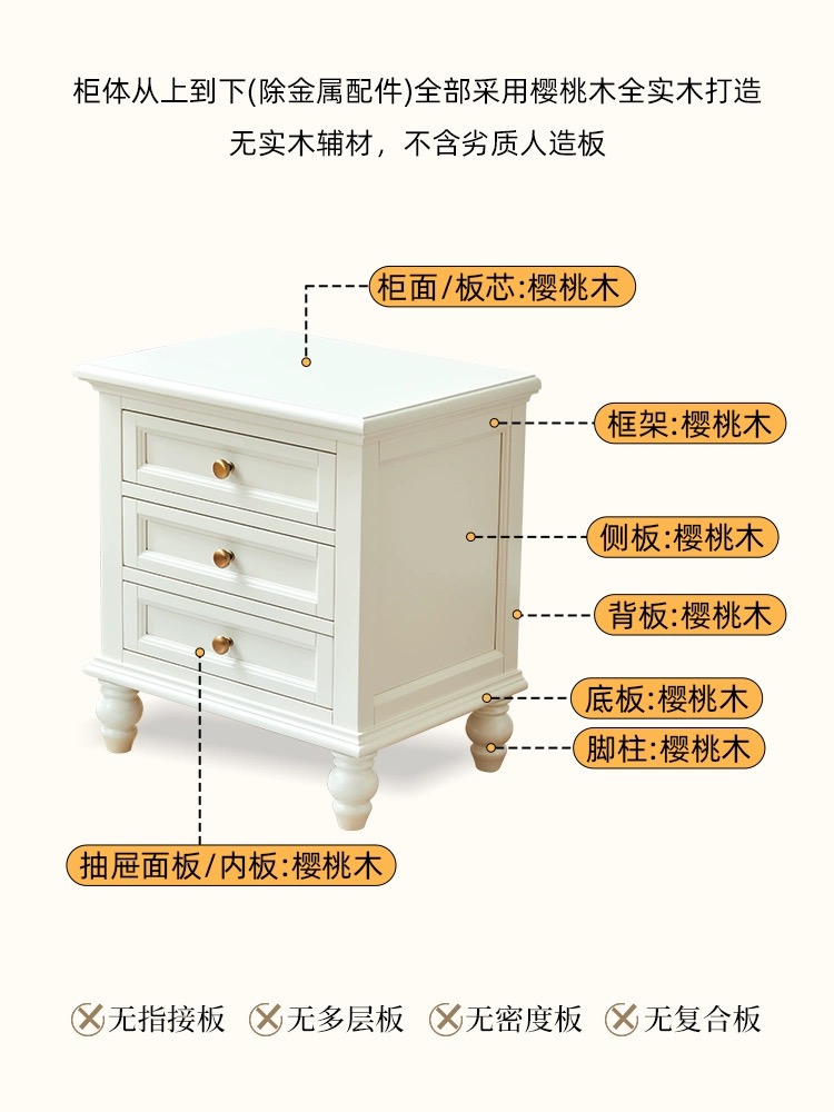 蛋奶白色全实木床头柜