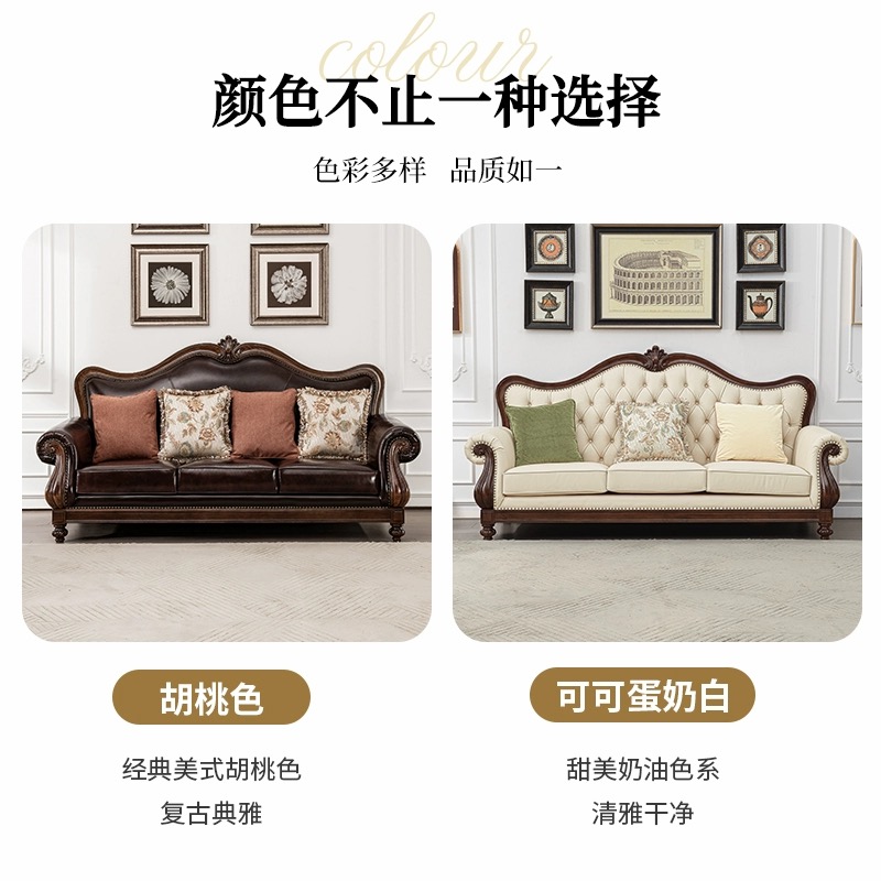 全实木真皮沙发三人位