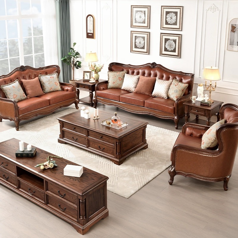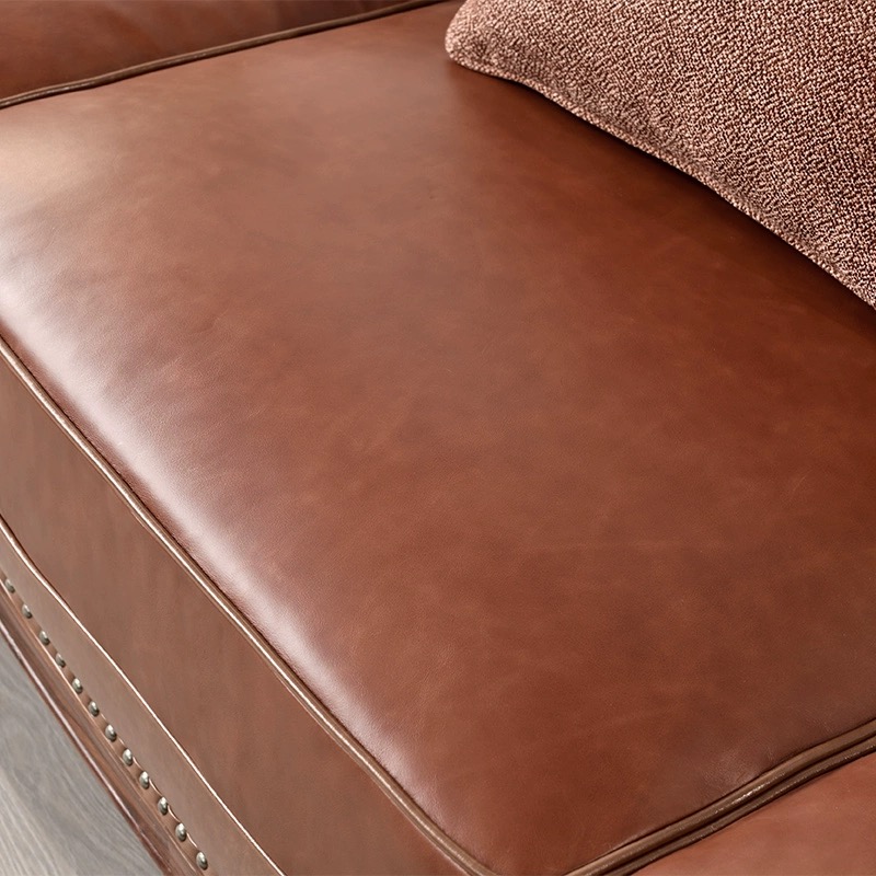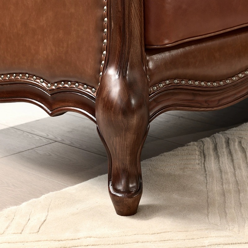 全实木真皮三人位