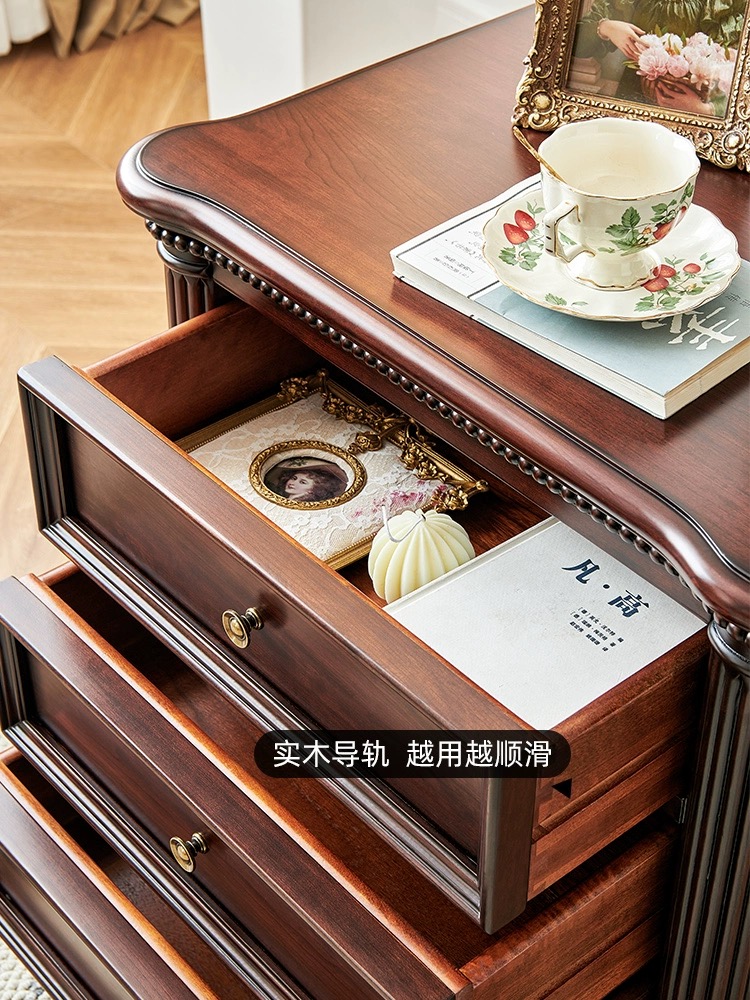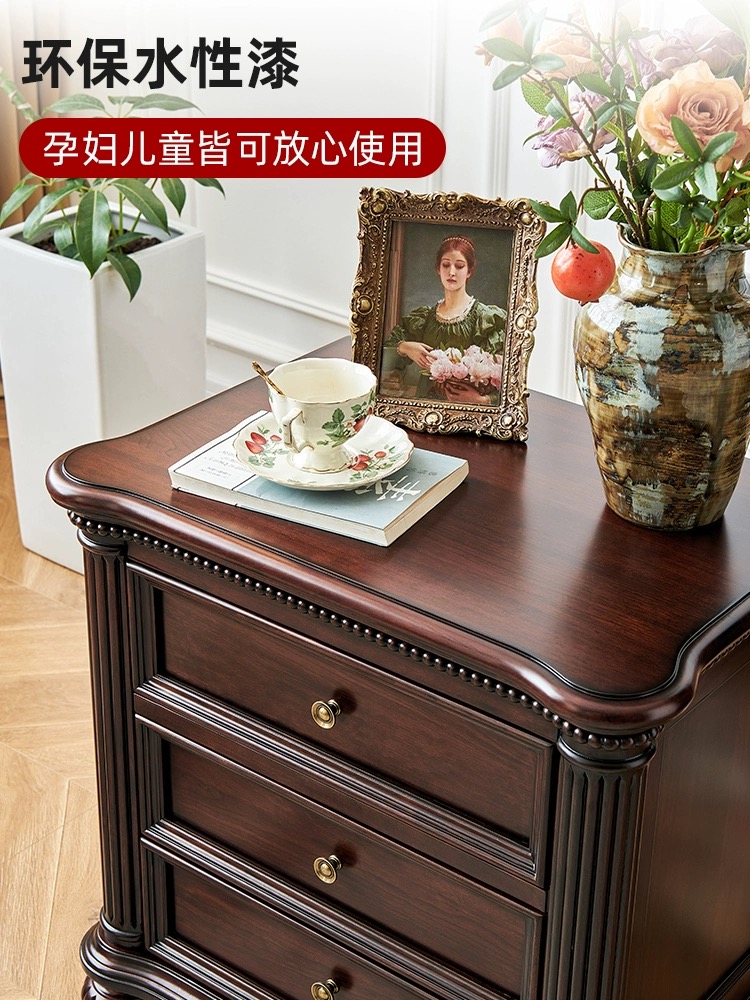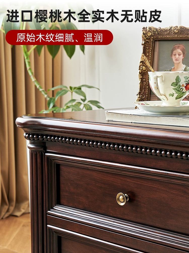 全实木樱桃木三抽床头柜