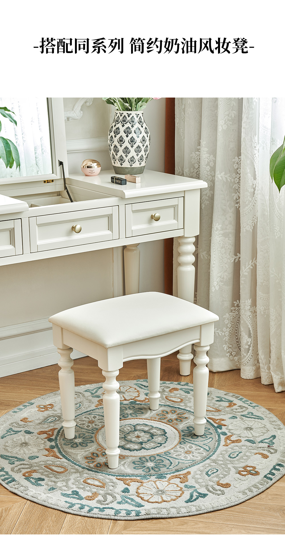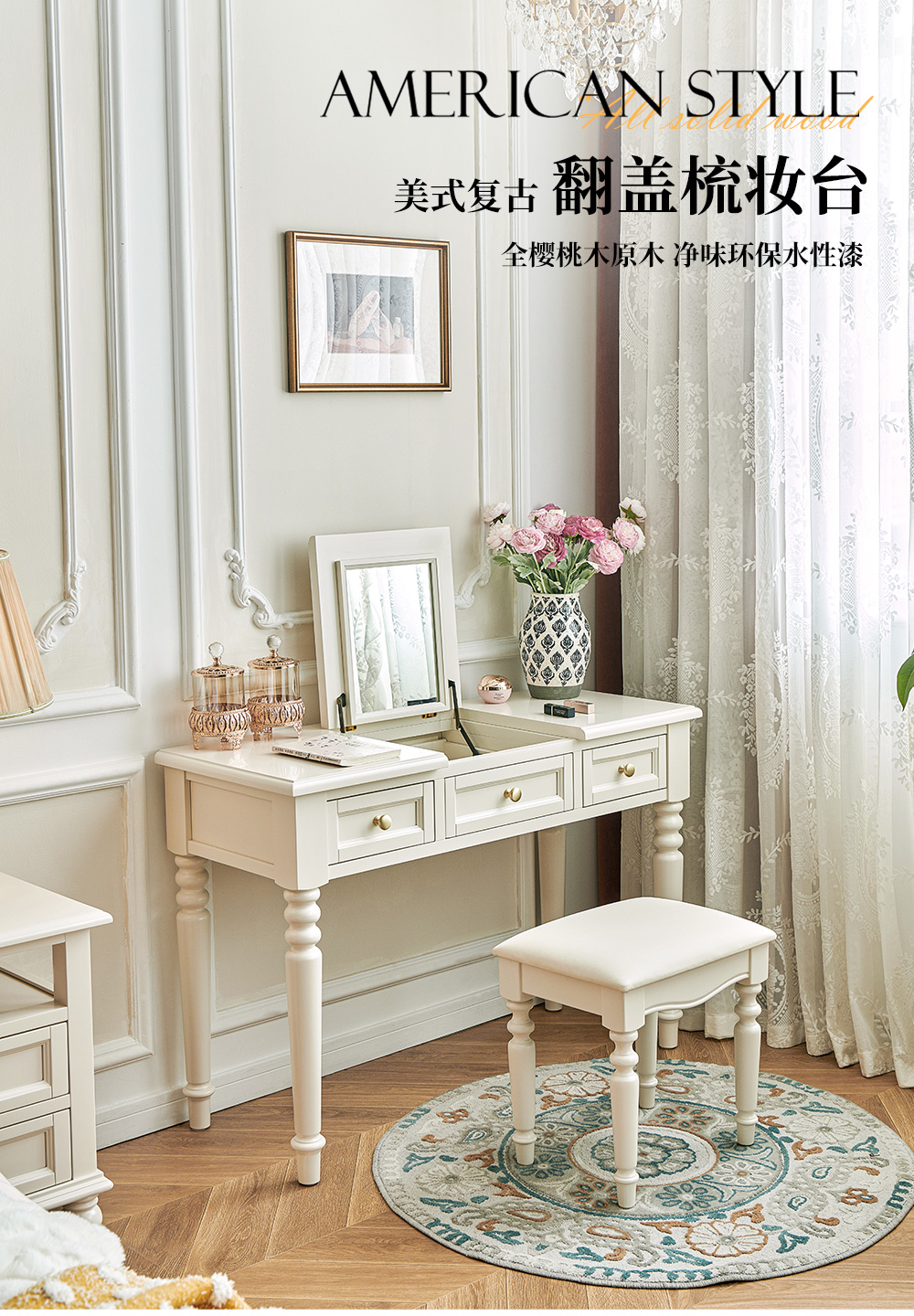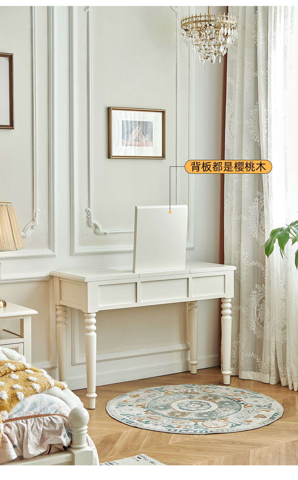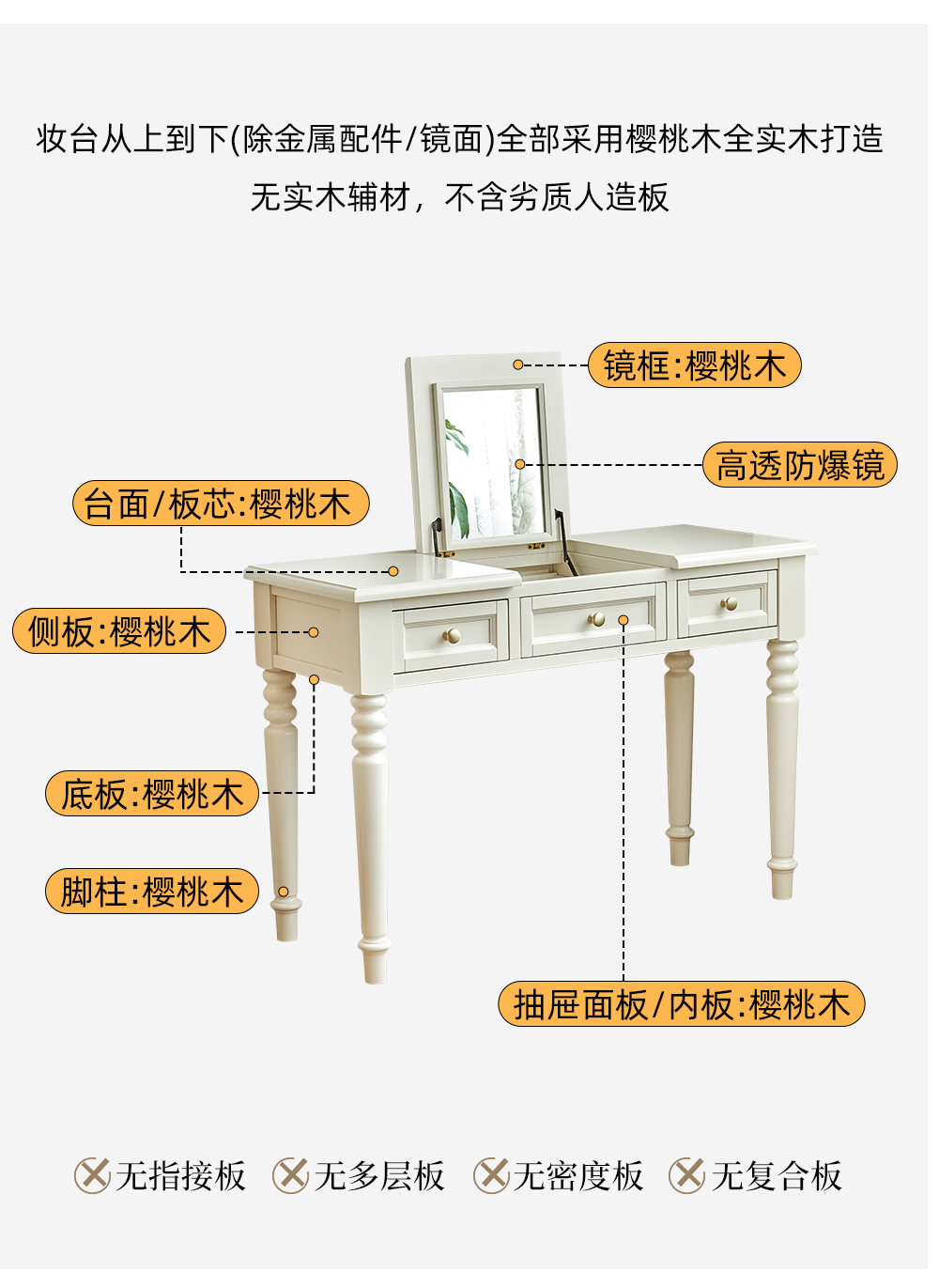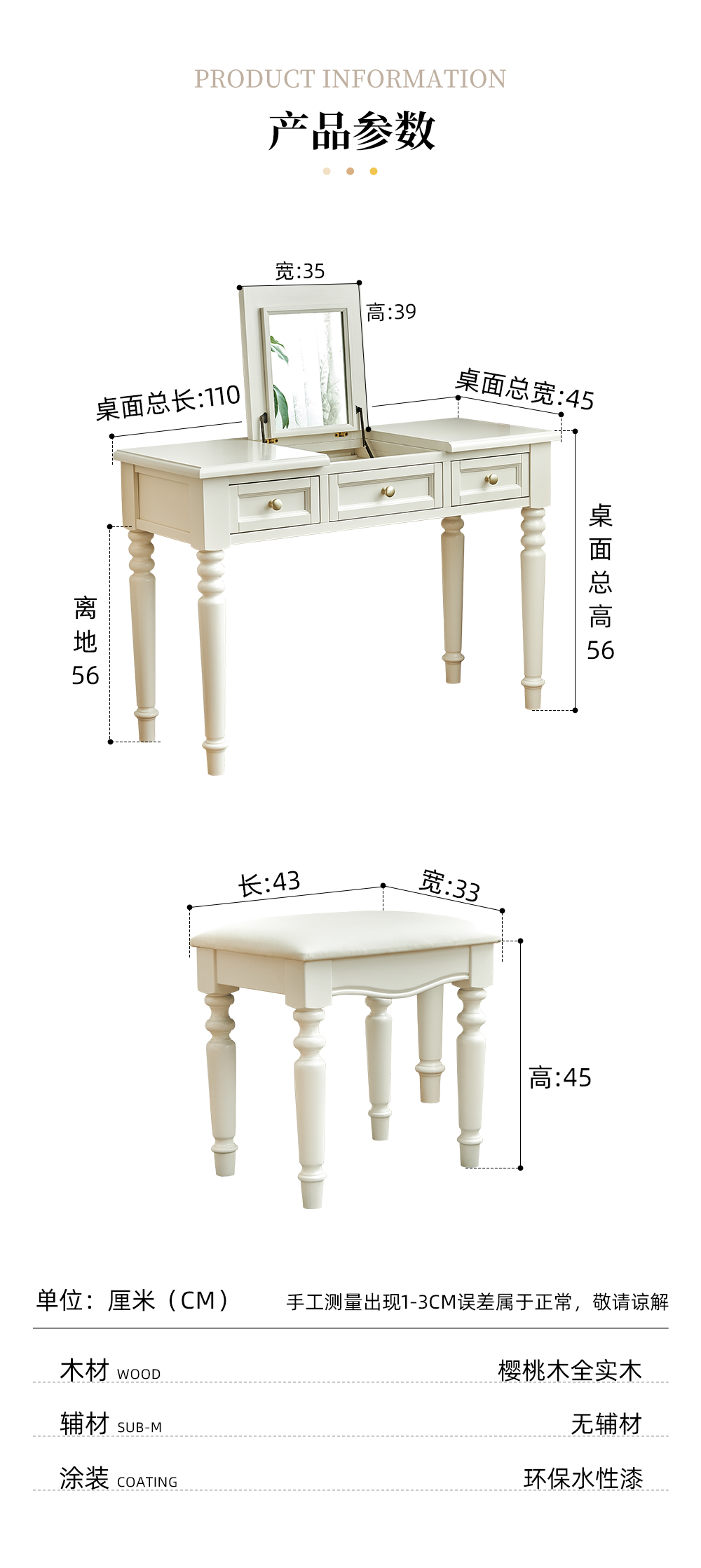 樱桃木翻盖梳妆台 +真皮妆凳