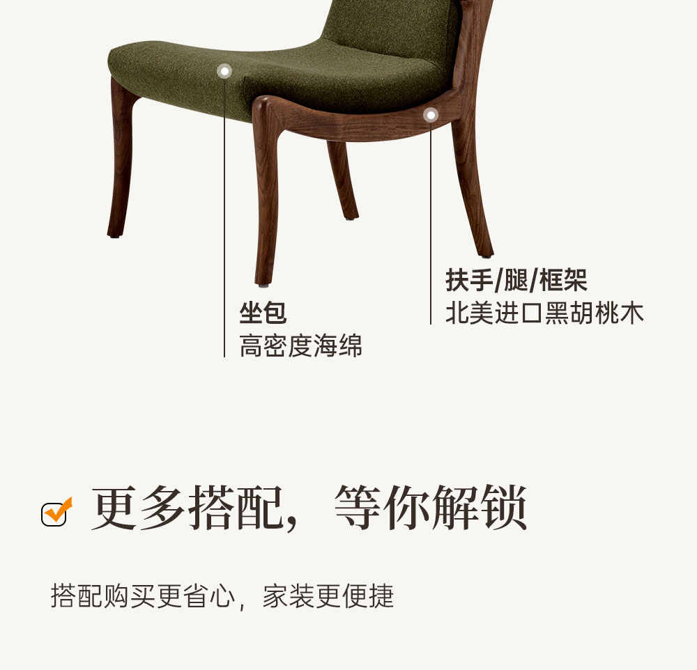 北美黑胡桃休闲椅
