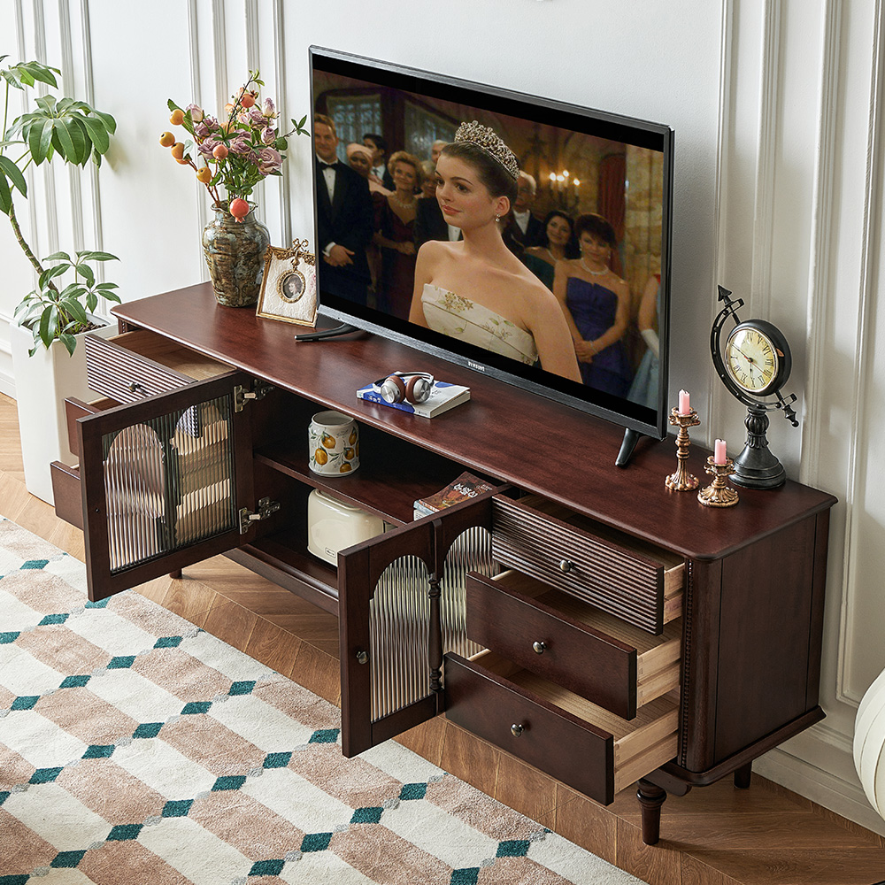 1.8米电视柜 胡桃色 纯原木无贴皮