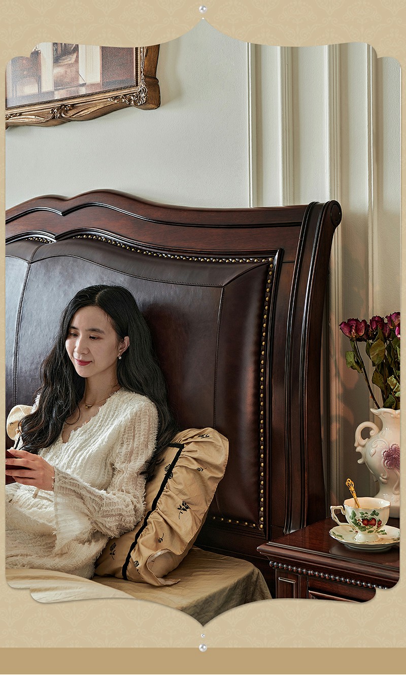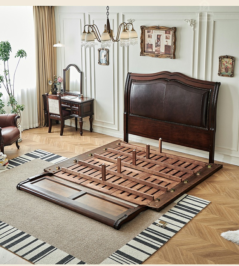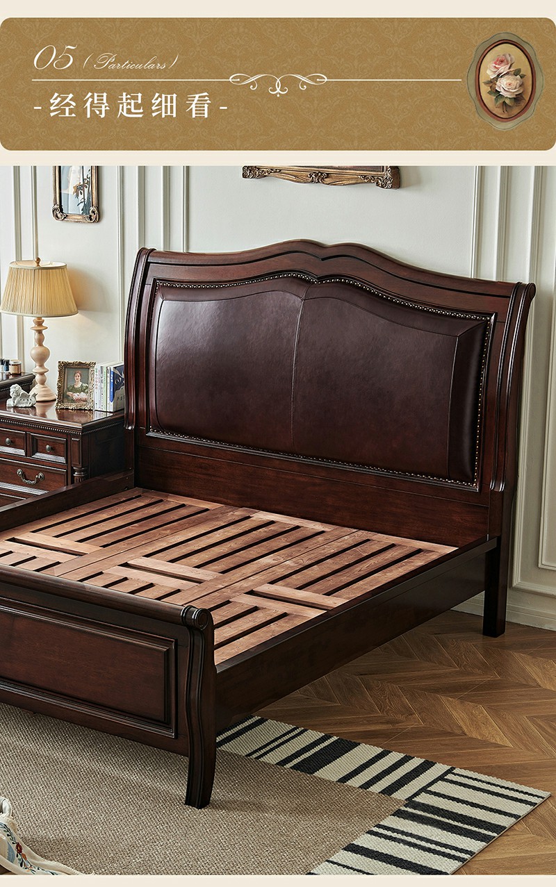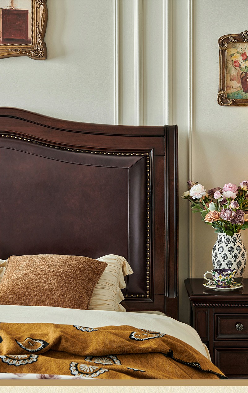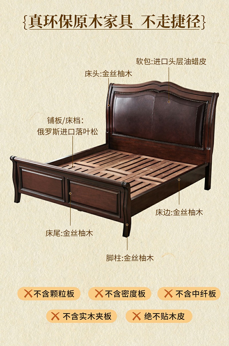 金丝柚木头层油蜡皮床+1个床头柜