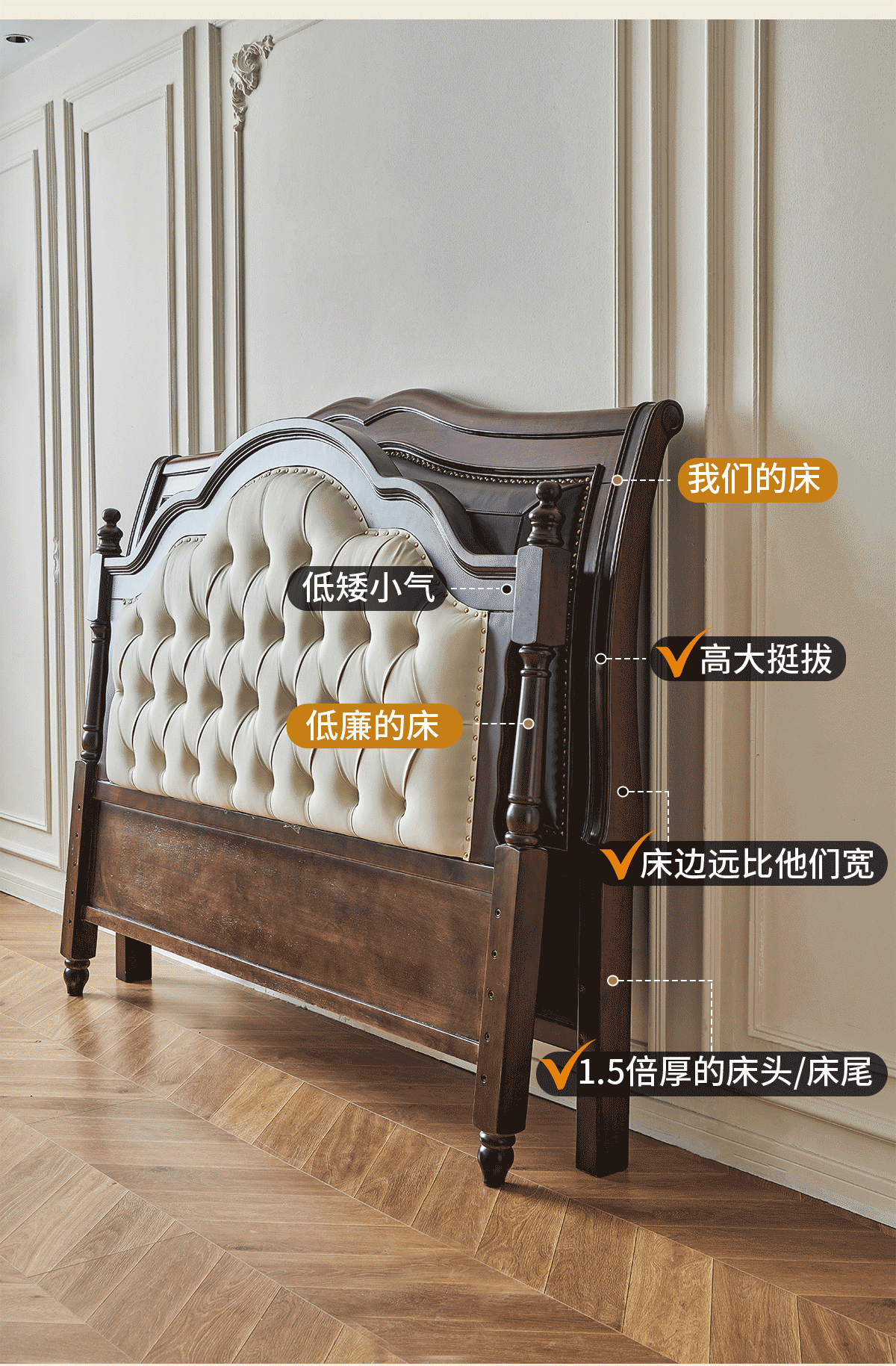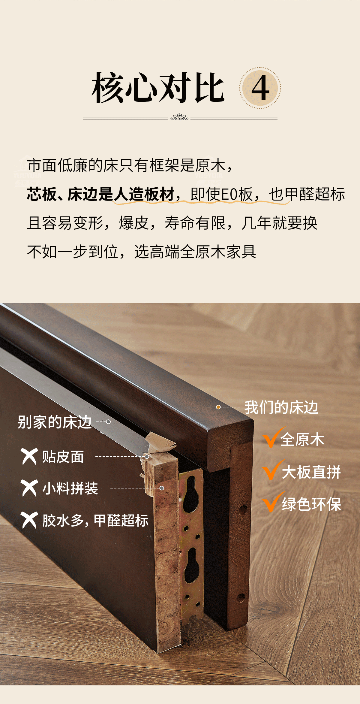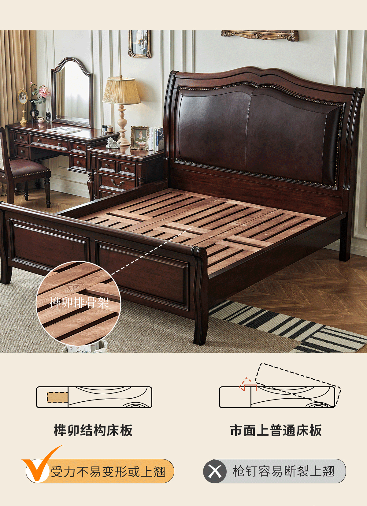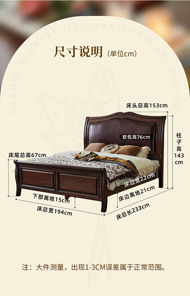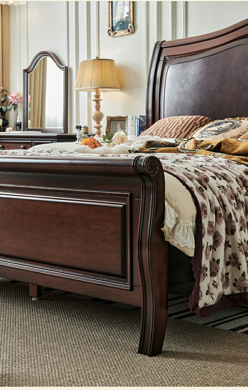金丝柚木头层油蜡皮床+1个床头柜