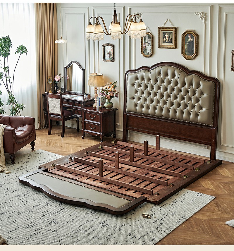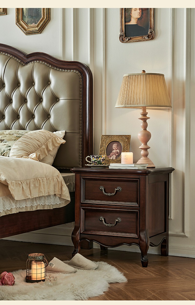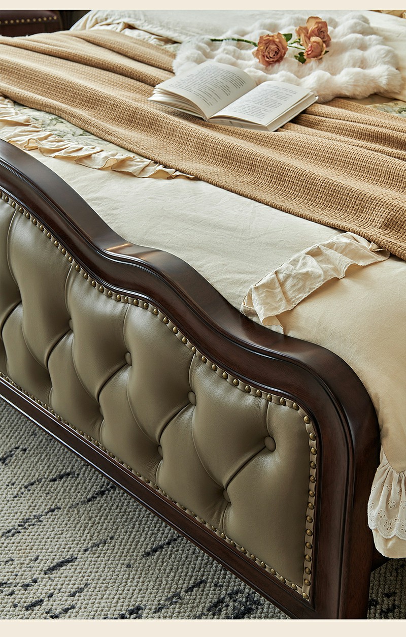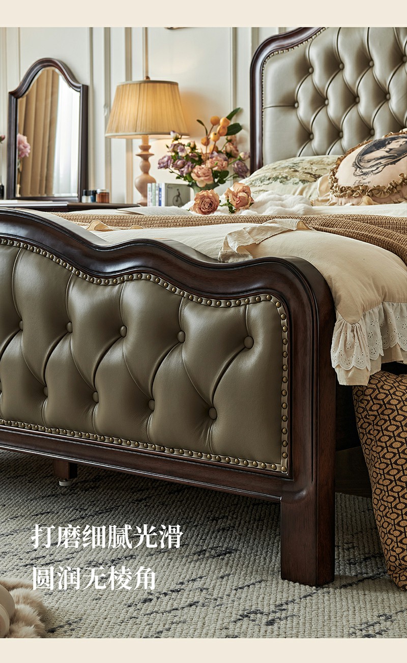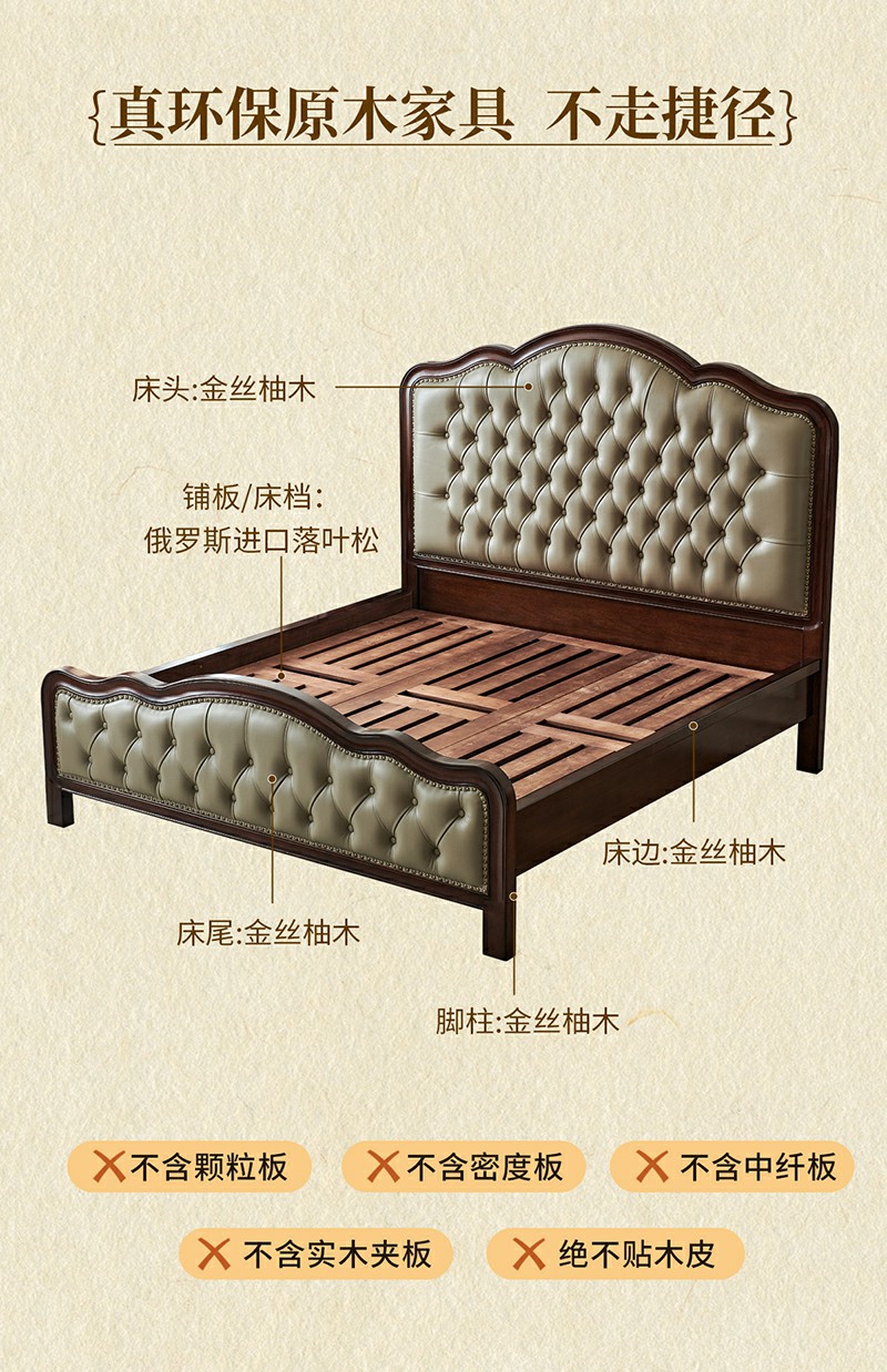 金丝柚木头层油蜡皮床+1个床头柜