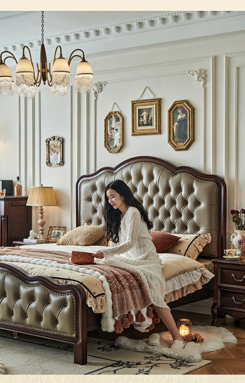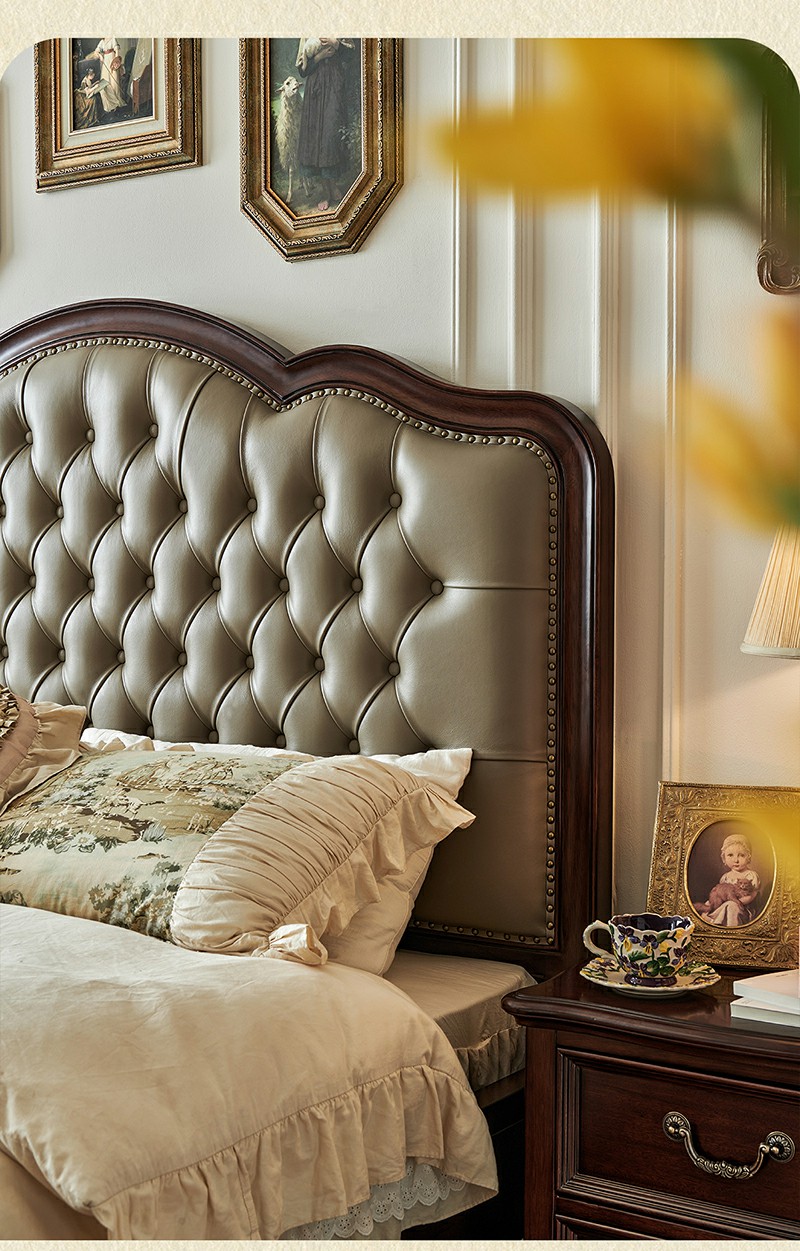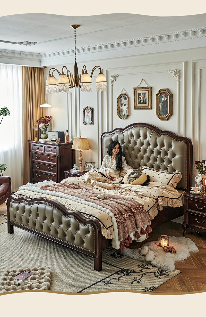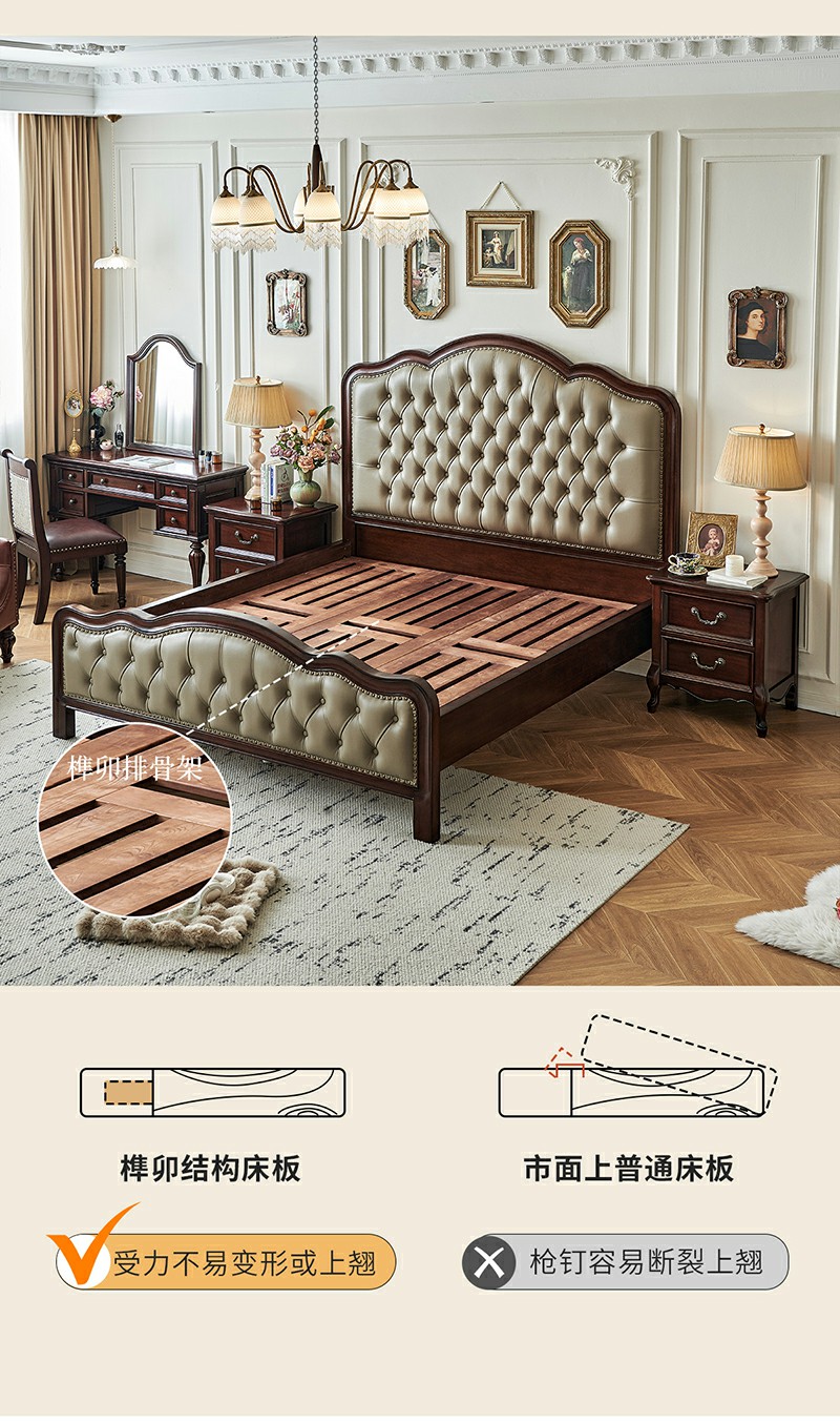 金丝柚木头层油蜡皮床+1个床头柜