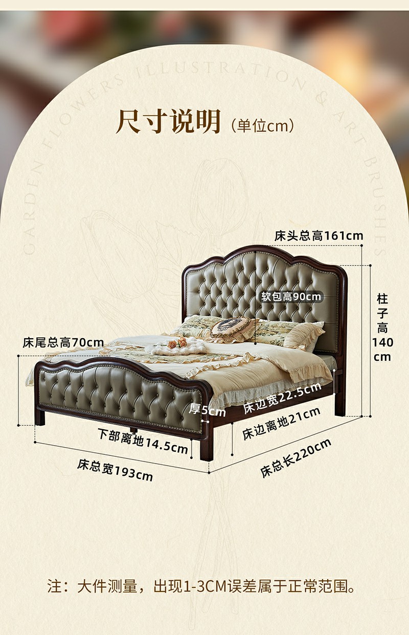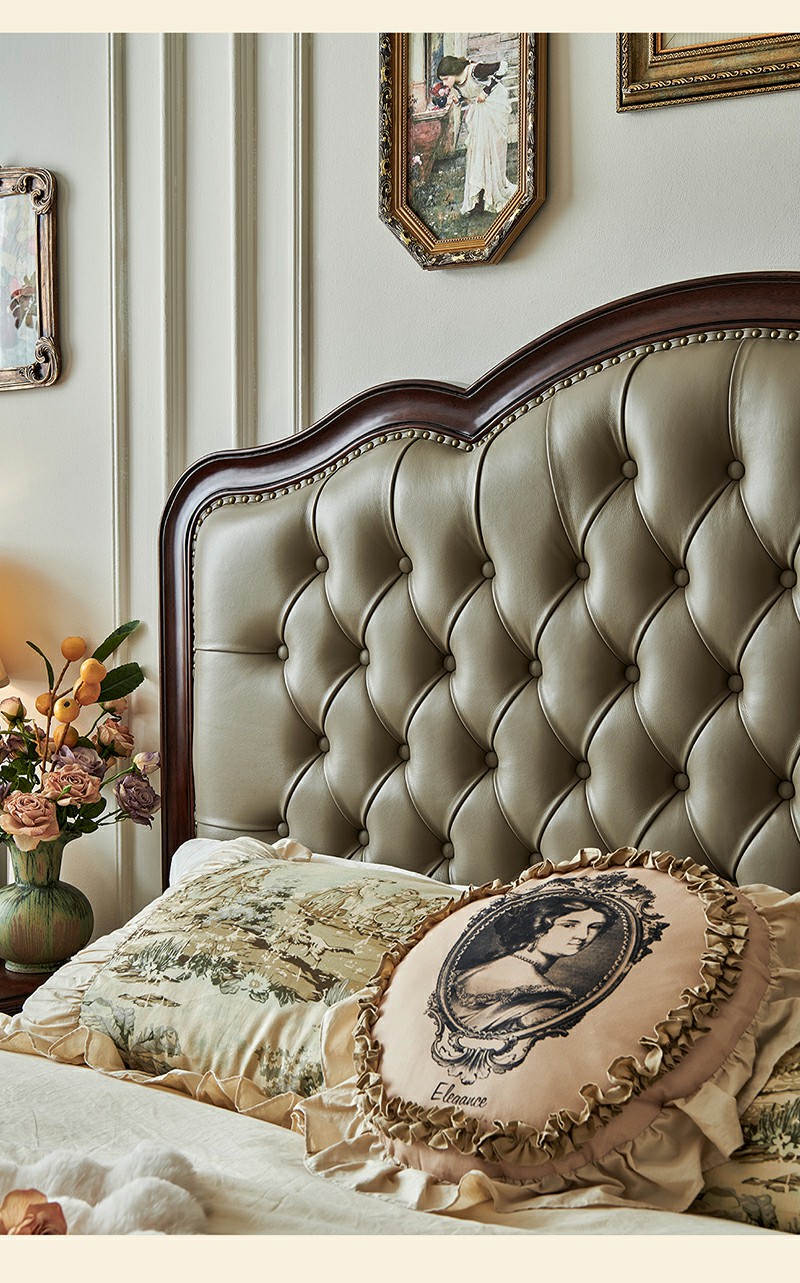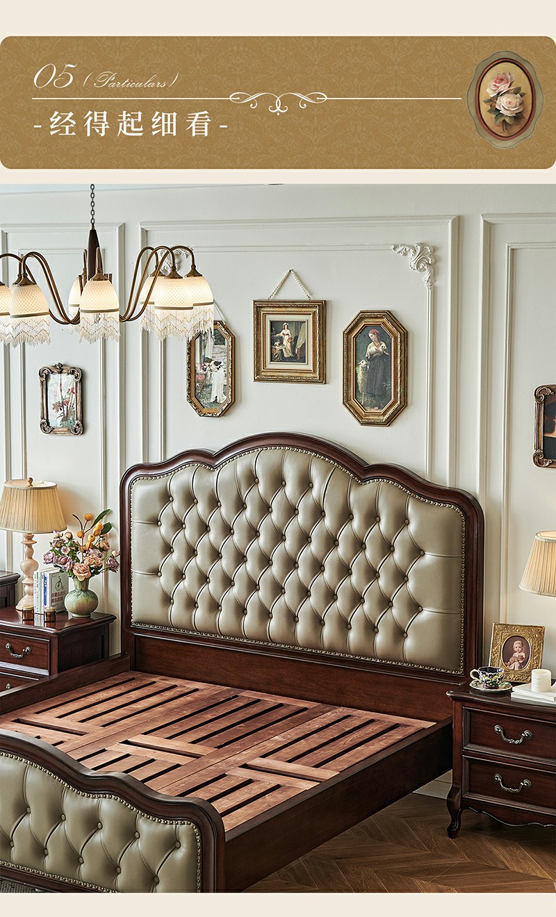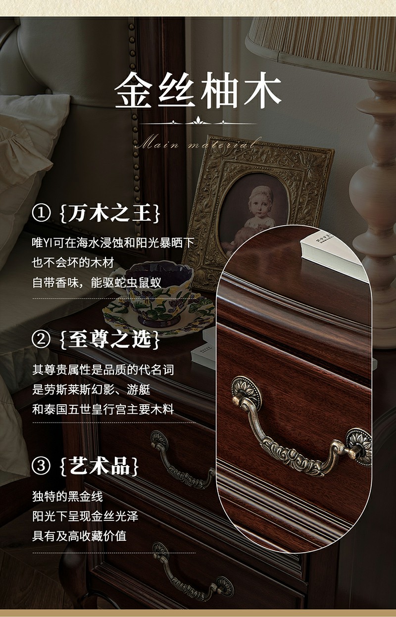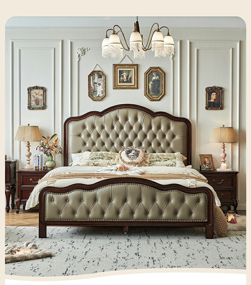 金丝柚木头层油蜡皮床+1个床头柜