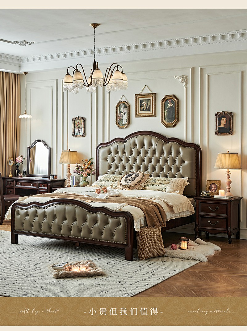 金丝柚木头层油蜡皮床+2个床头柜