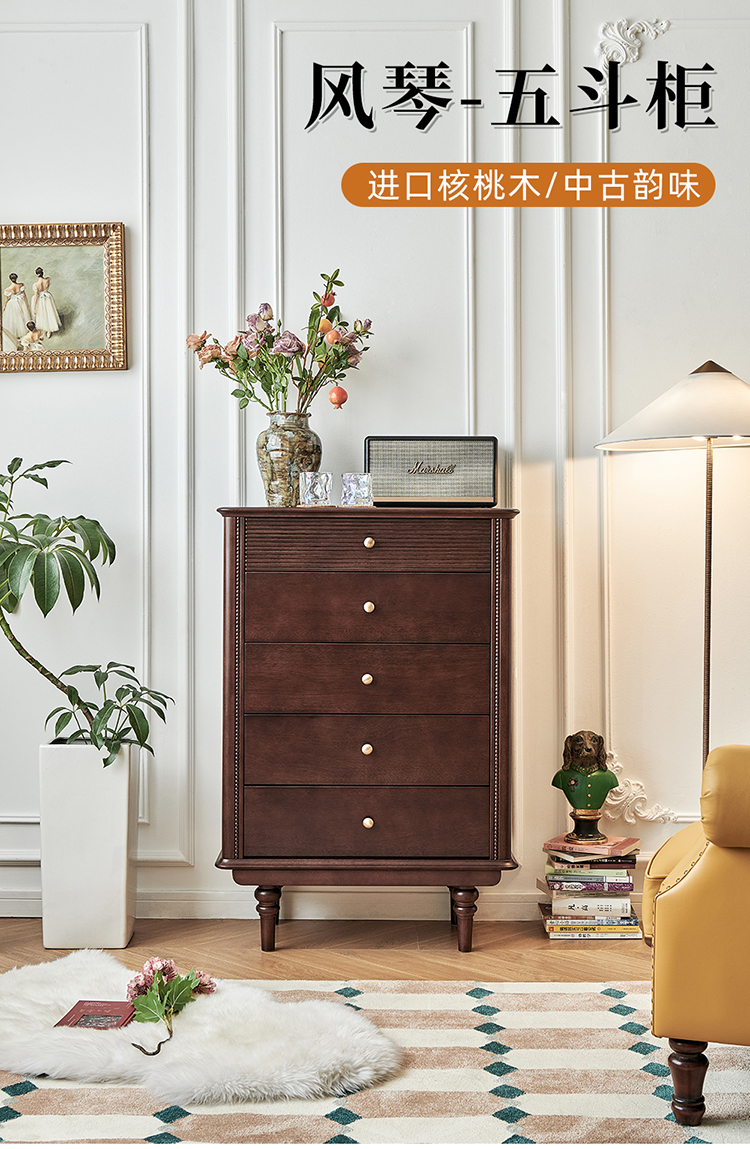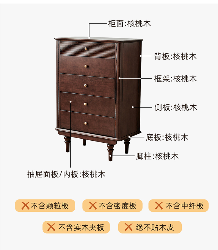 五斗柜胡桃色(全实木无辅材)