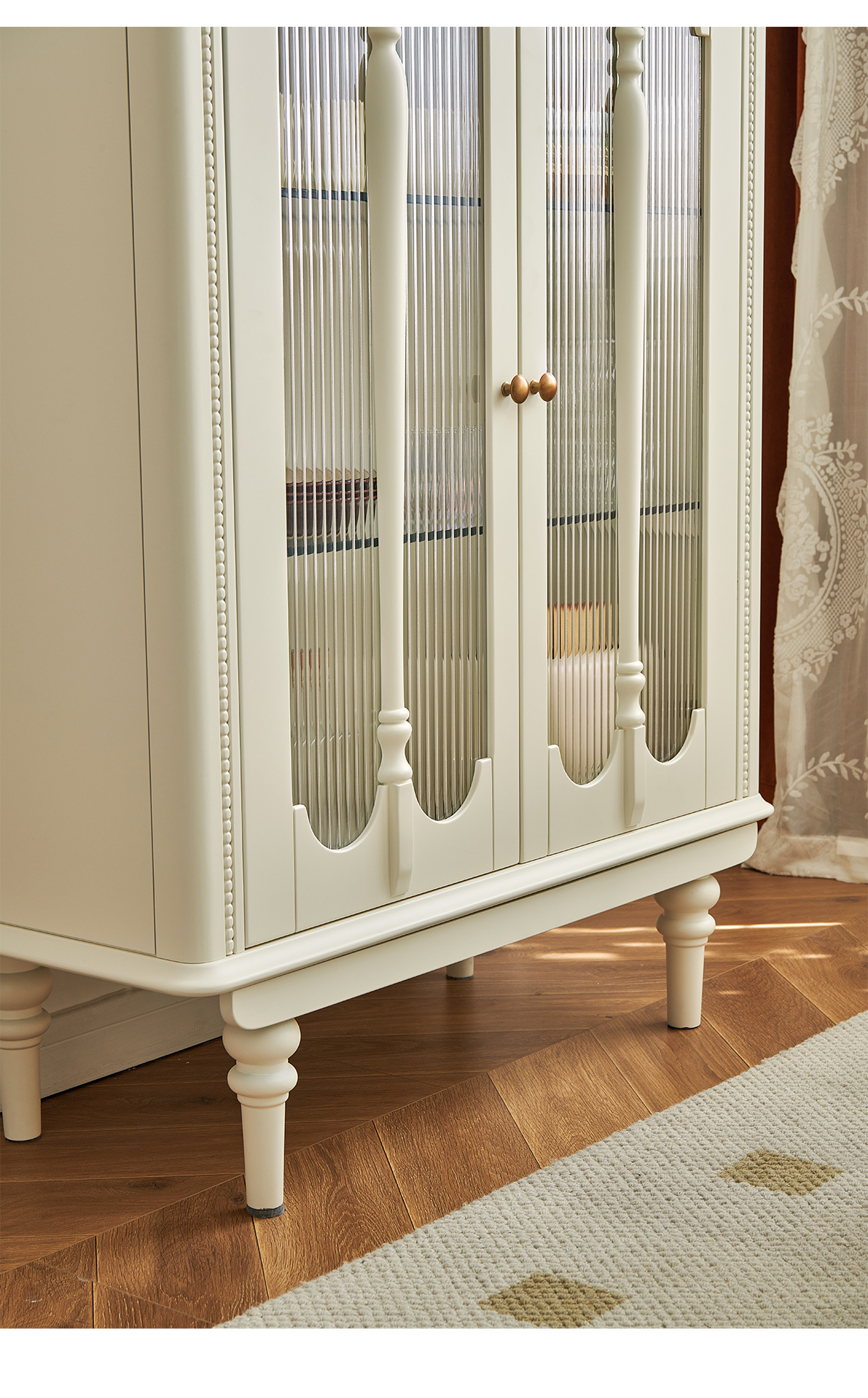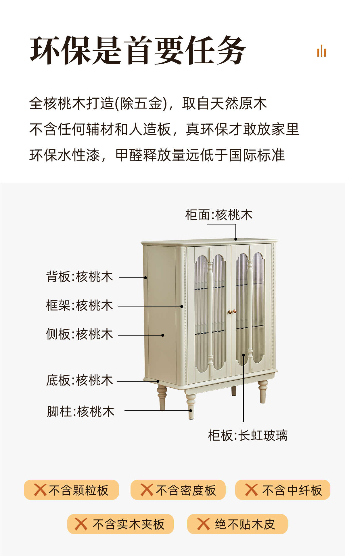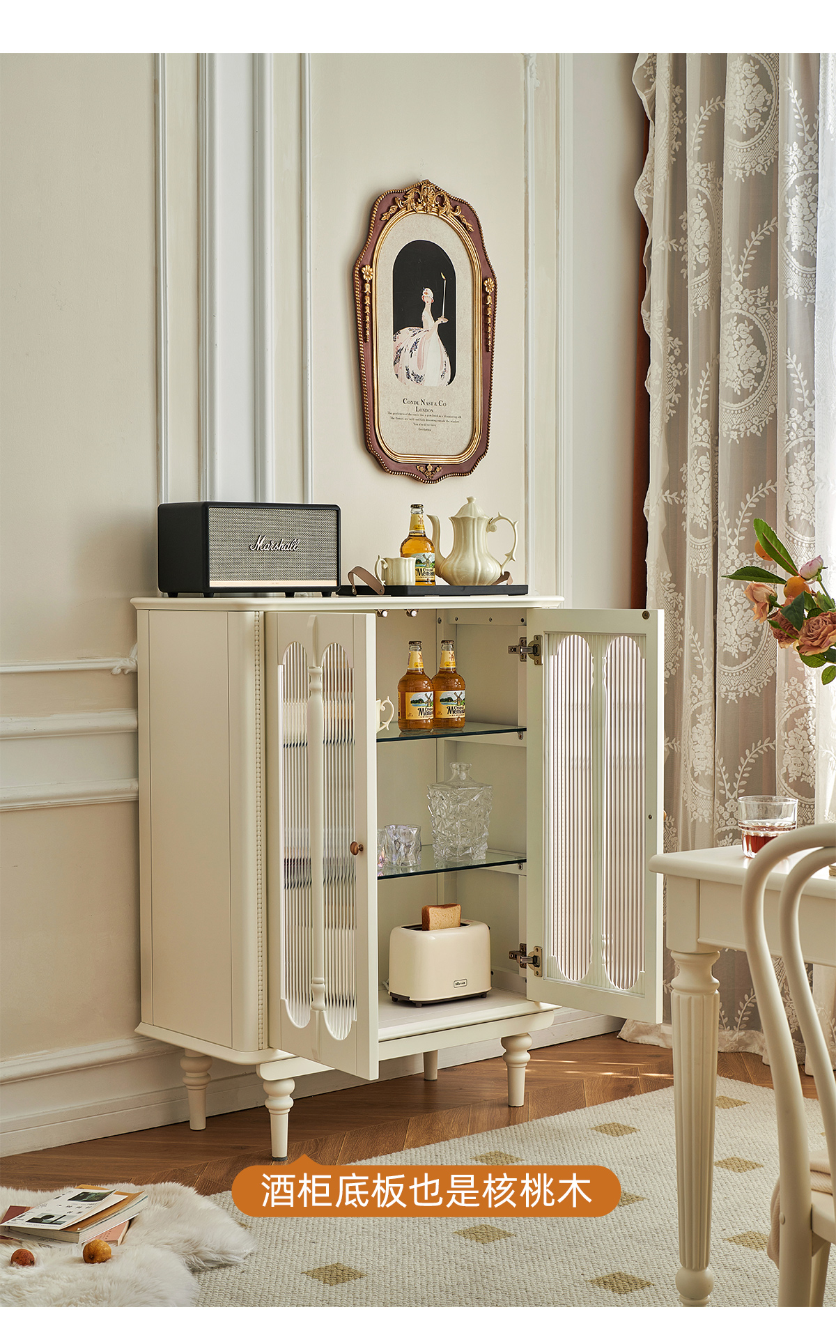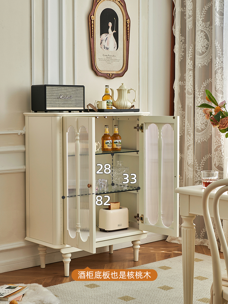 白色酒柜 纯原木无贴皮+钢化长虹玻璃